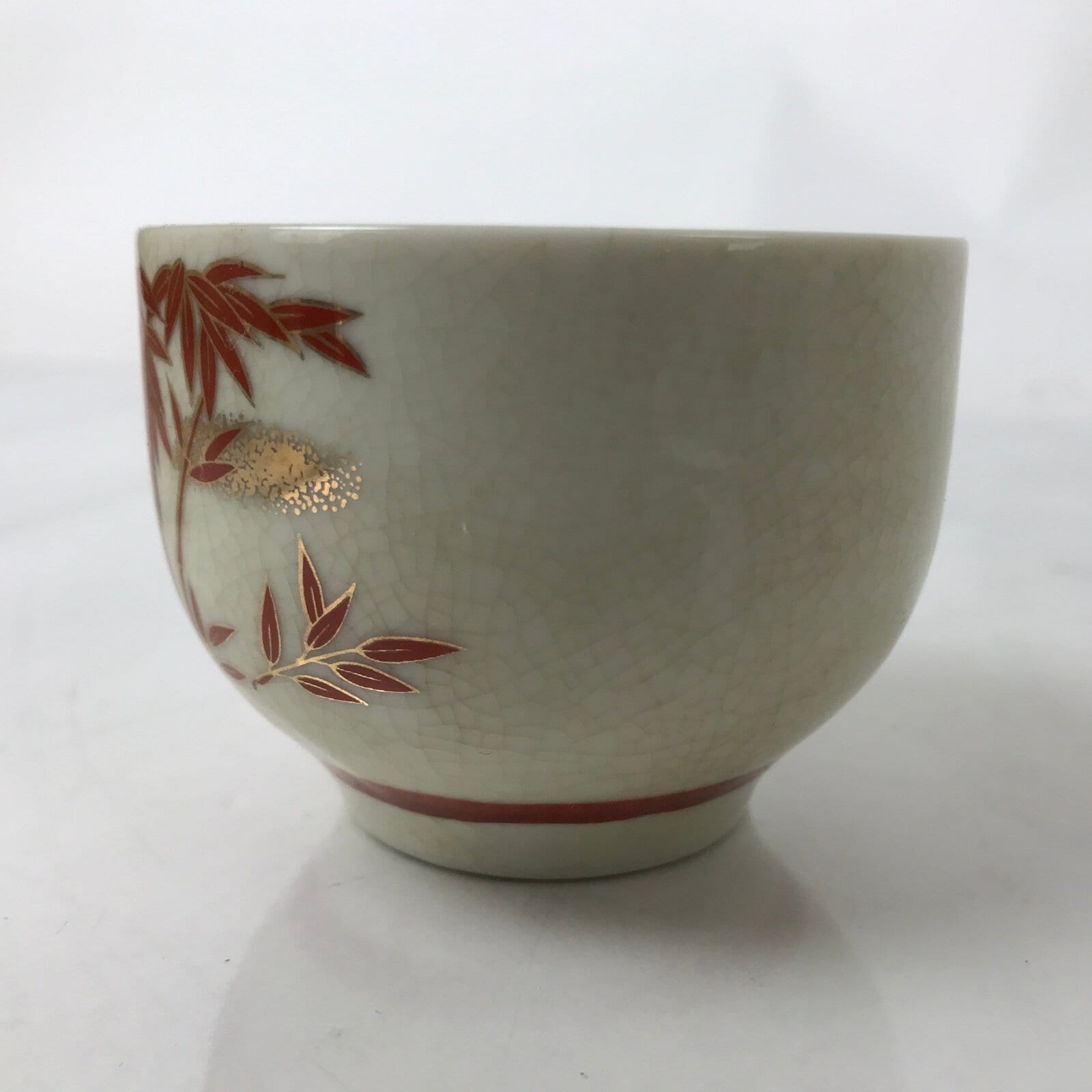 Japanese Ceramic Kutani Ware Teacup Vtg Pottery Yunomi Crackle Bamboo Red TC554