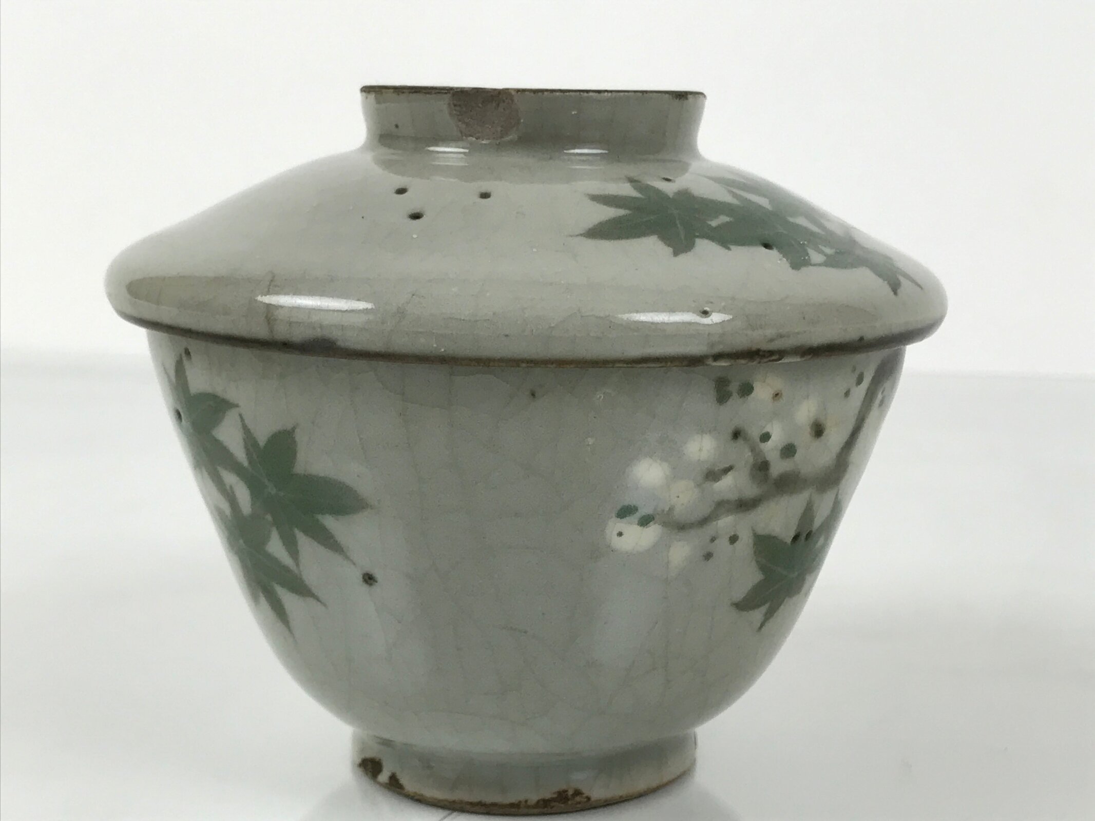 January 25, 2026Japanese Ceramic Lidded Bowl Mushiwan Cup Pottery Gray White Plum Blossoms Y471