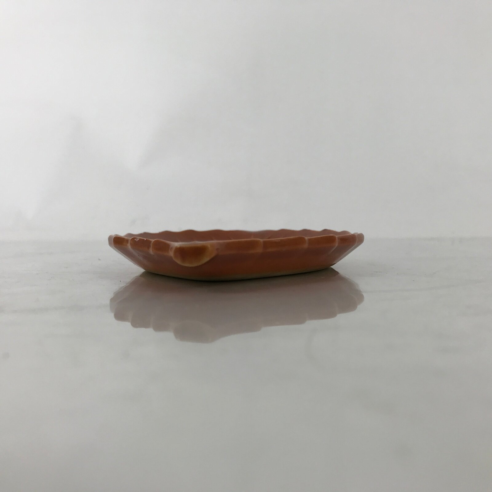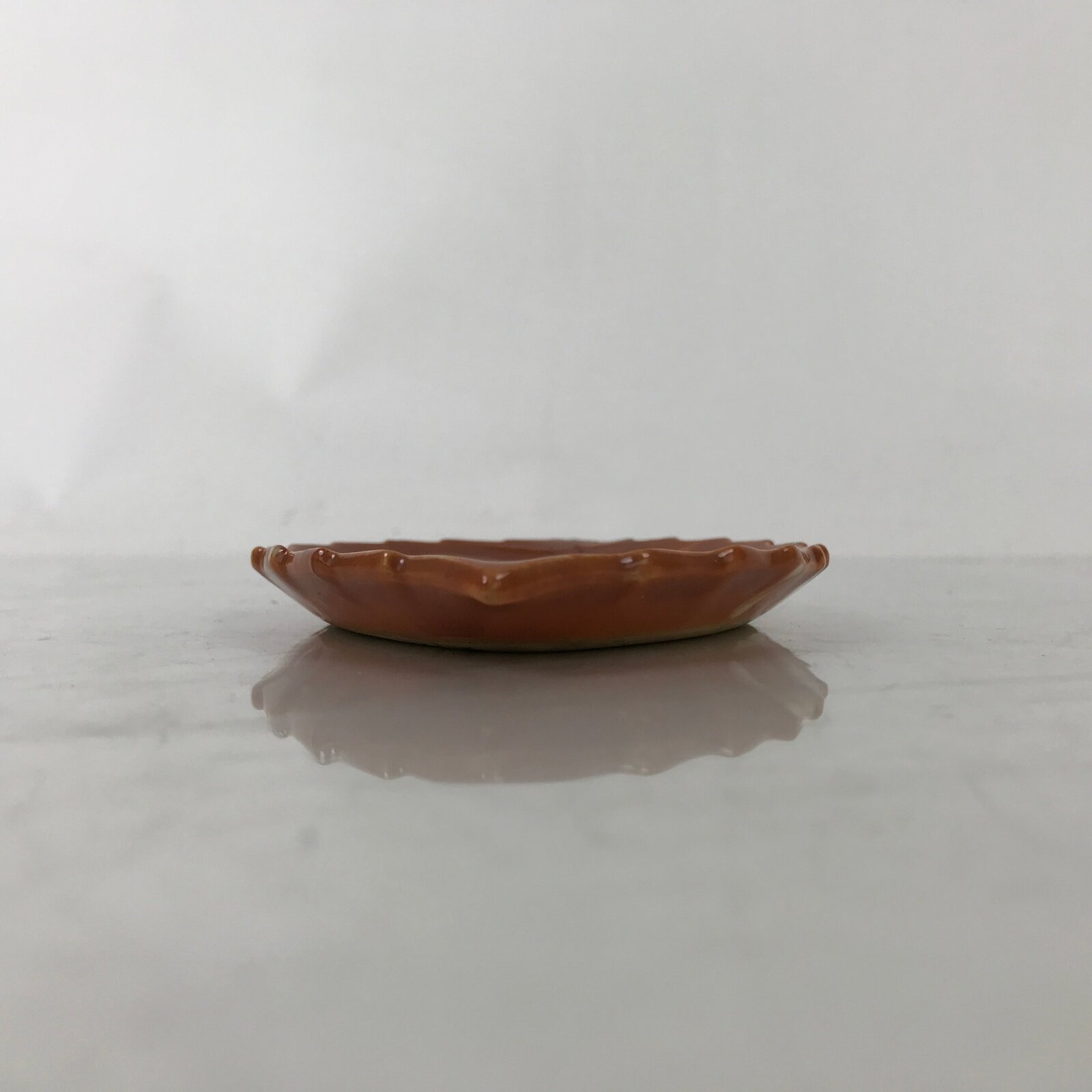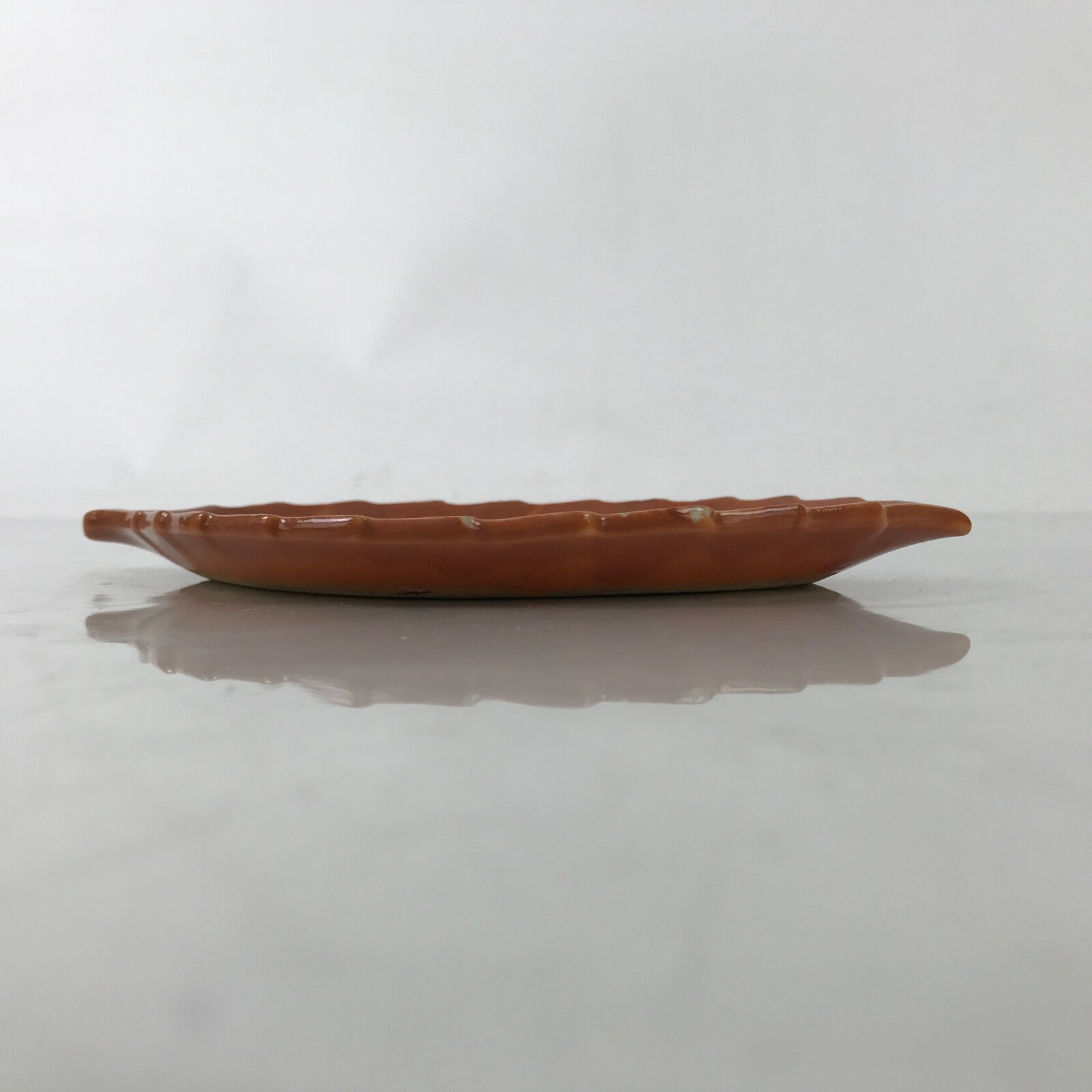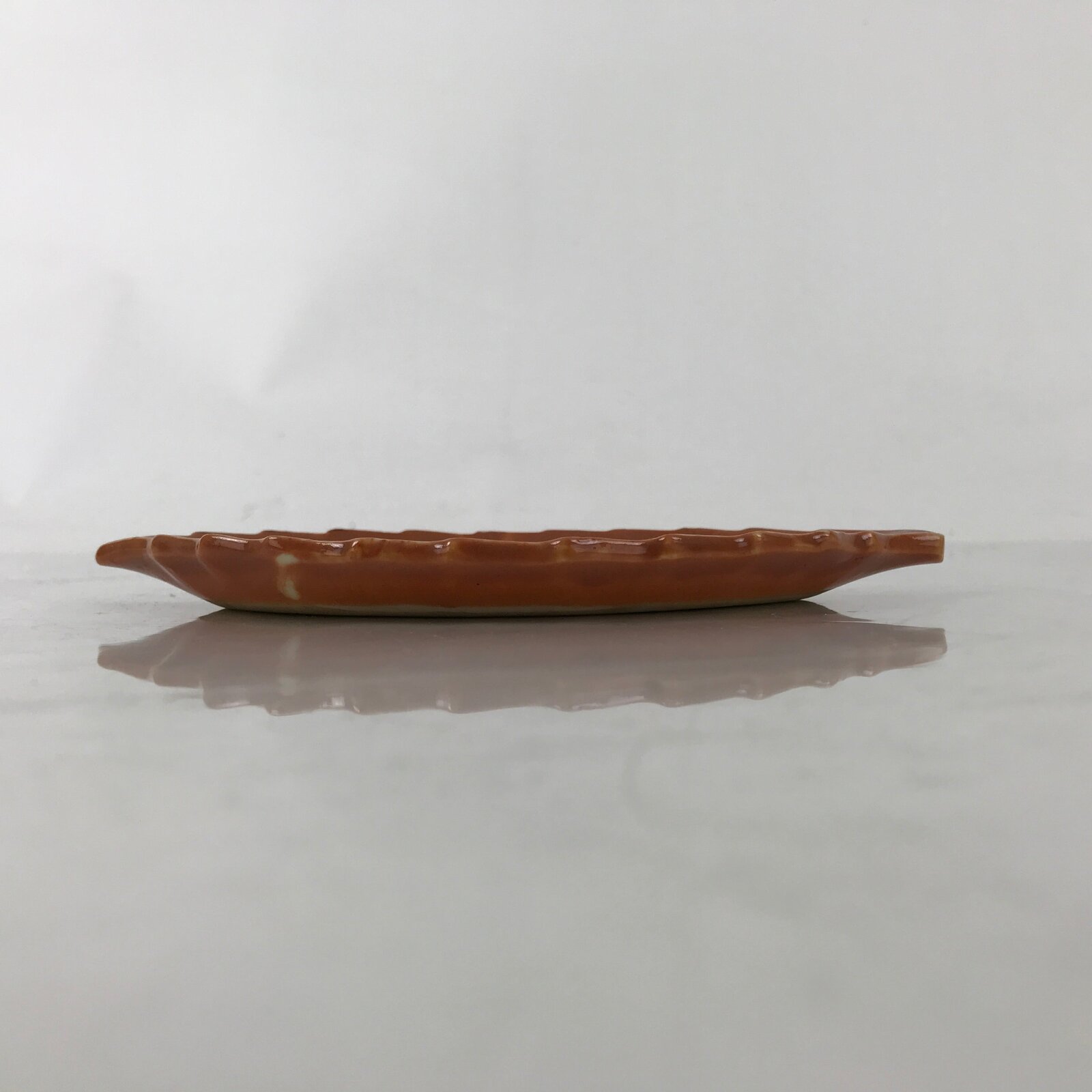 Japanese Ceramic Small Serving Plate Meimeizara Leaf Shape Moon Kanji Brown Y227