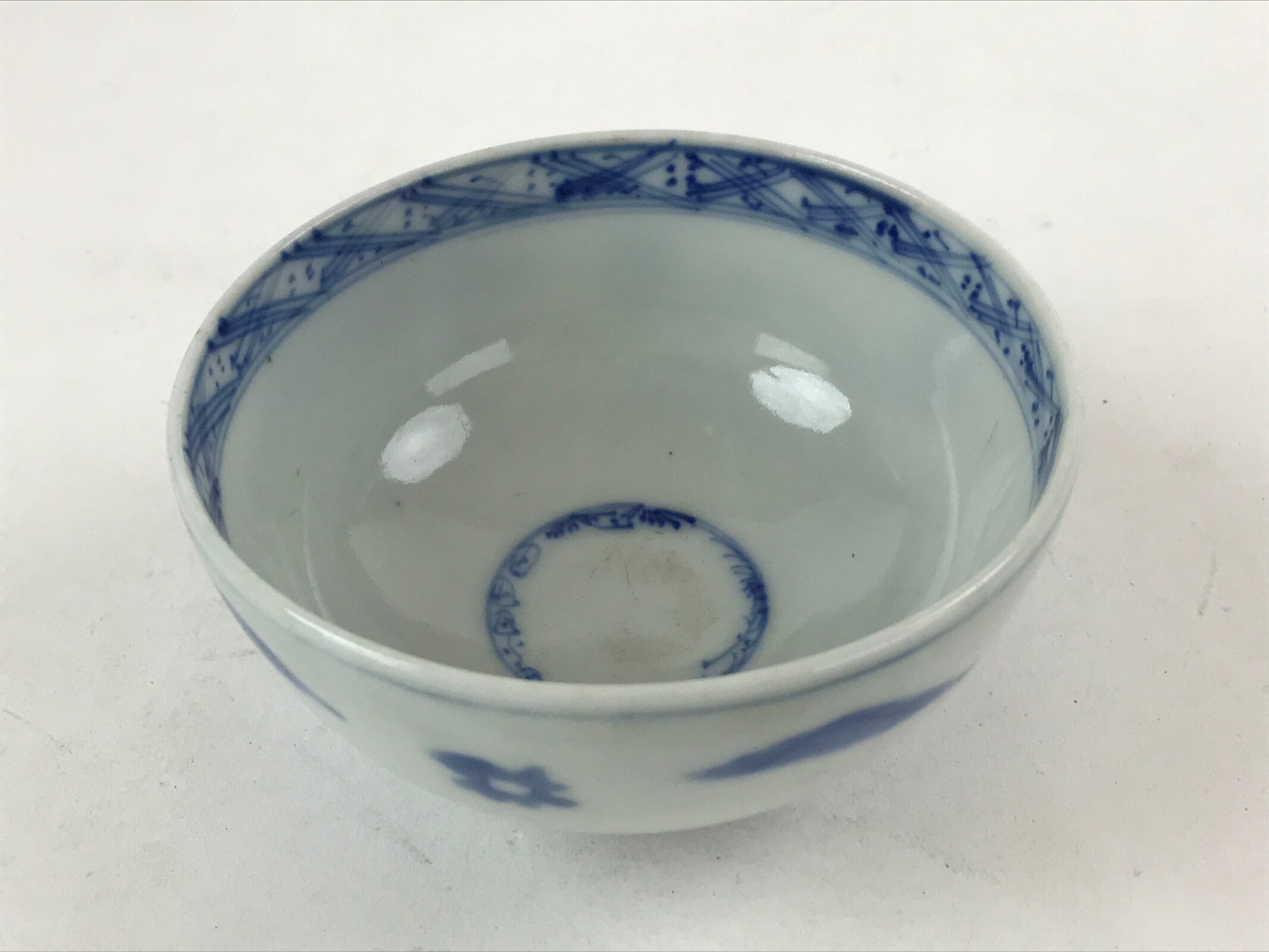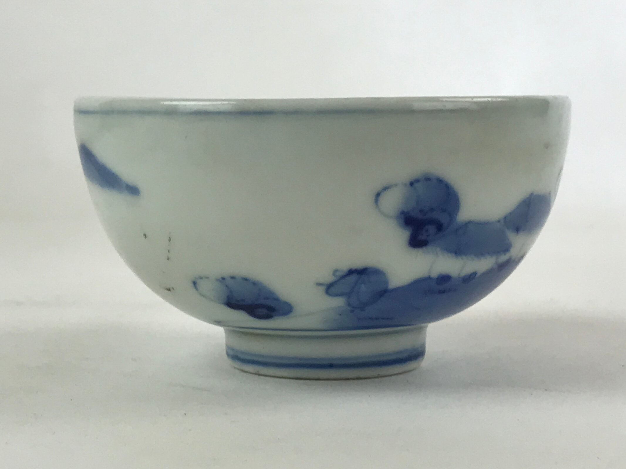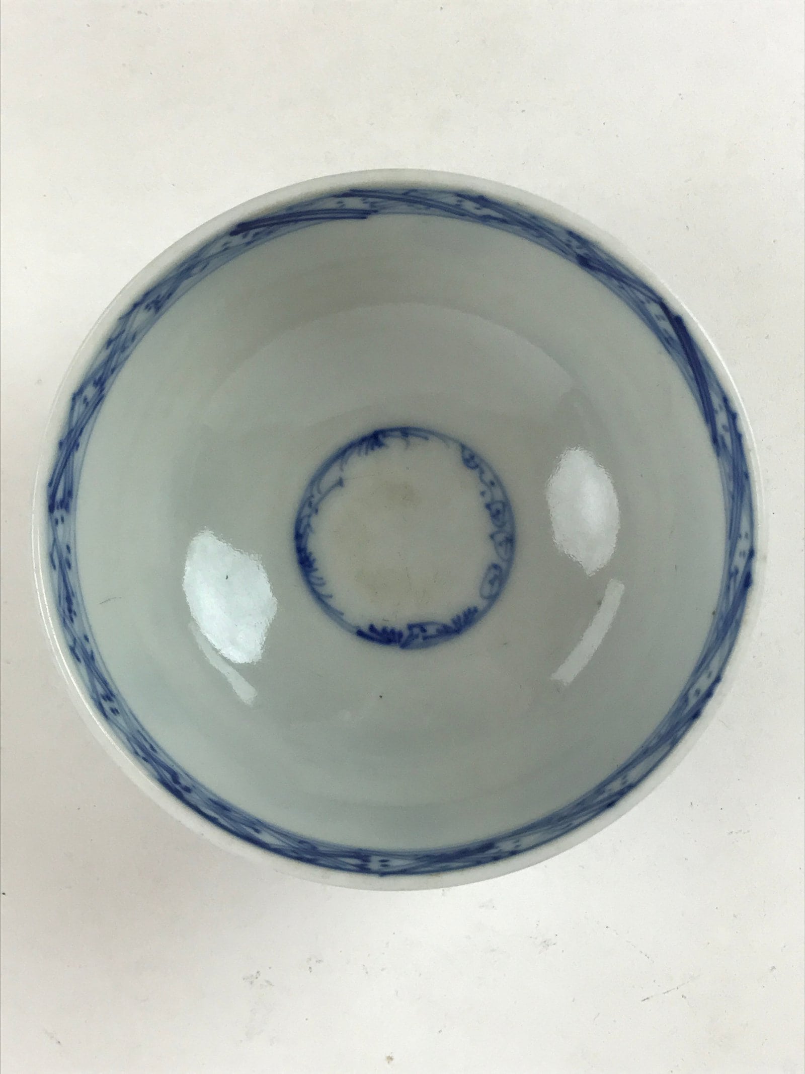 Japanese Ceramic Sometsuke Rice Bowl Vtg White Blue Chawan Pottery PY555