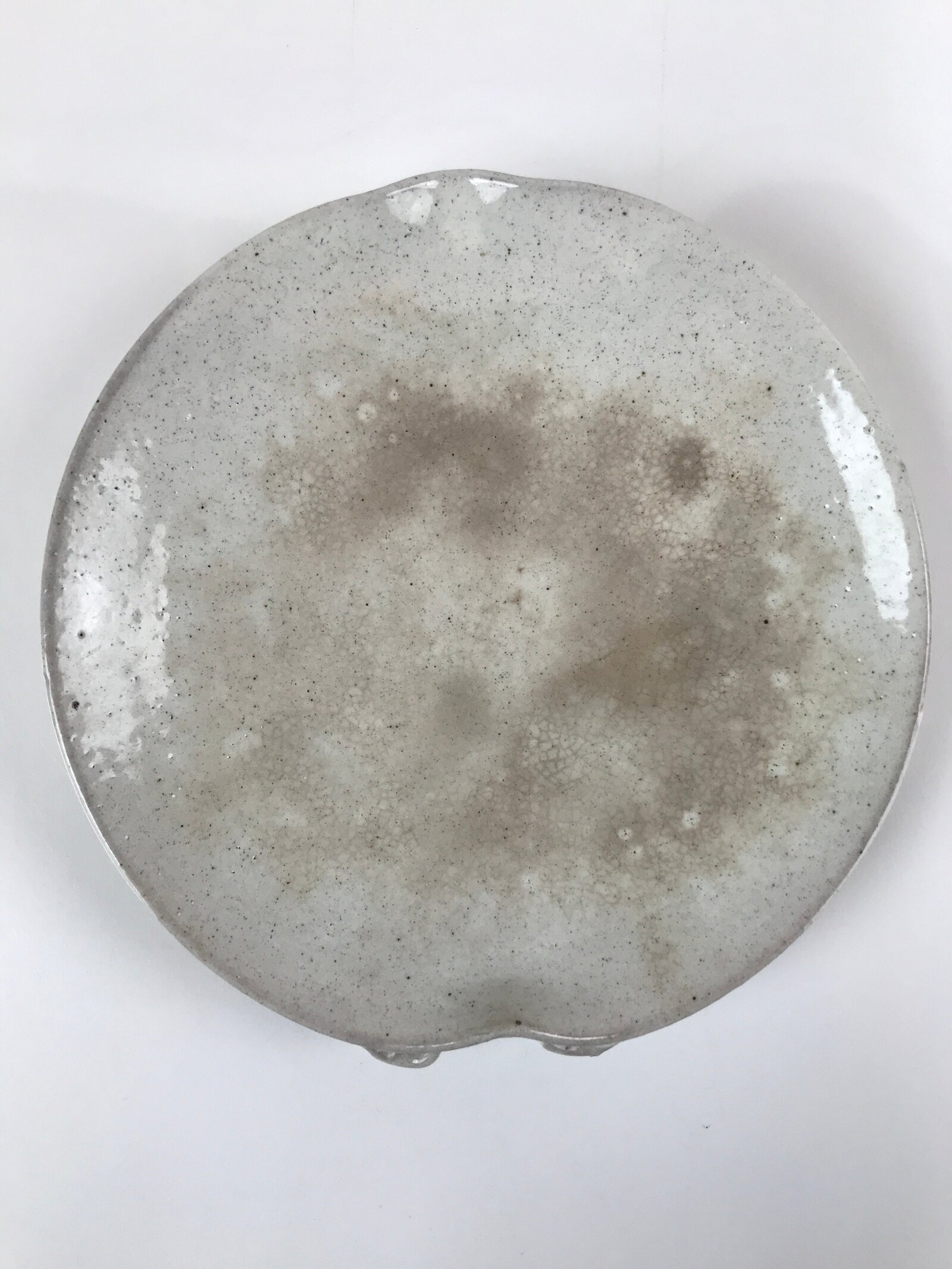 January 22, 2026Japanese Ceramic Round Plate Vtg Small Ikebana Suiban Gray Glaze Spout PY739