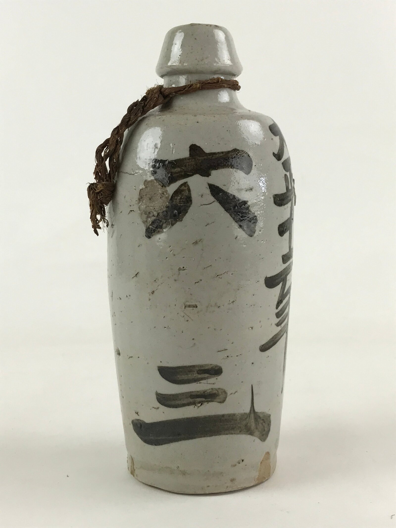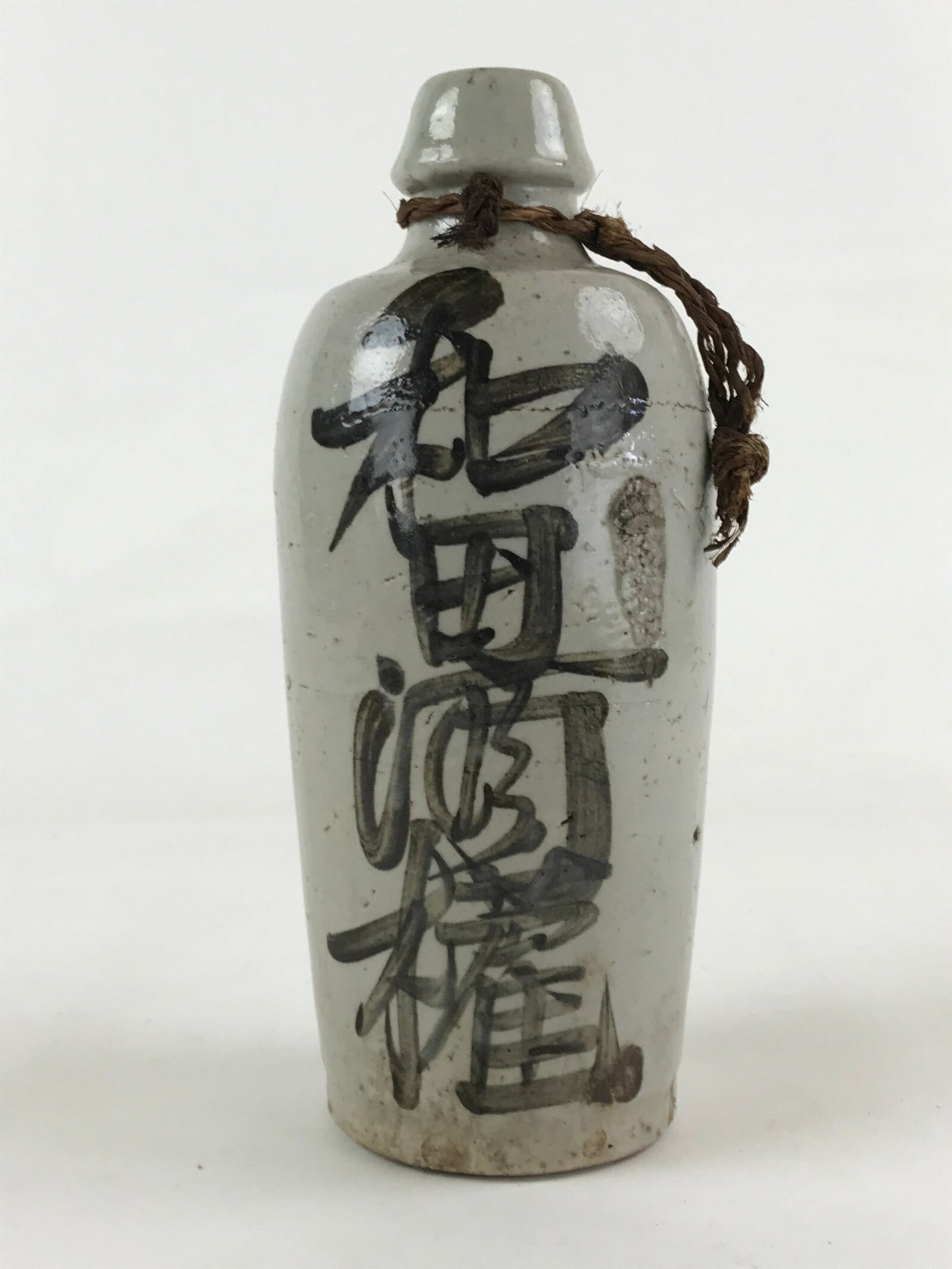 January 21, 2026Japanese Ceramic Sake Bottle Kayoi-Tokkuri Vtg Gray Hand-Written Kanji TS556