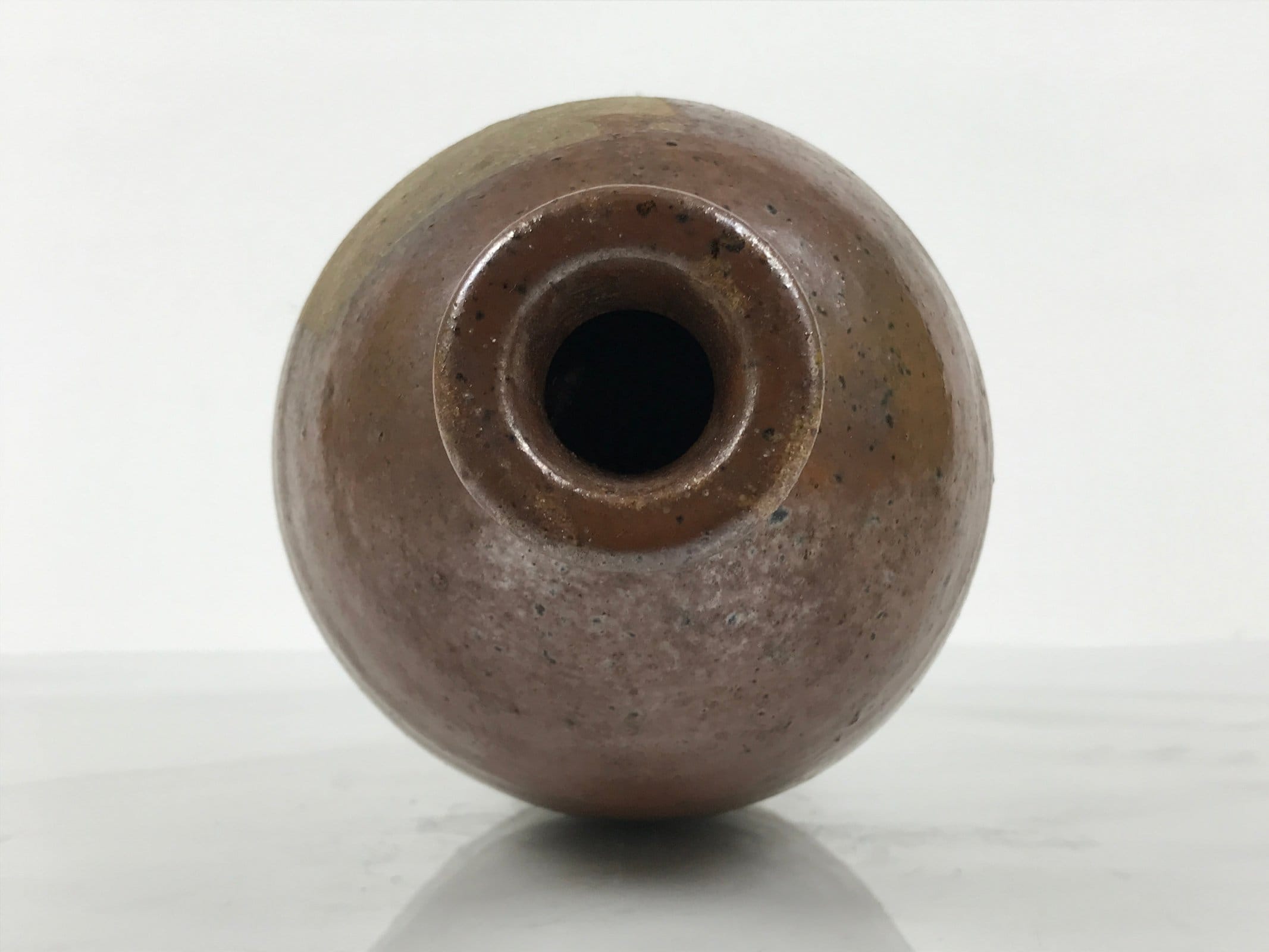 January 24, 2026Japanese Ceramic Sake Bottle Kayoi-Tokkuri Vtg Brown Round Wax Resist TS871