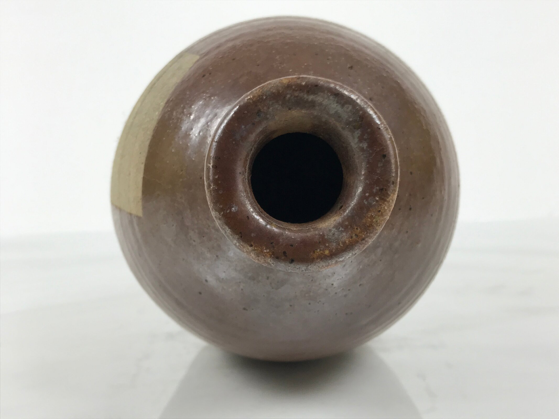 January 24, 2026Japanese Ceramic Sake Bottle Kayoi-Tokkuri Vtg Brown Round Wax Resist TS874