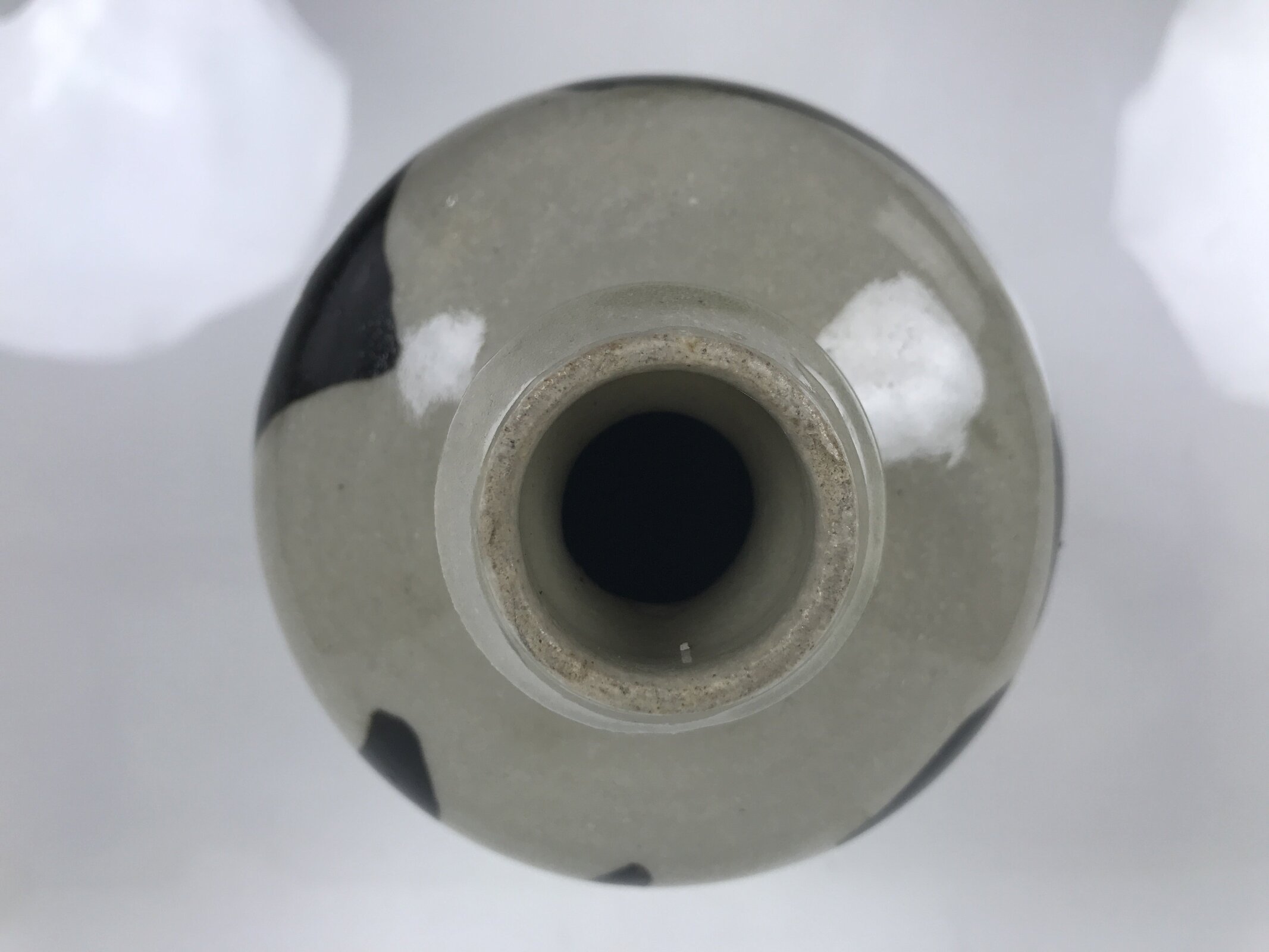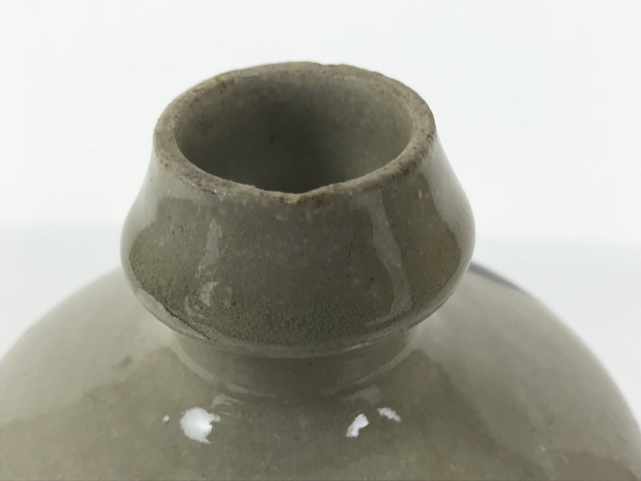 Antique Japanese Ceramic Sake Bottle Kayoi-Tokkuri Gray Brown Kanji TS914