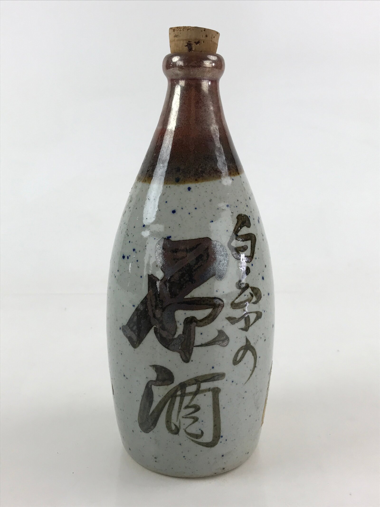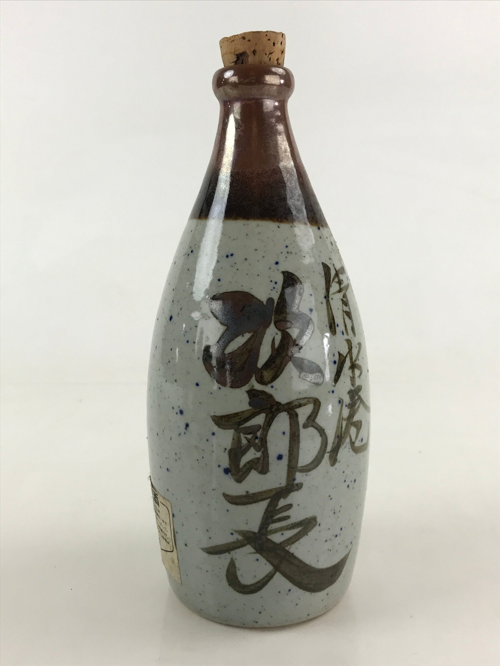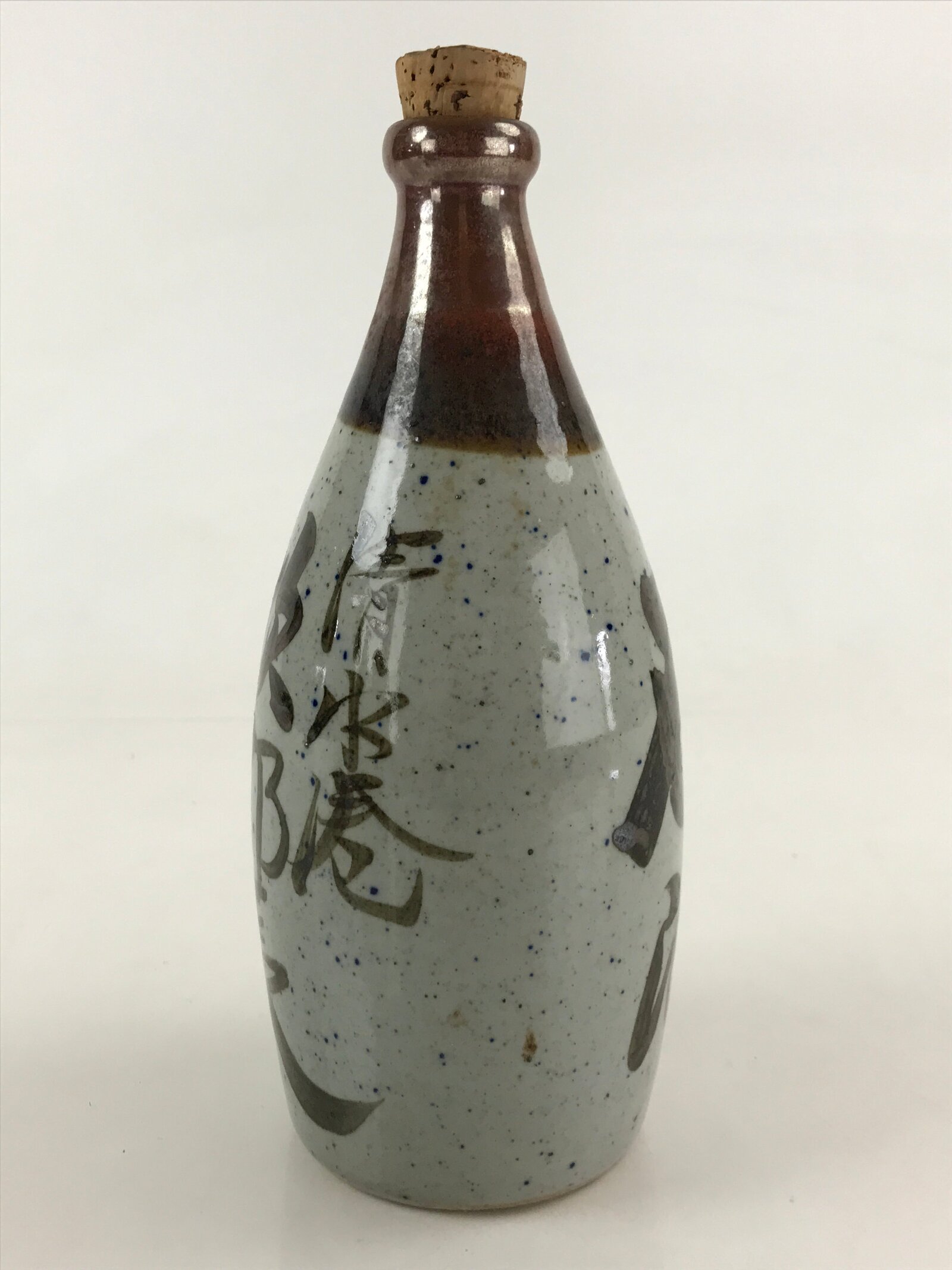 Japanese Ceramic Sake Bottle Aomori Tokkuri Hand-Written Kanji Vtg Brown TS508