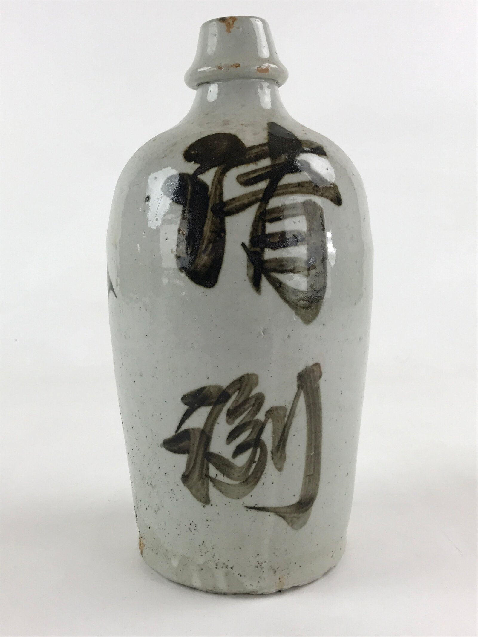 Japanese Ceramic Sake Bottle Kayoi-Tokkuri Vtg Gray Hand-Written Kanji TS550