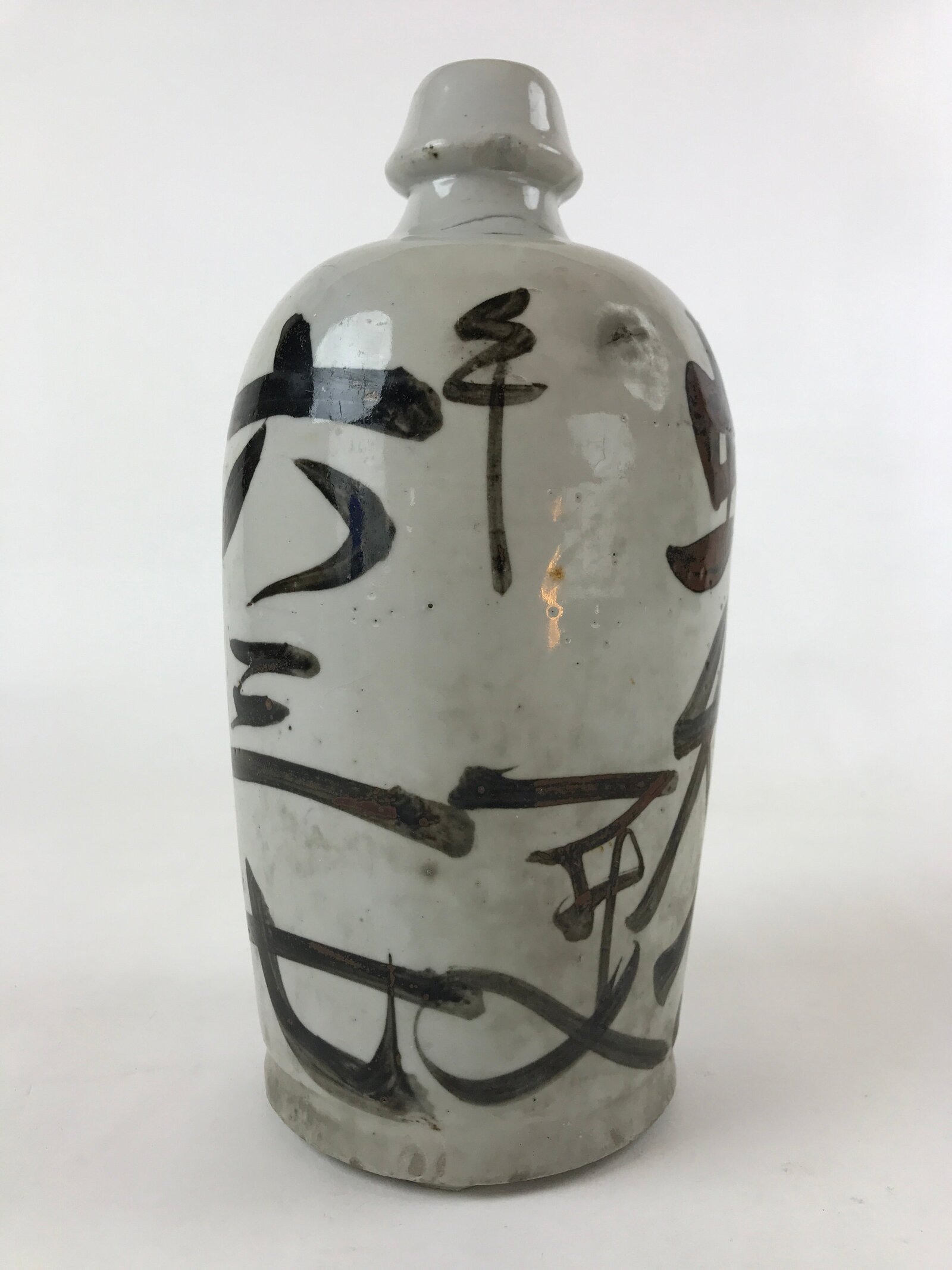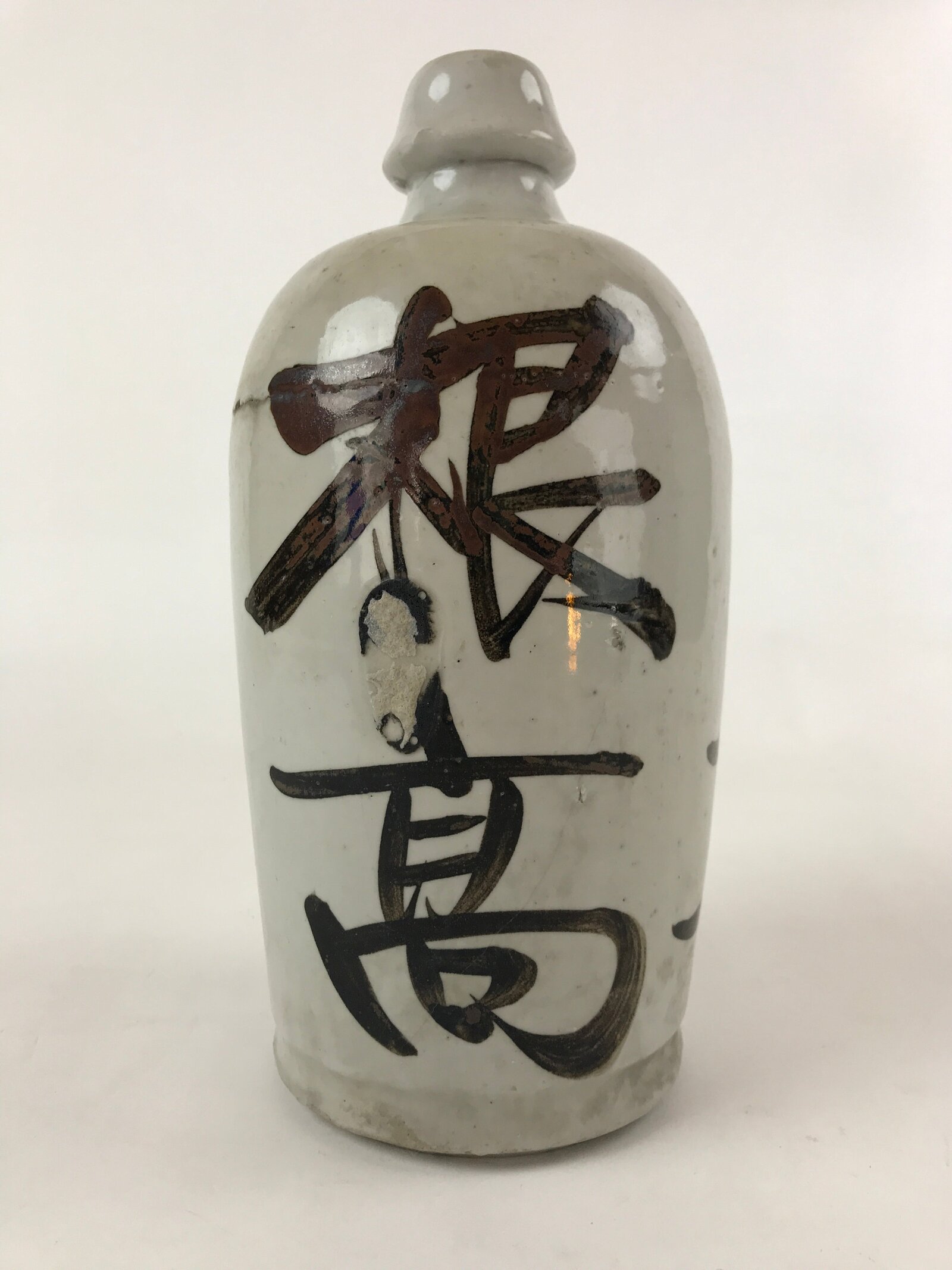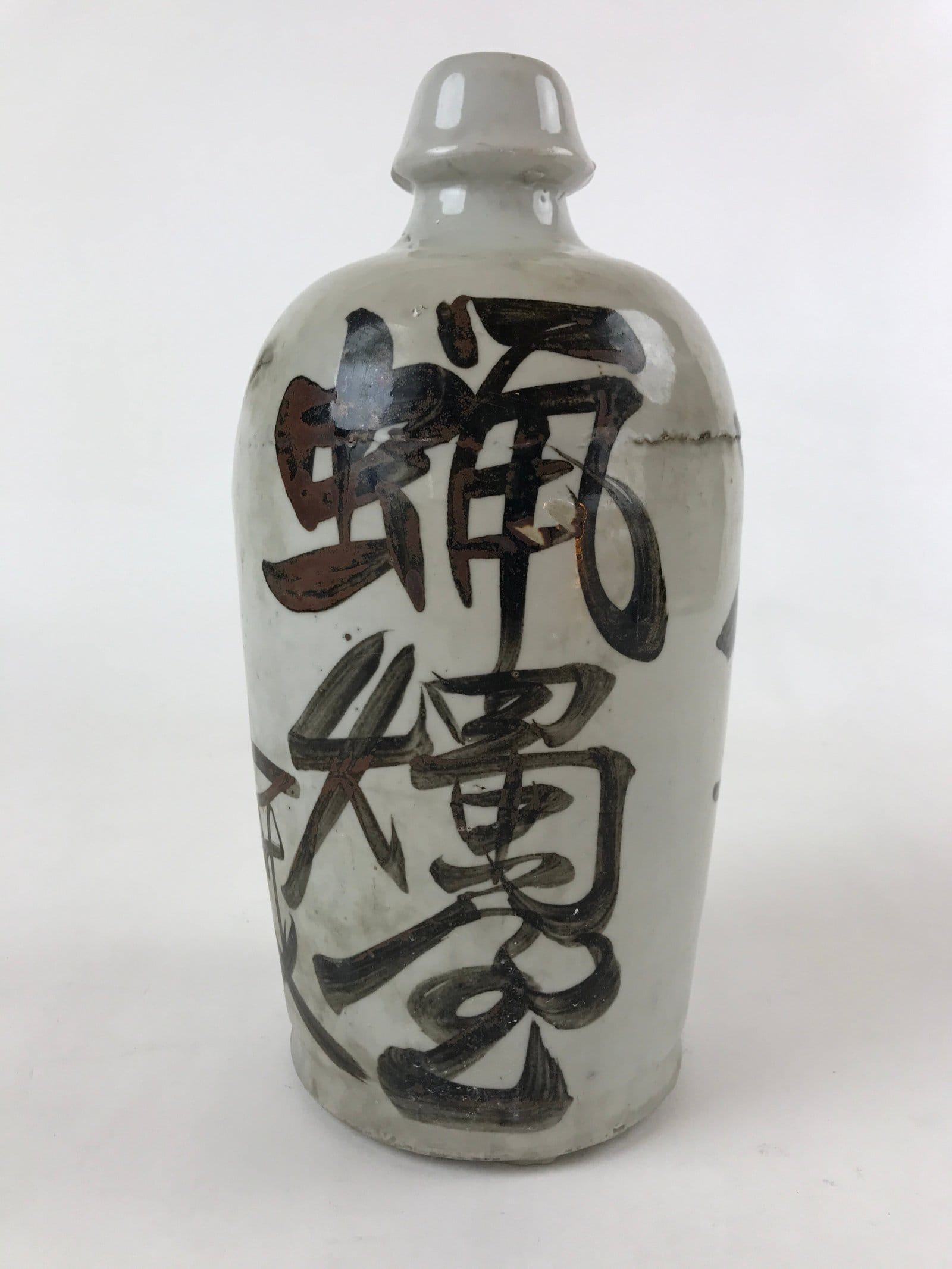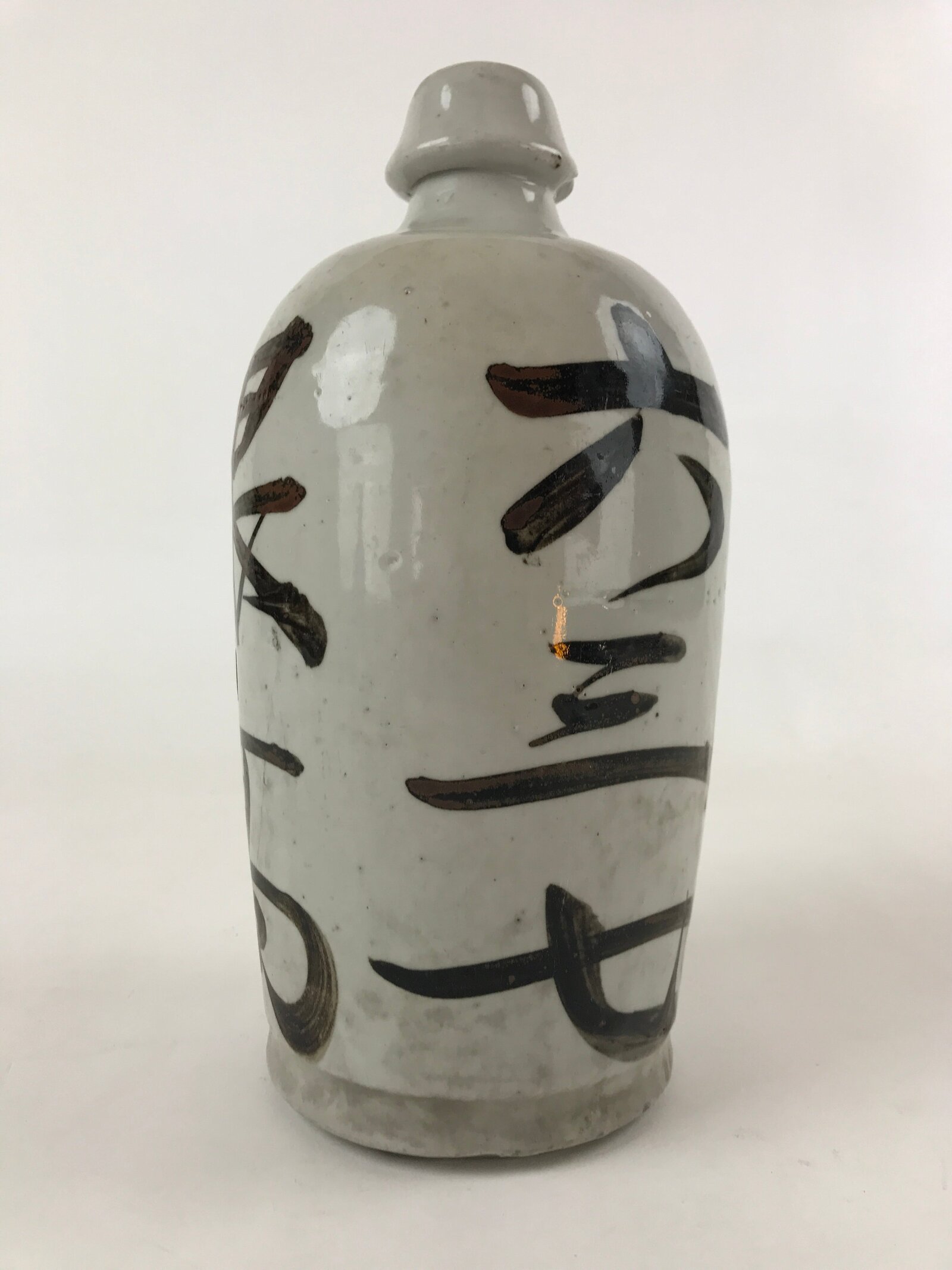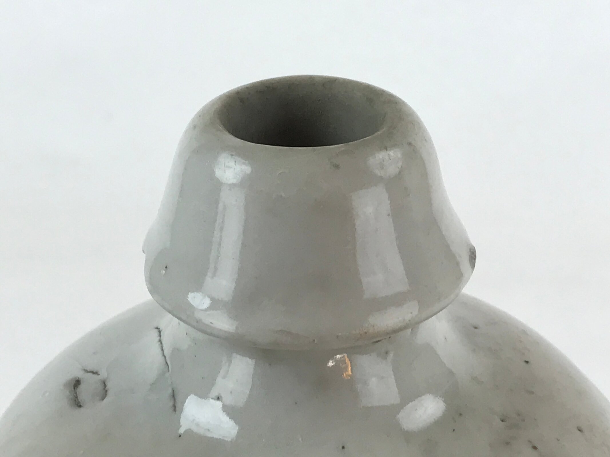 Antique Japanese Ceramic Sake Bottle Kayoi-Tokkuri Gray Hand-Written Kanji TS578