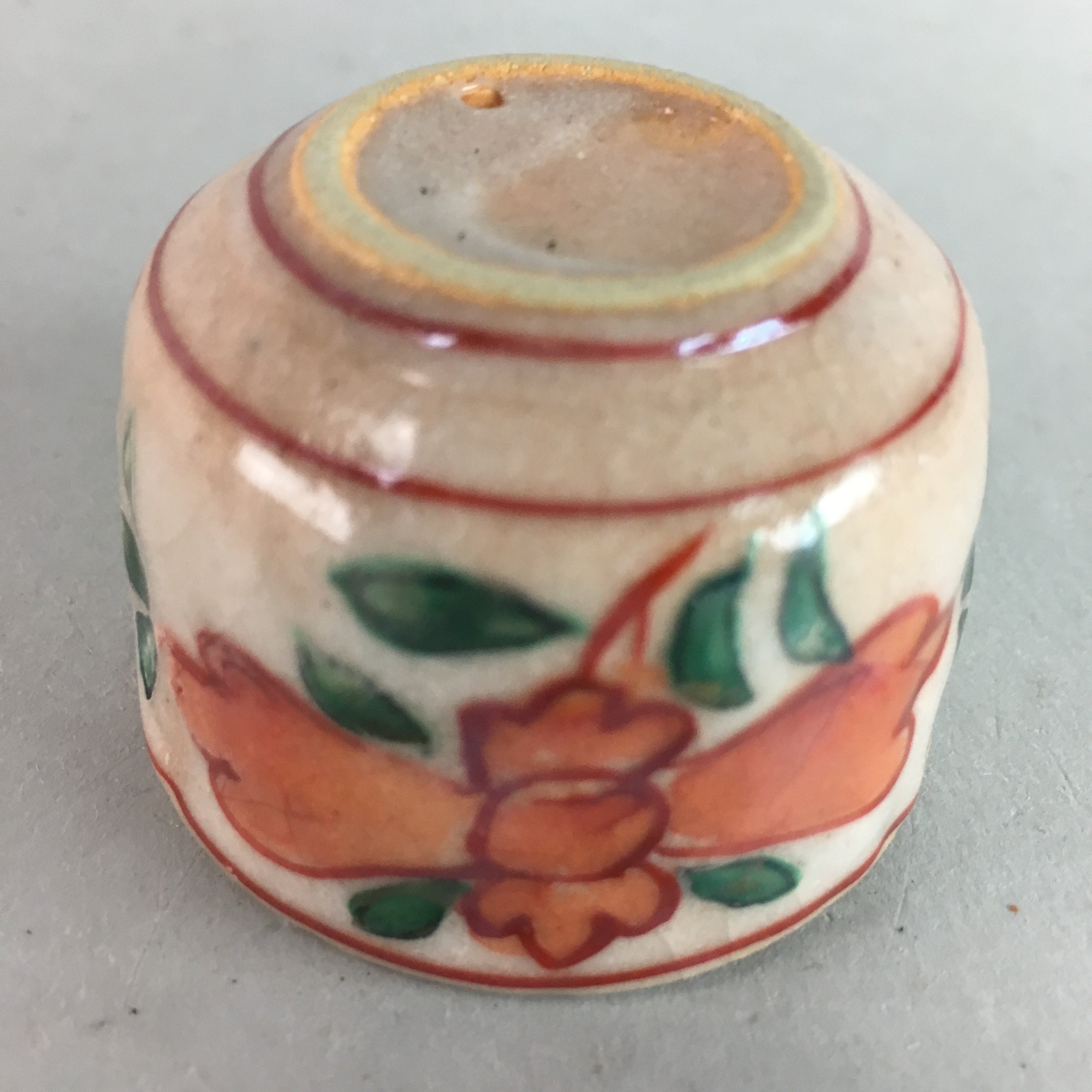 Japanese Ceramic Sake Cup Guinomi Sakazuki Vtg Floral Pottery Crackle GU558