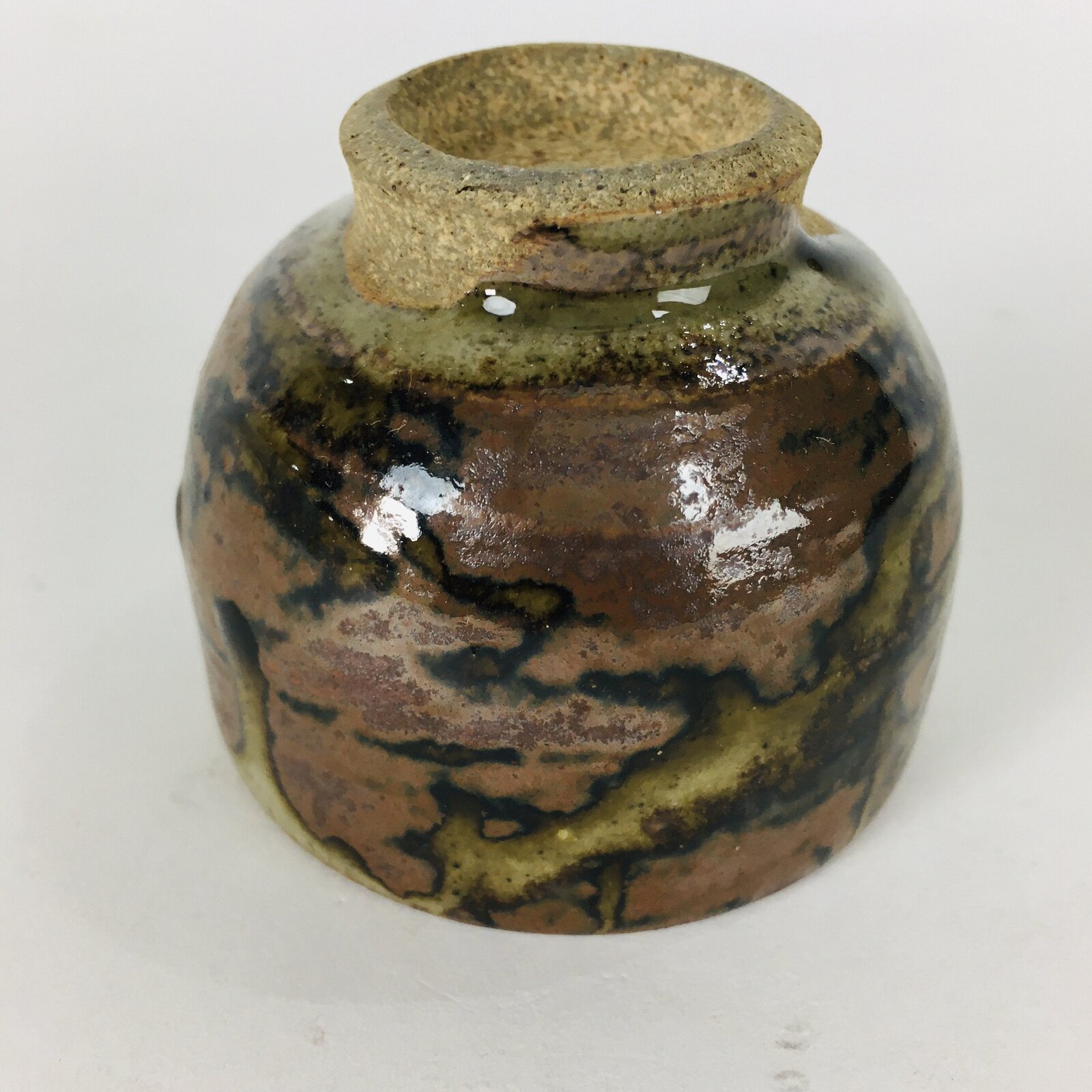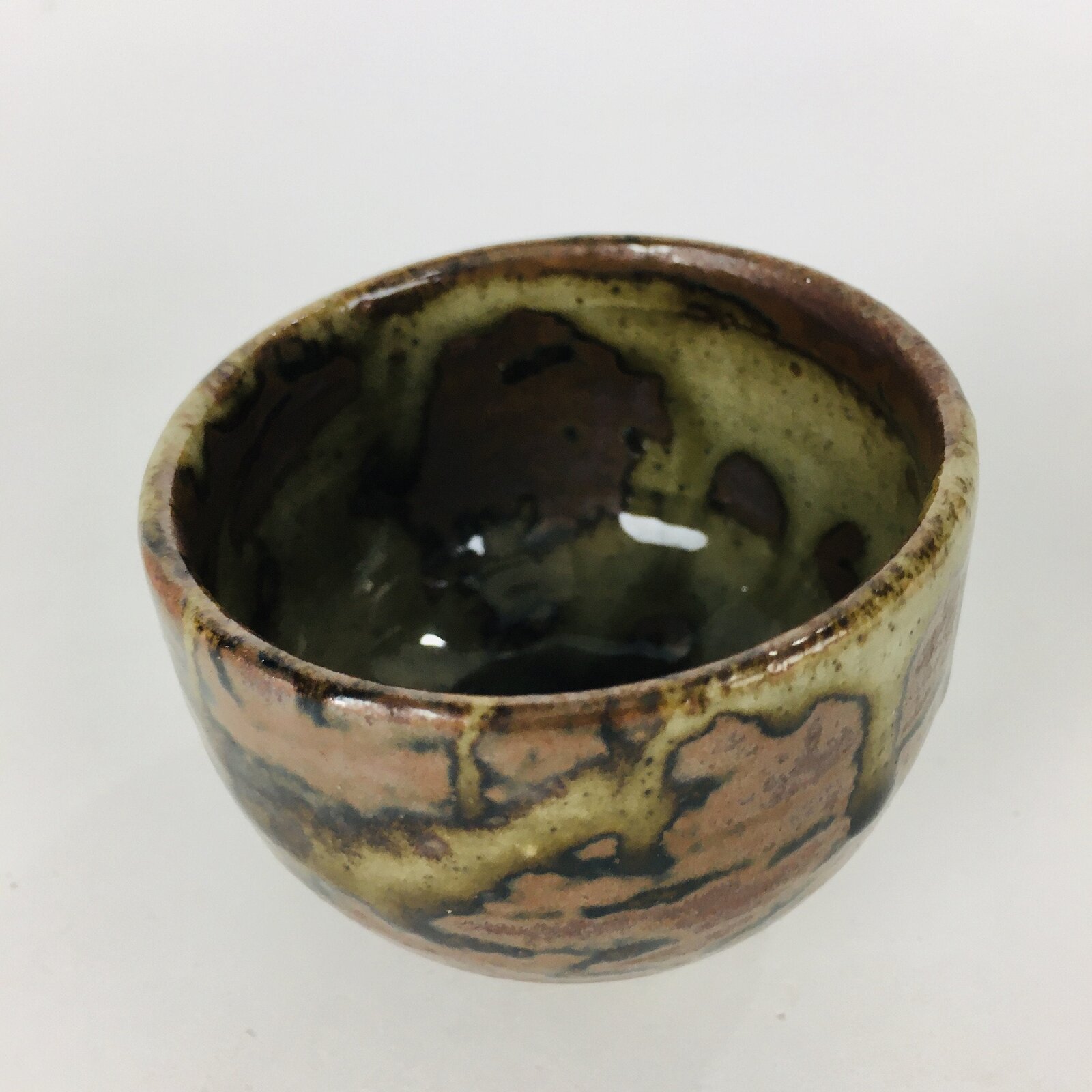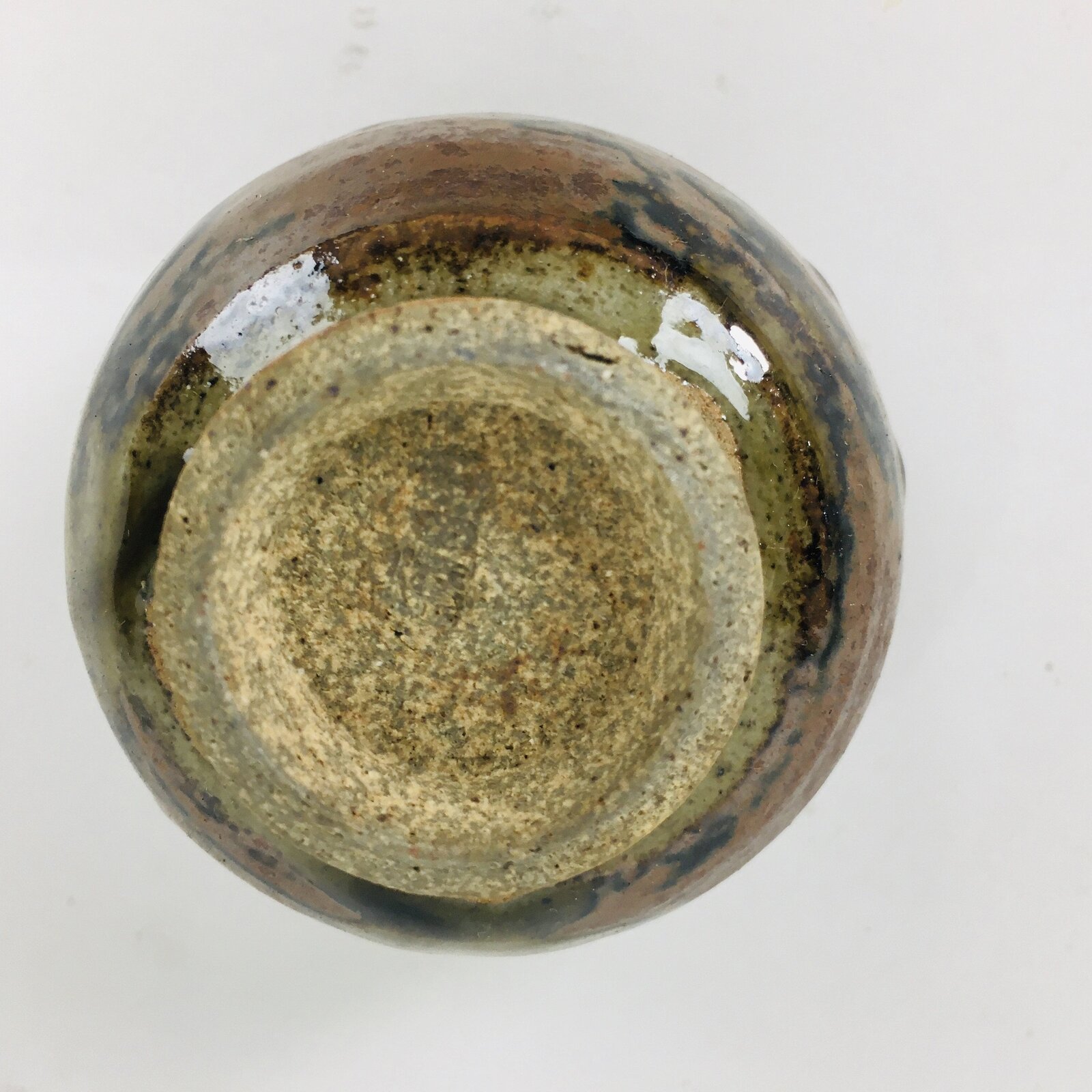 Japanese Ceramic Sake Cup Echizen Ware Vtg Guinomi Ochoko Brown Glaze GU899