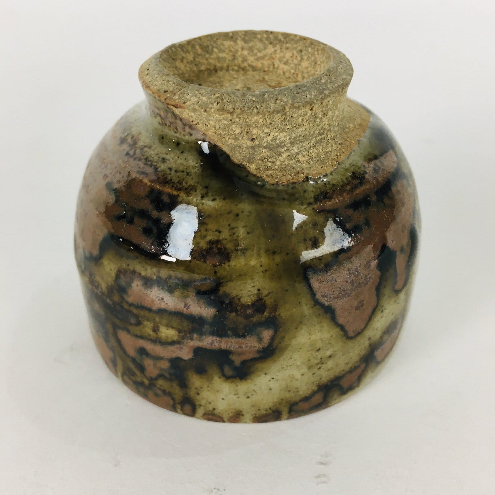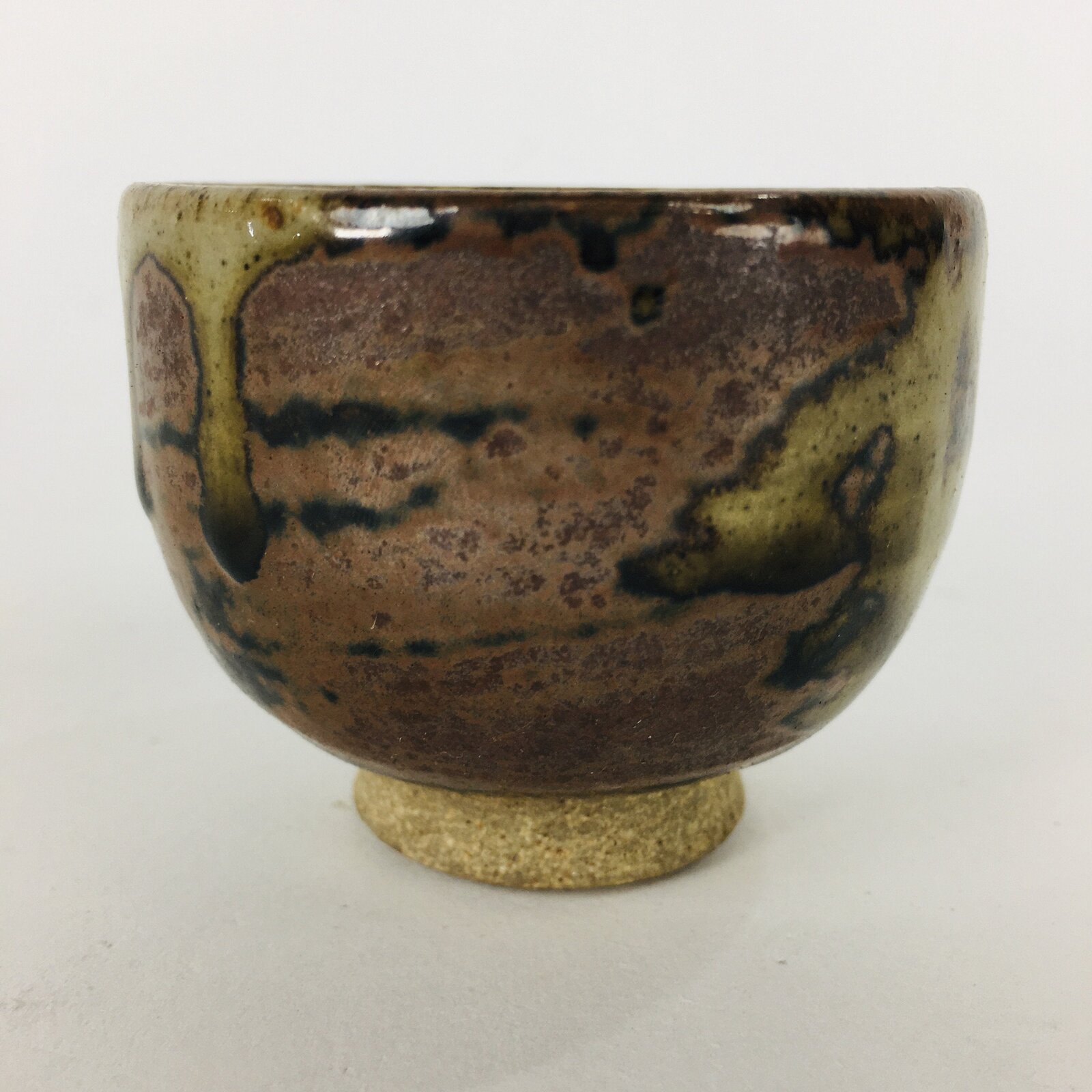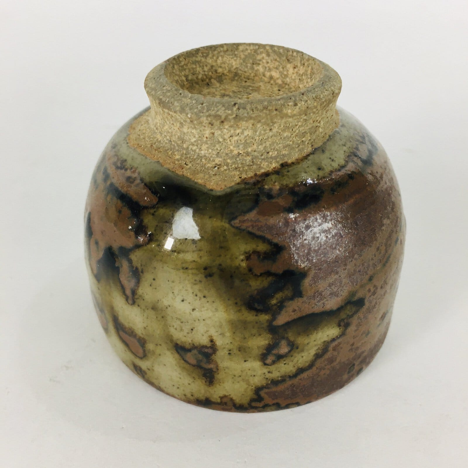 Japanese Ceramic Sake Cup Echizen Ware Vtg Guinomi Ochoko Brown Glaze GU899