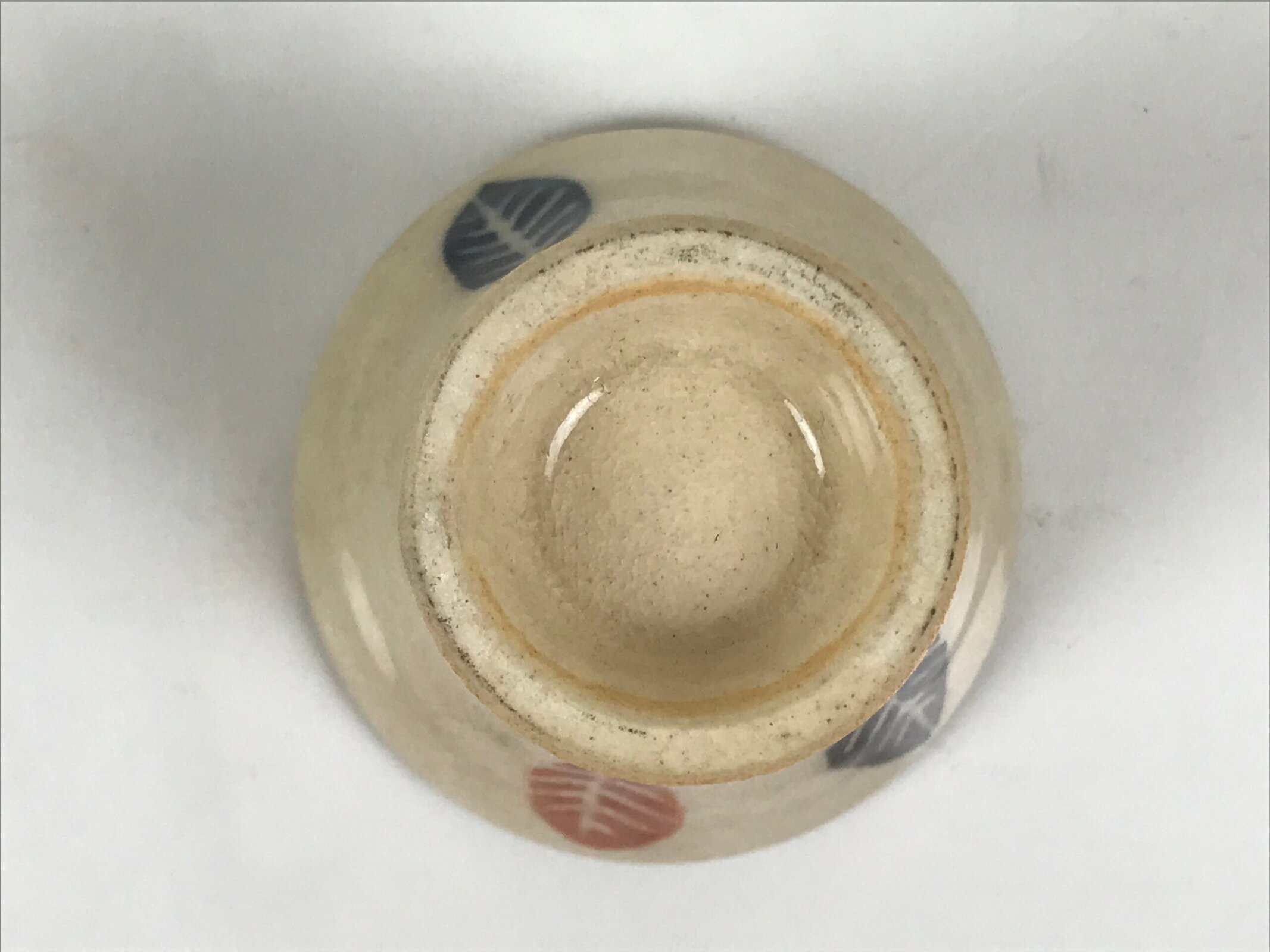 February 24, 2026Japanese Ceramic Sake Cup Vtg Rappa Ochoko Guinomi Beige Brown Blue Leaves G345