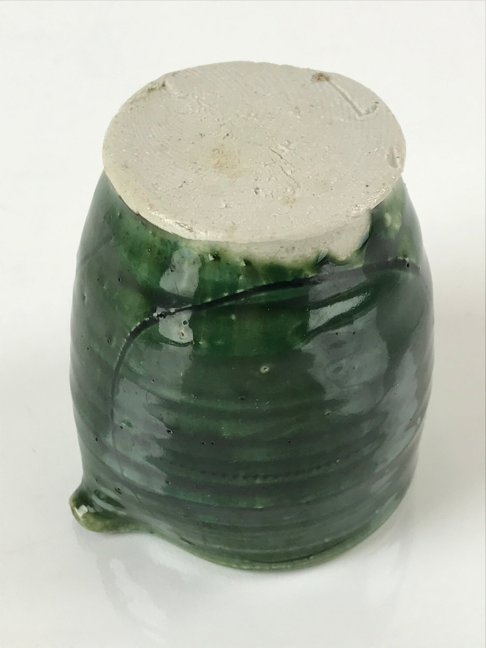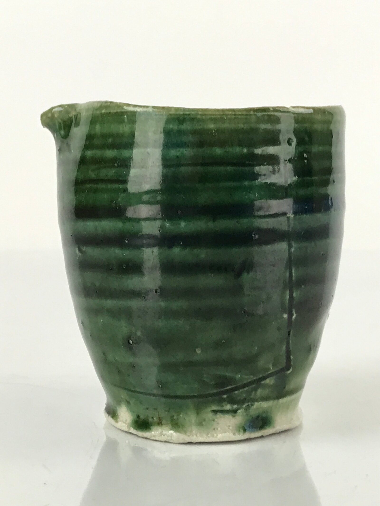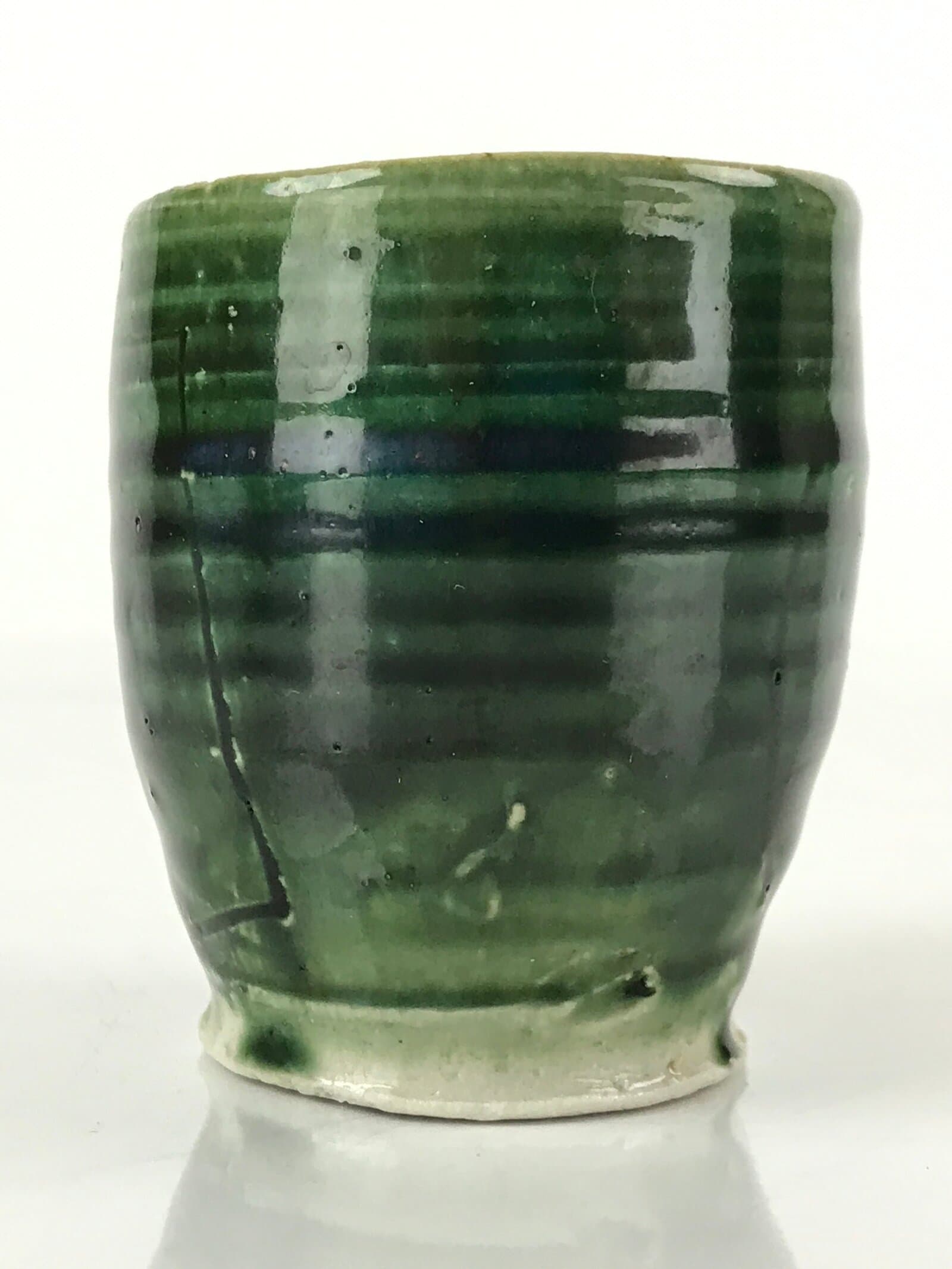 January 21, 2026Japanese Ceramic Sake Pourer Tokkuri Cup Vtg Katakuchi Dark Green Glaze PY642