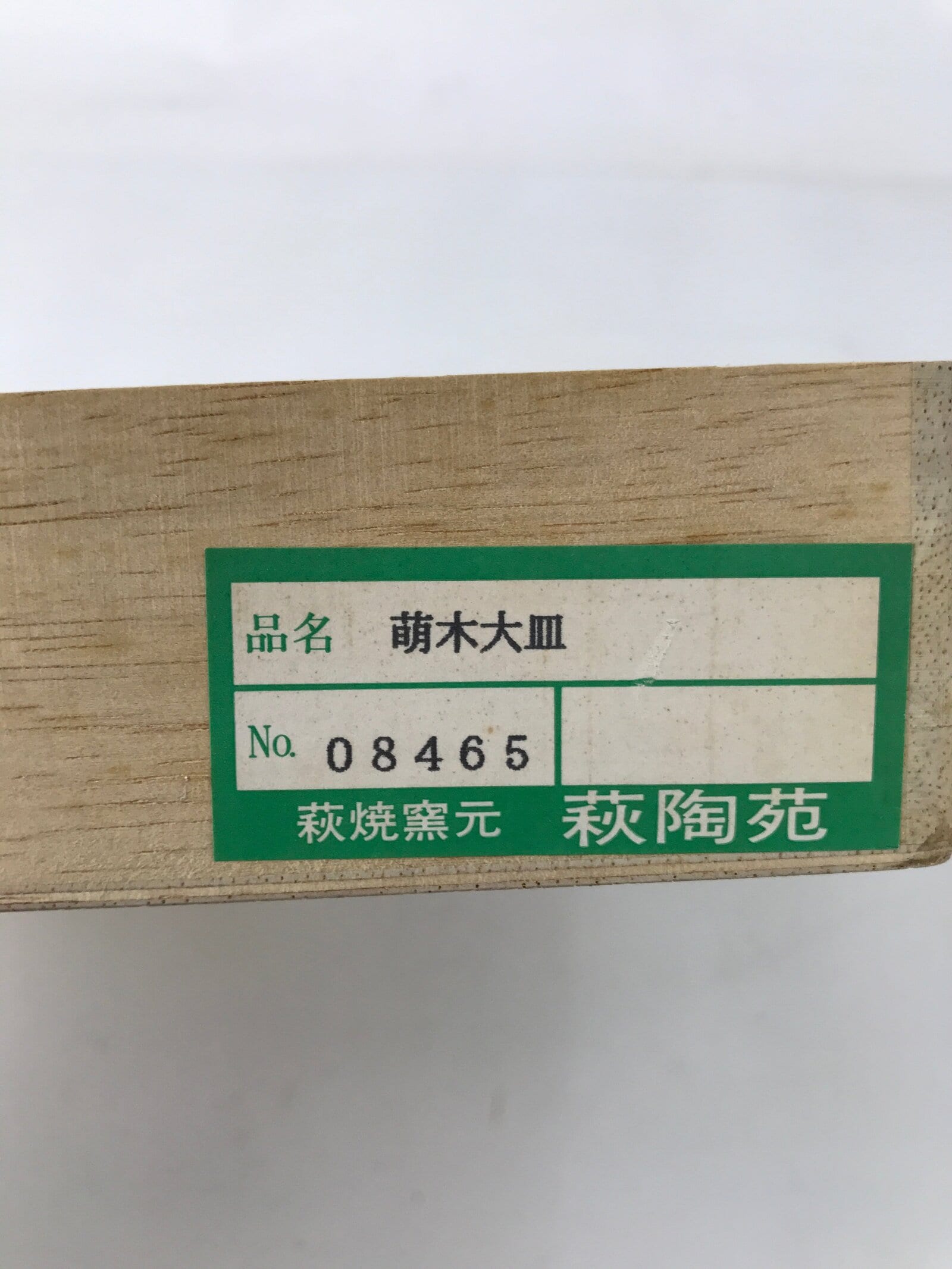 - Characters: [on the box] 萩焼 hagiyaki Hagiware 大皿 ozara large plate 田村悟朗作 tamura goro saku made by Goro Tamura, [on the sticker] 萌木大皿 moegi ozara tree with young leaves 萩焼窯元 hagiyaki kamamoto Hagiware kiln 萩陶苑 hagitoen kiln’s name, [on the bottom(sign)] 悟 one character of the potter’s name