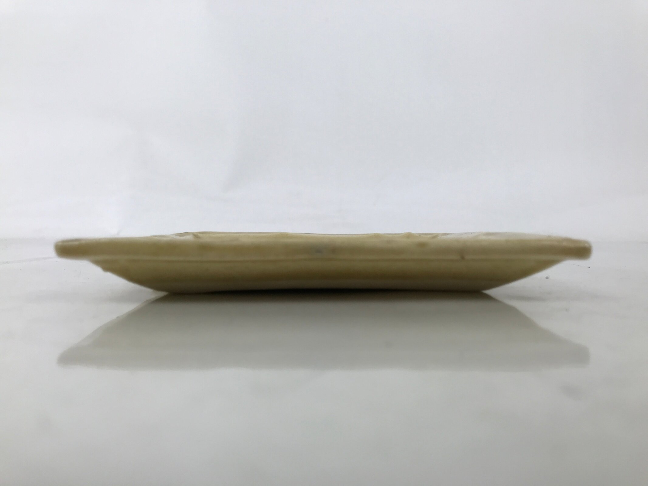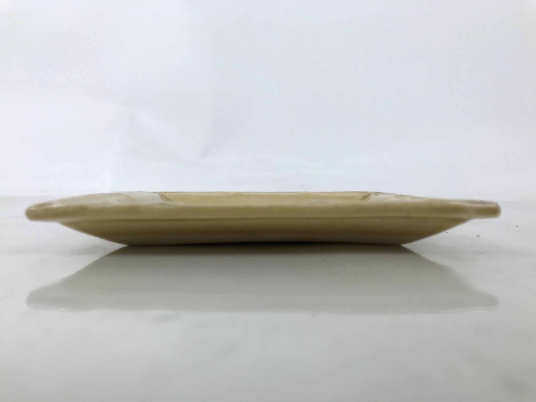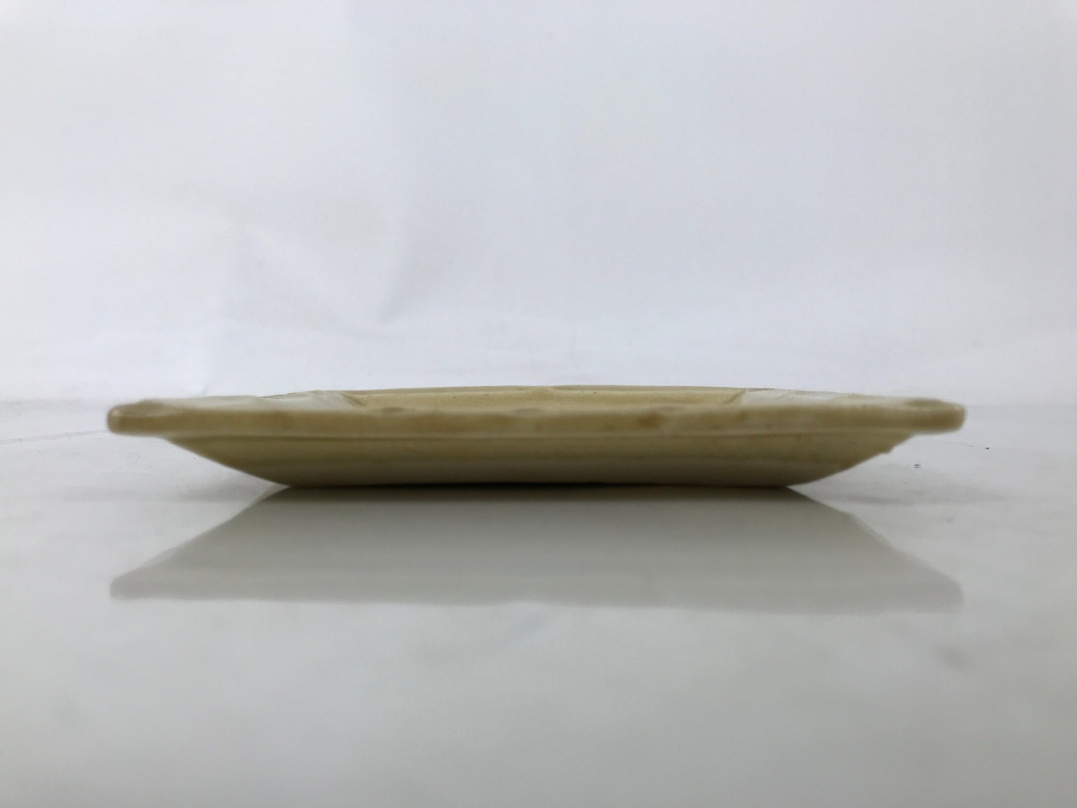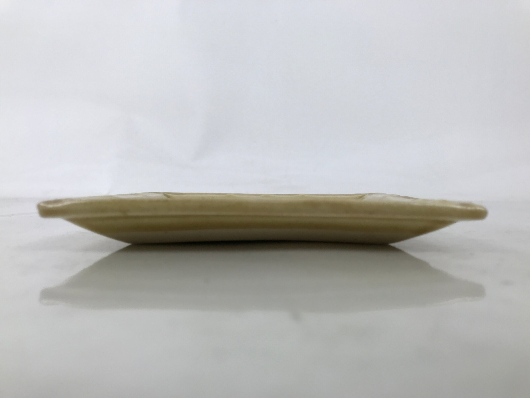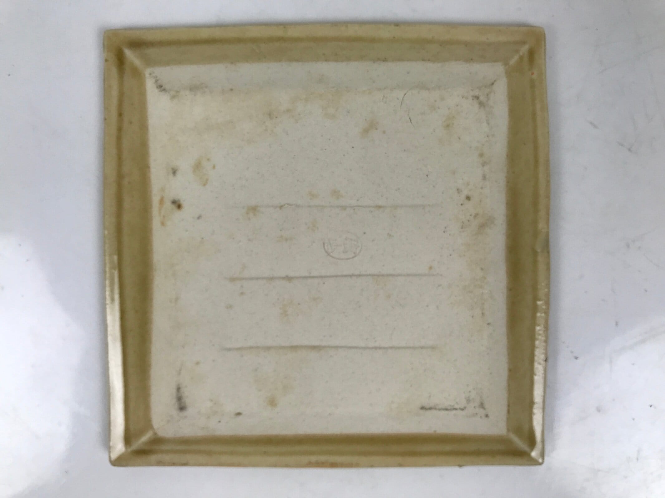 Japanese Ceramic Small Plate Kozara Vtg Sara Square Pottery Beige Leaves Y442