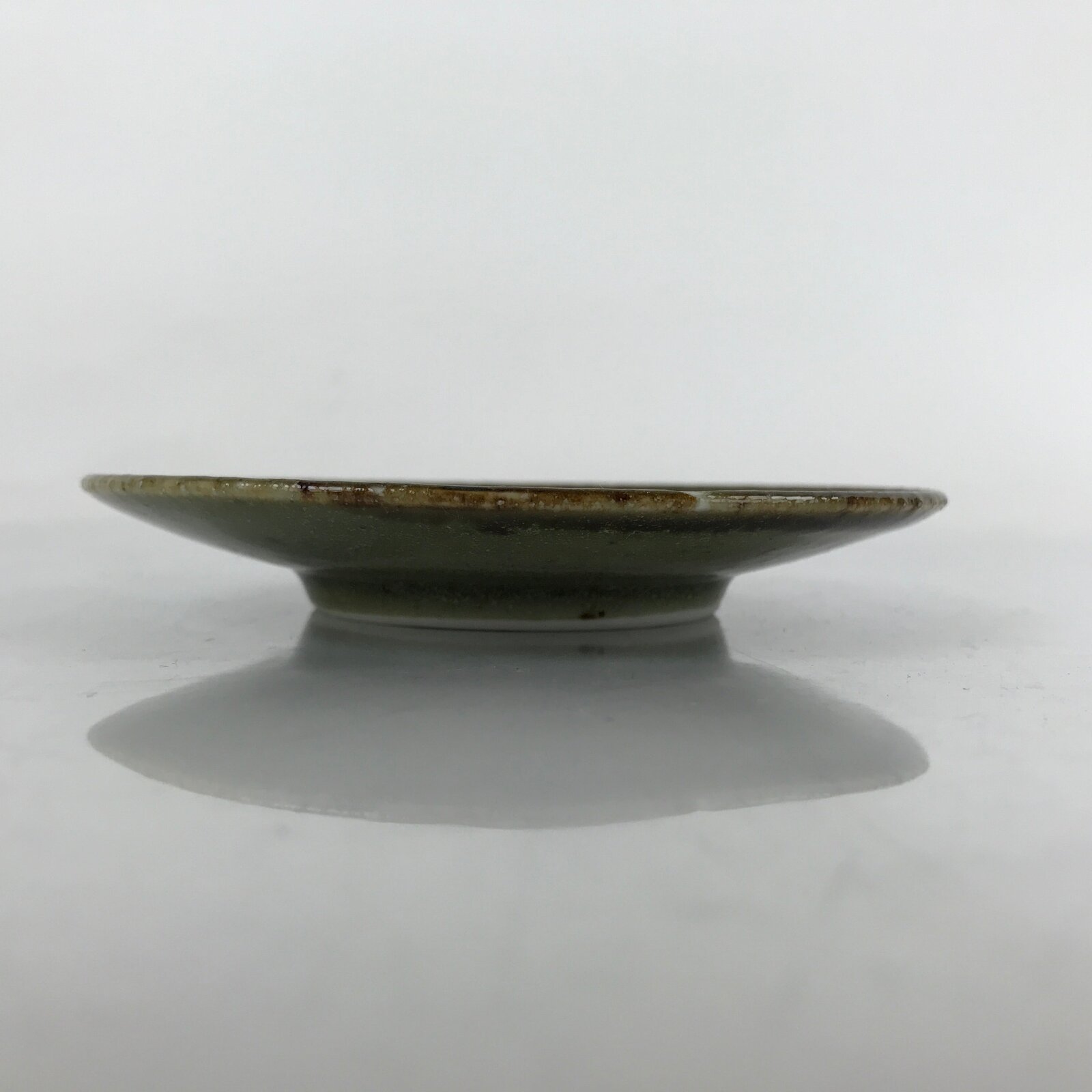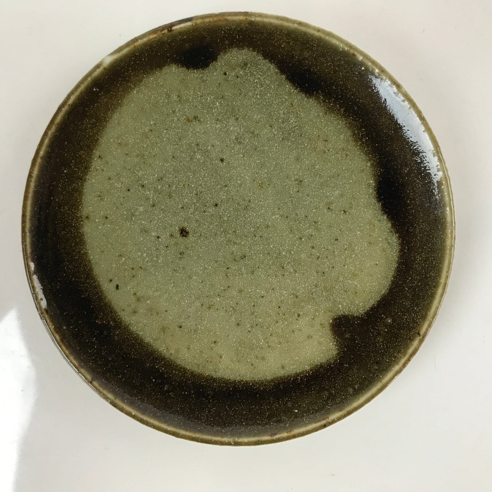 Japanese Ceramic Small Plate Mamezara Vtg Simple Green Brown Pottery PY873