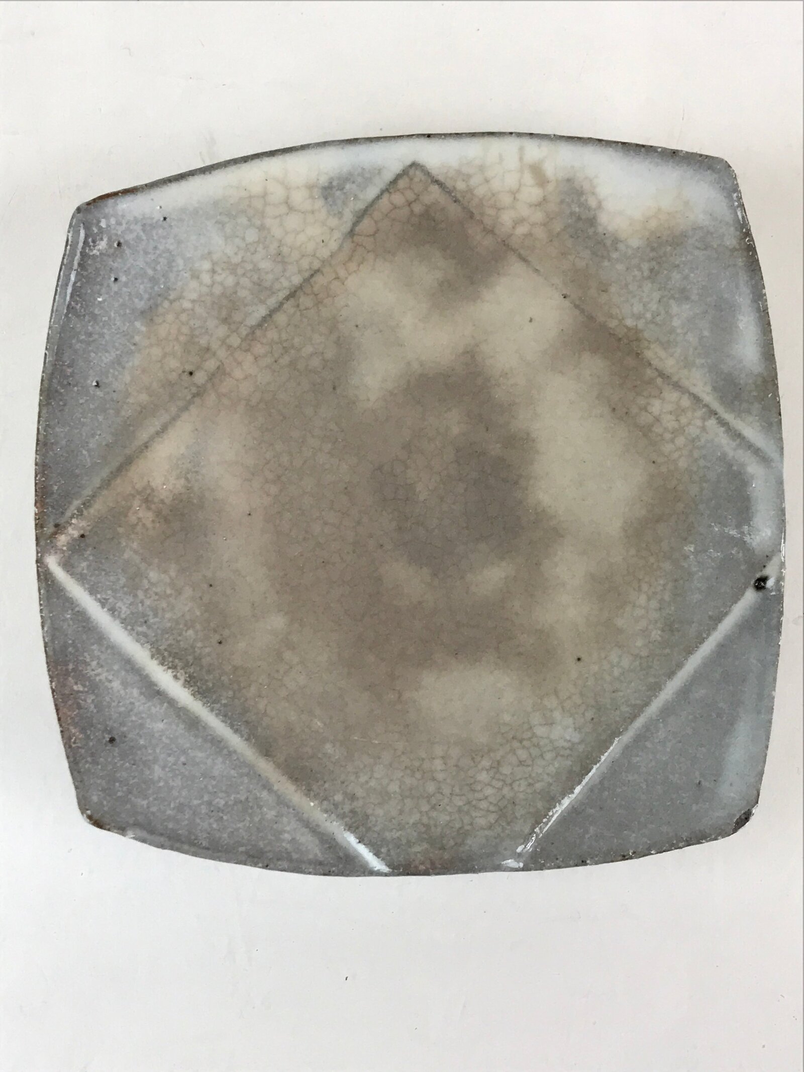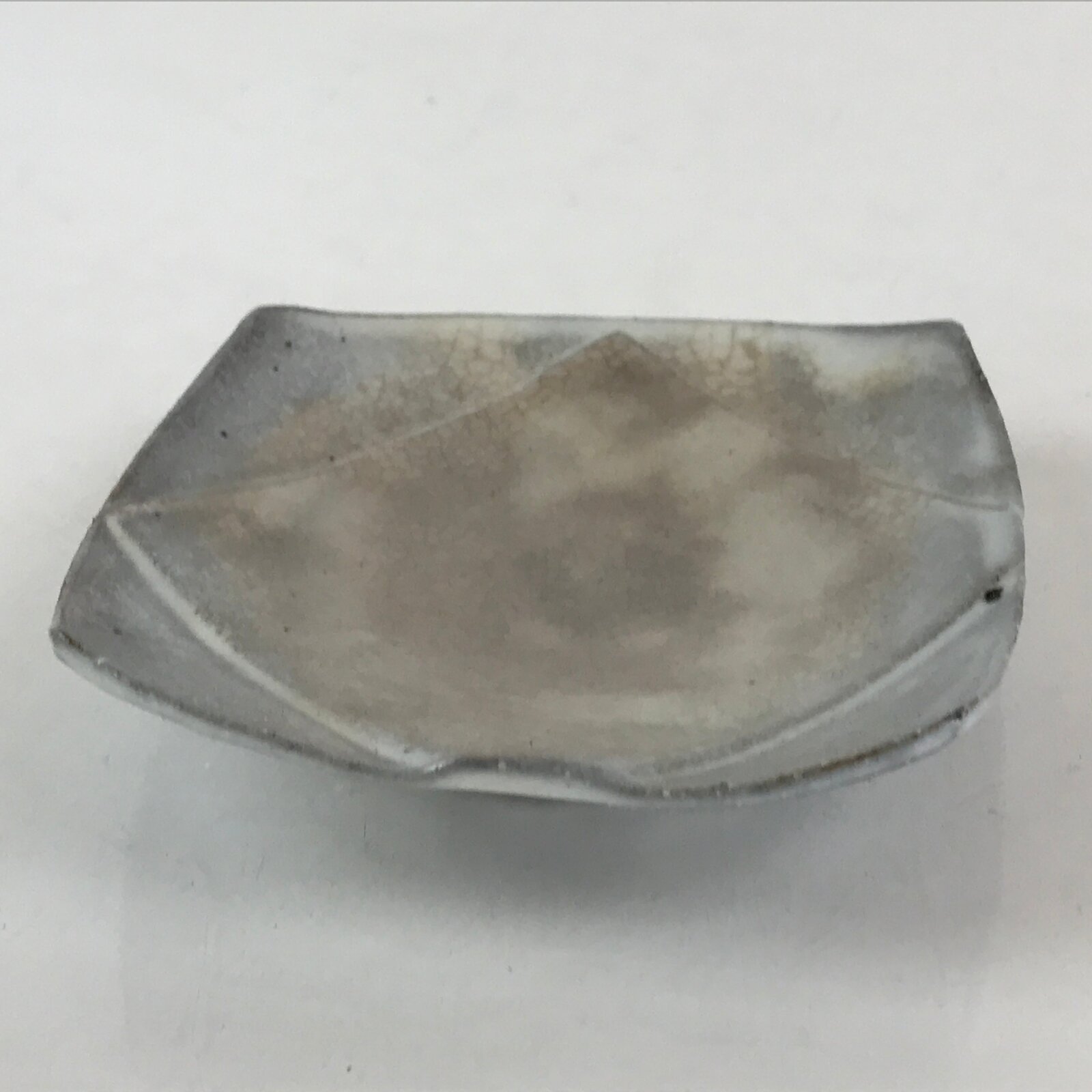 Japanese Ceramic Small Plate Square Pottery Yakimono Whitish Gray Kozara PY264