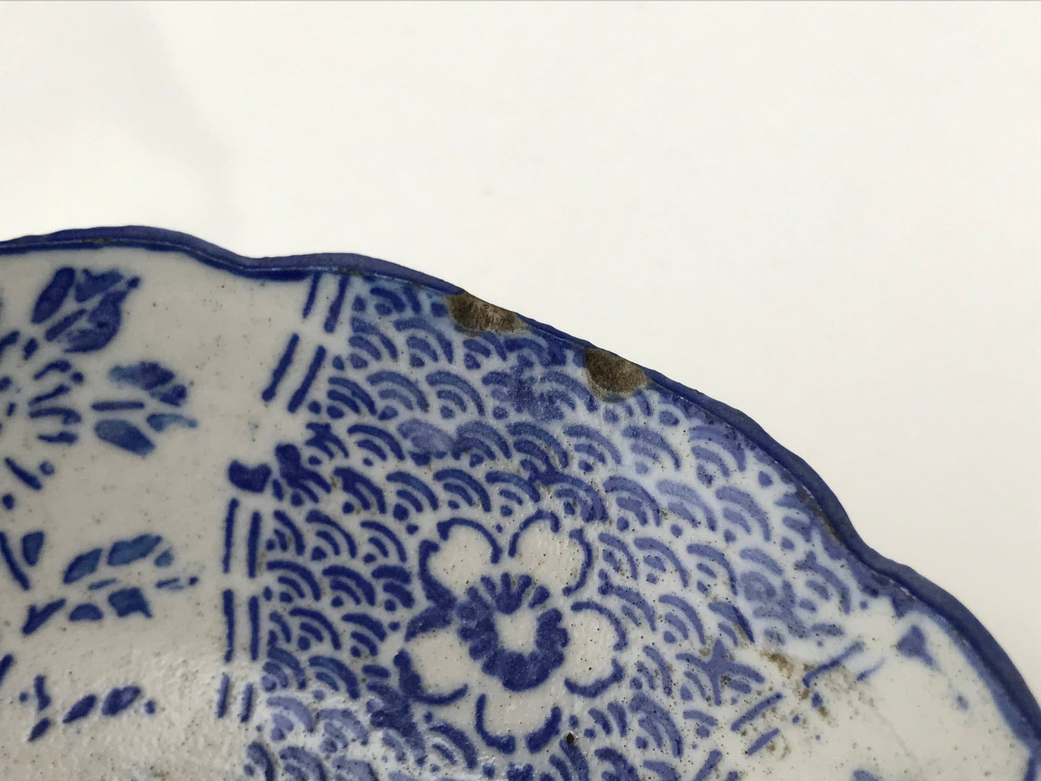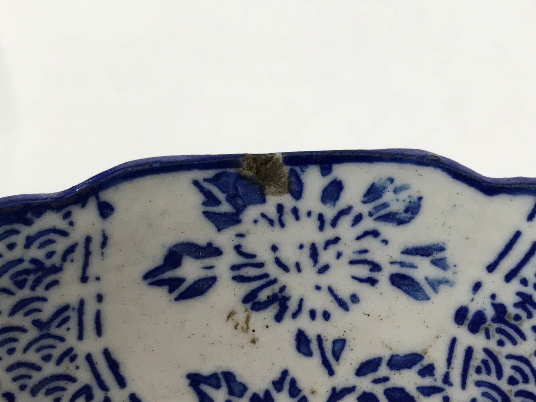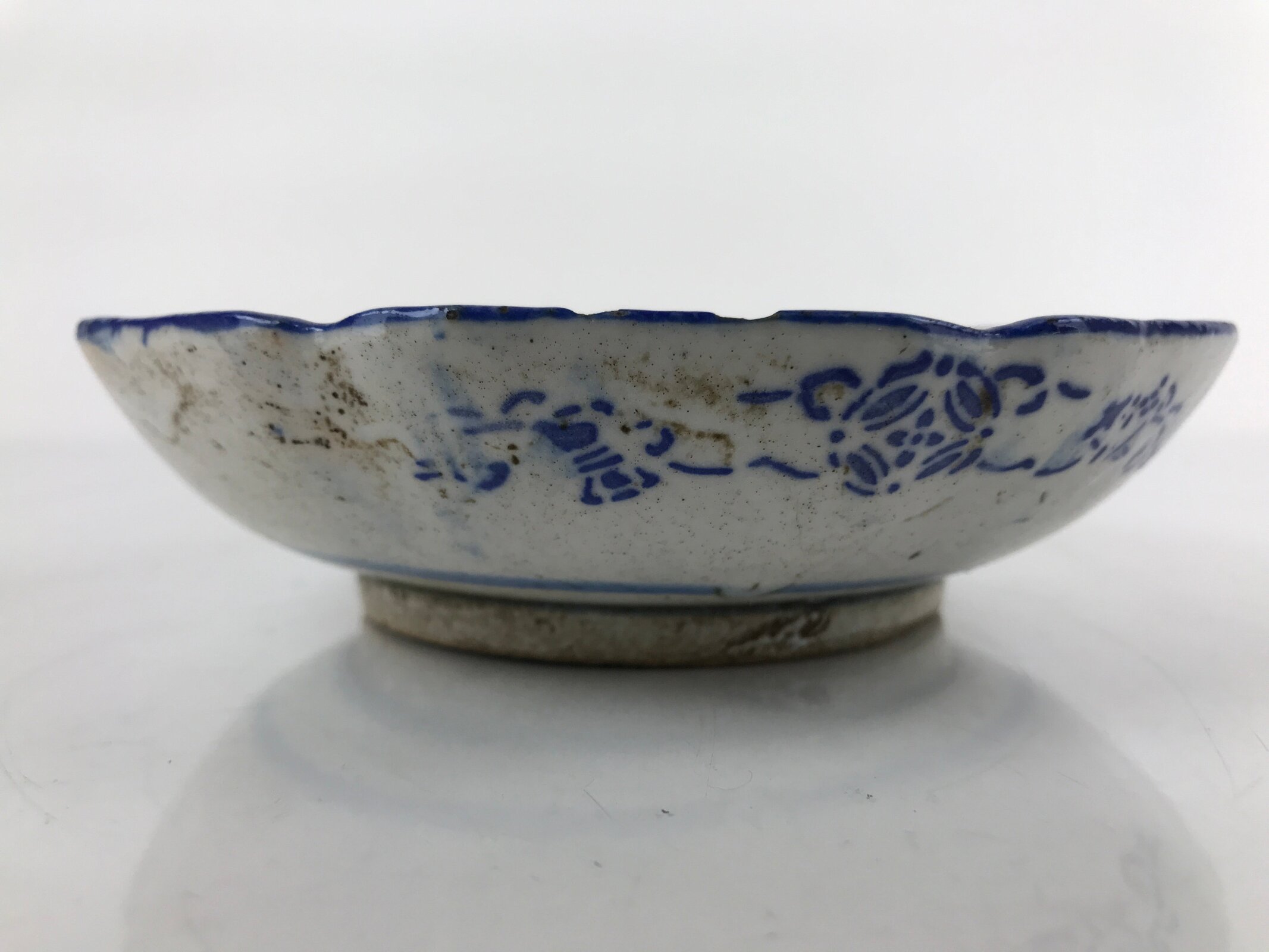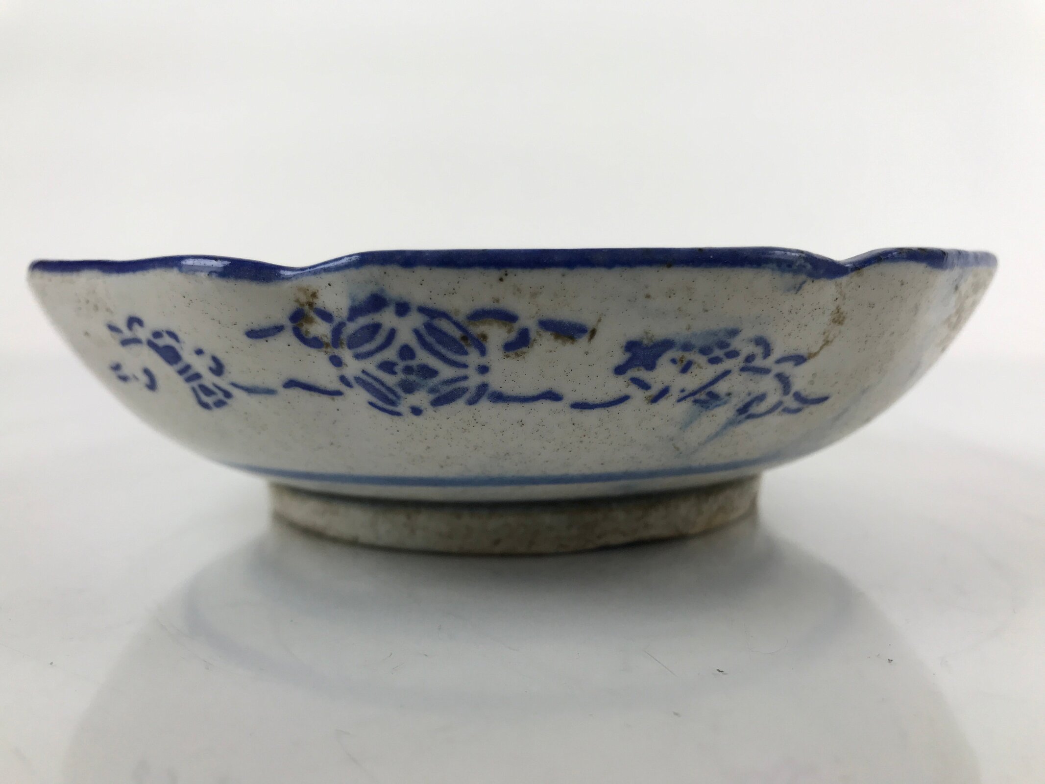 - Good condition considering age. Chips on edge. Imperfections in glaze, shape, and design due to production. Wear and tear due to age. Please see the photos carefully.