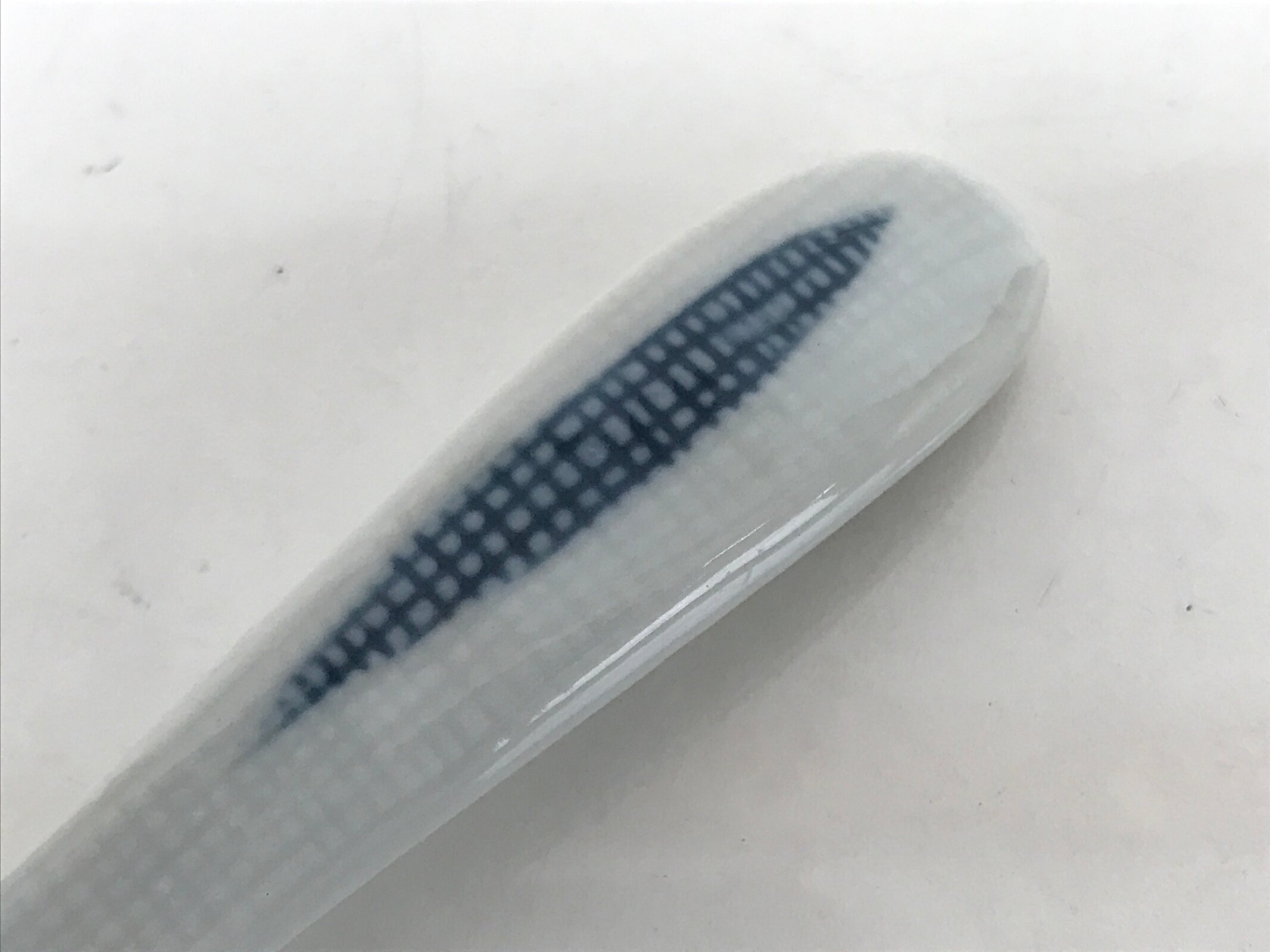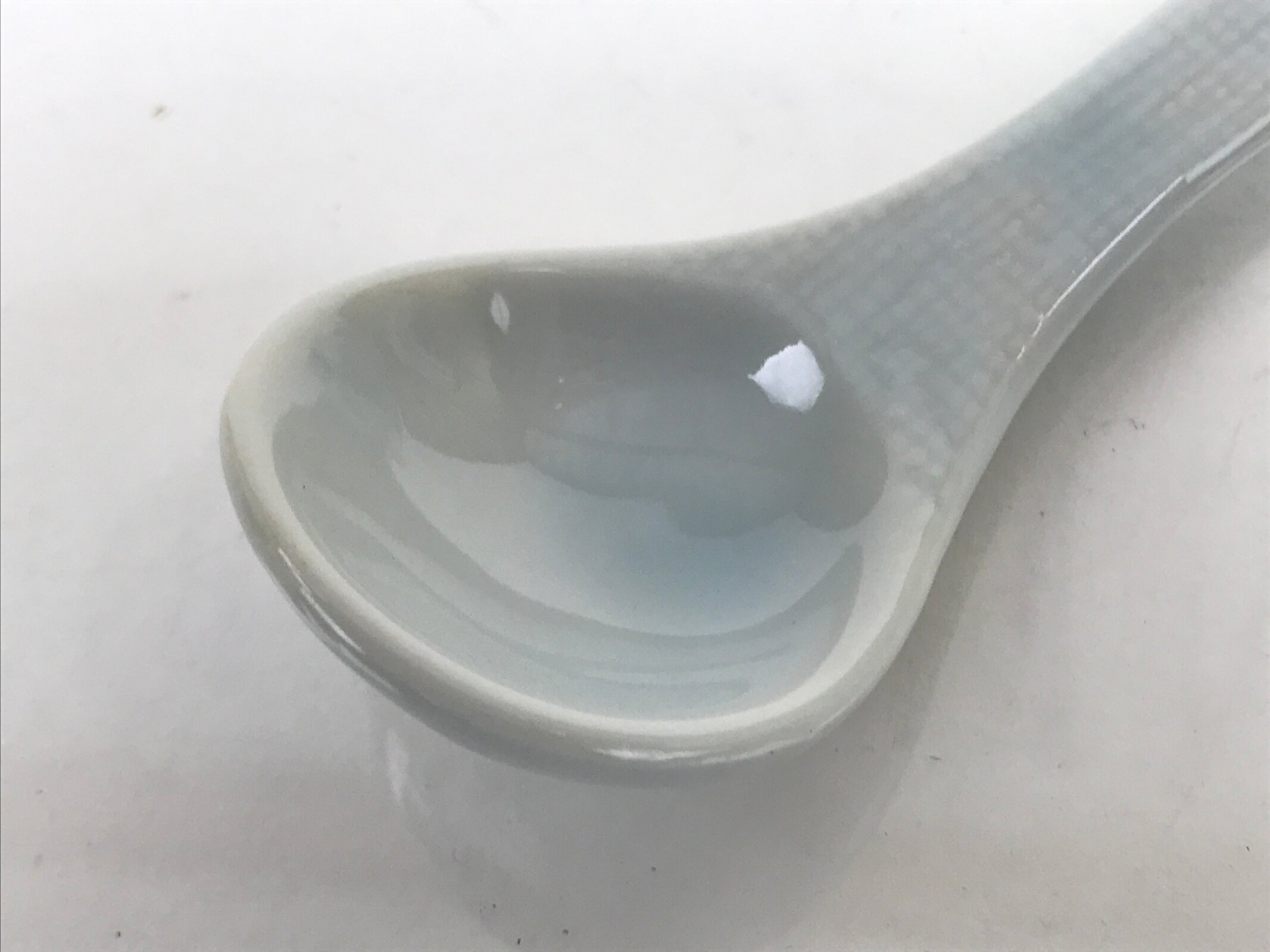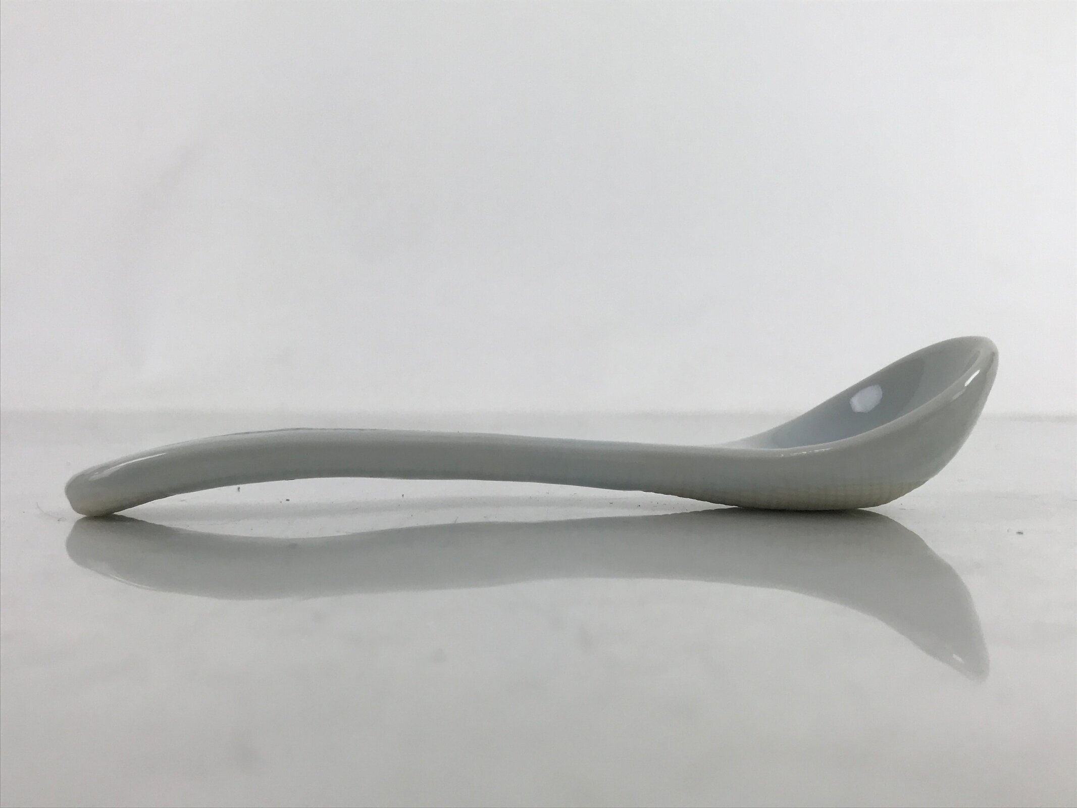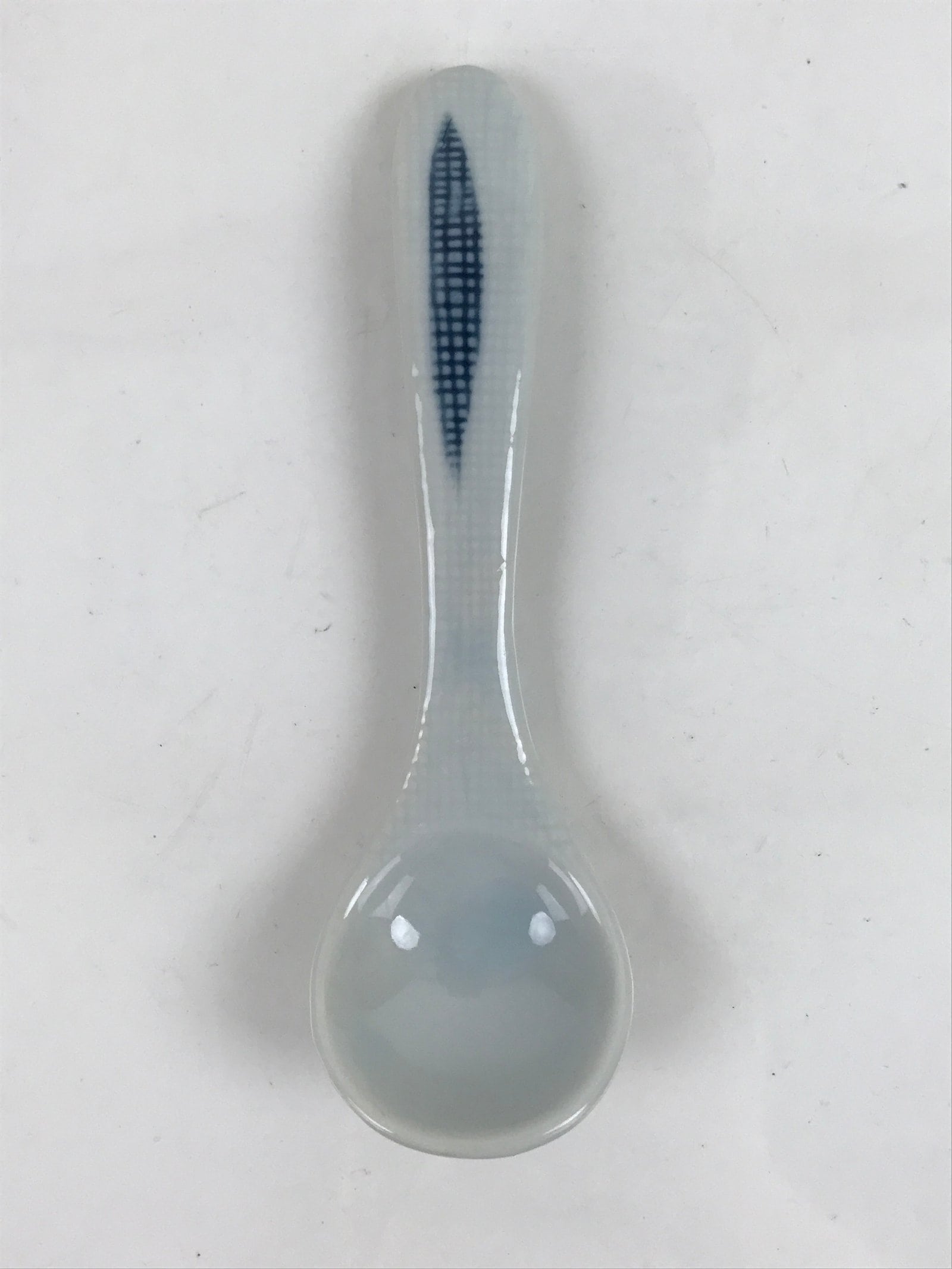 Japanese Ceramic Small Spoon Vtg Chawanmushi Flatware White Blue JK730