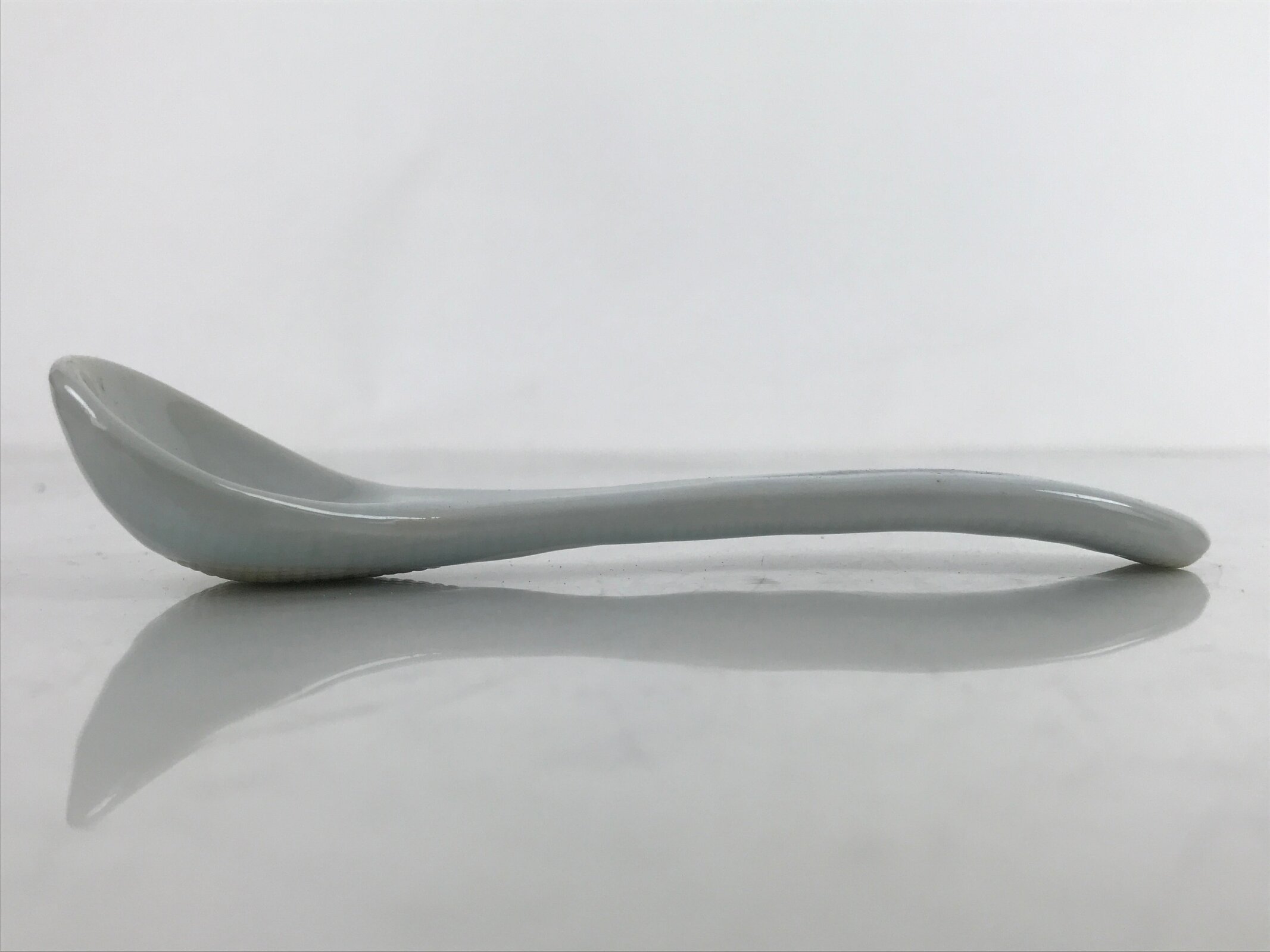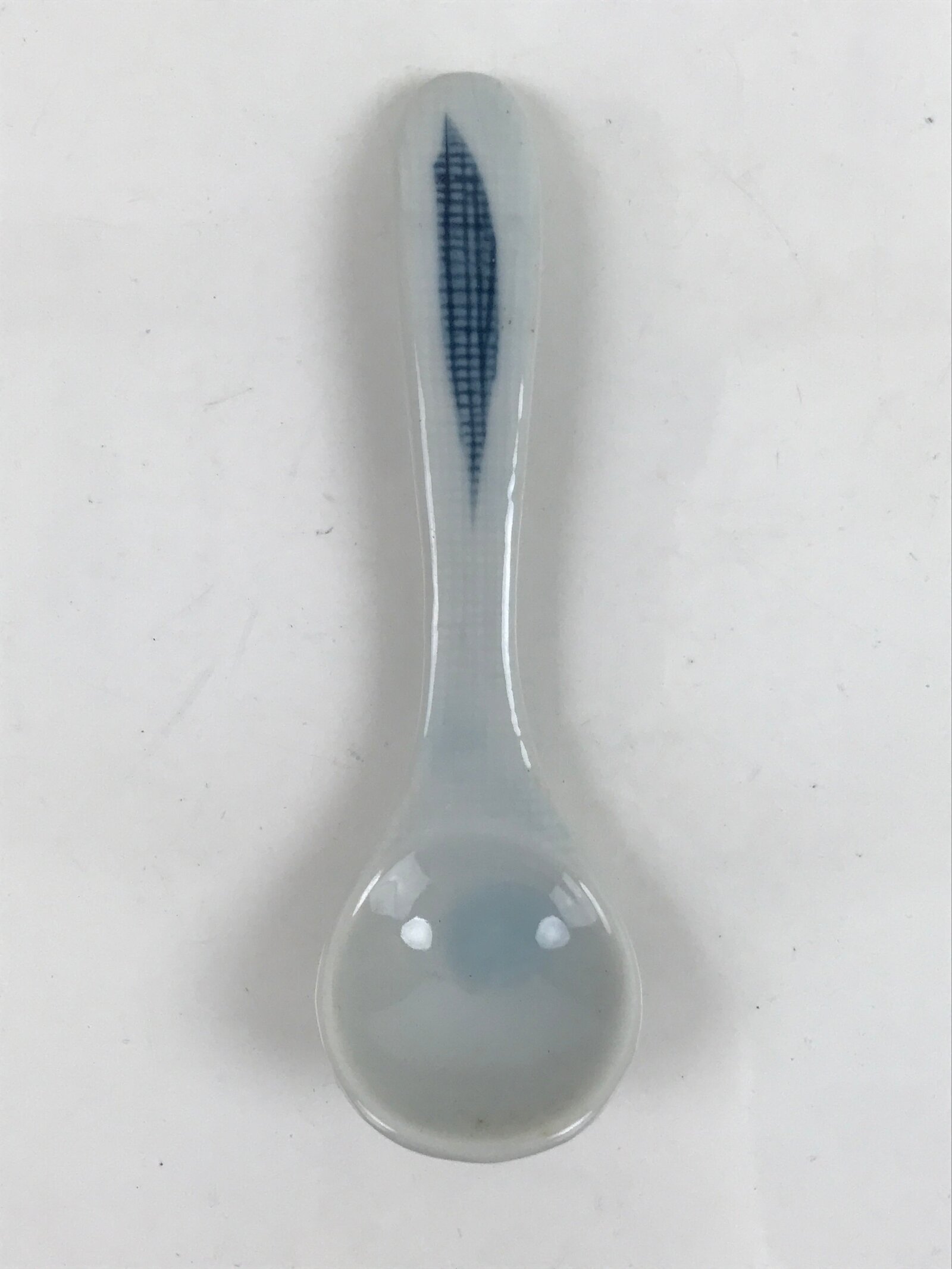 Japanese Ceramic Small Spoon Vtg Chawanmushi Flatware White Blue JK731