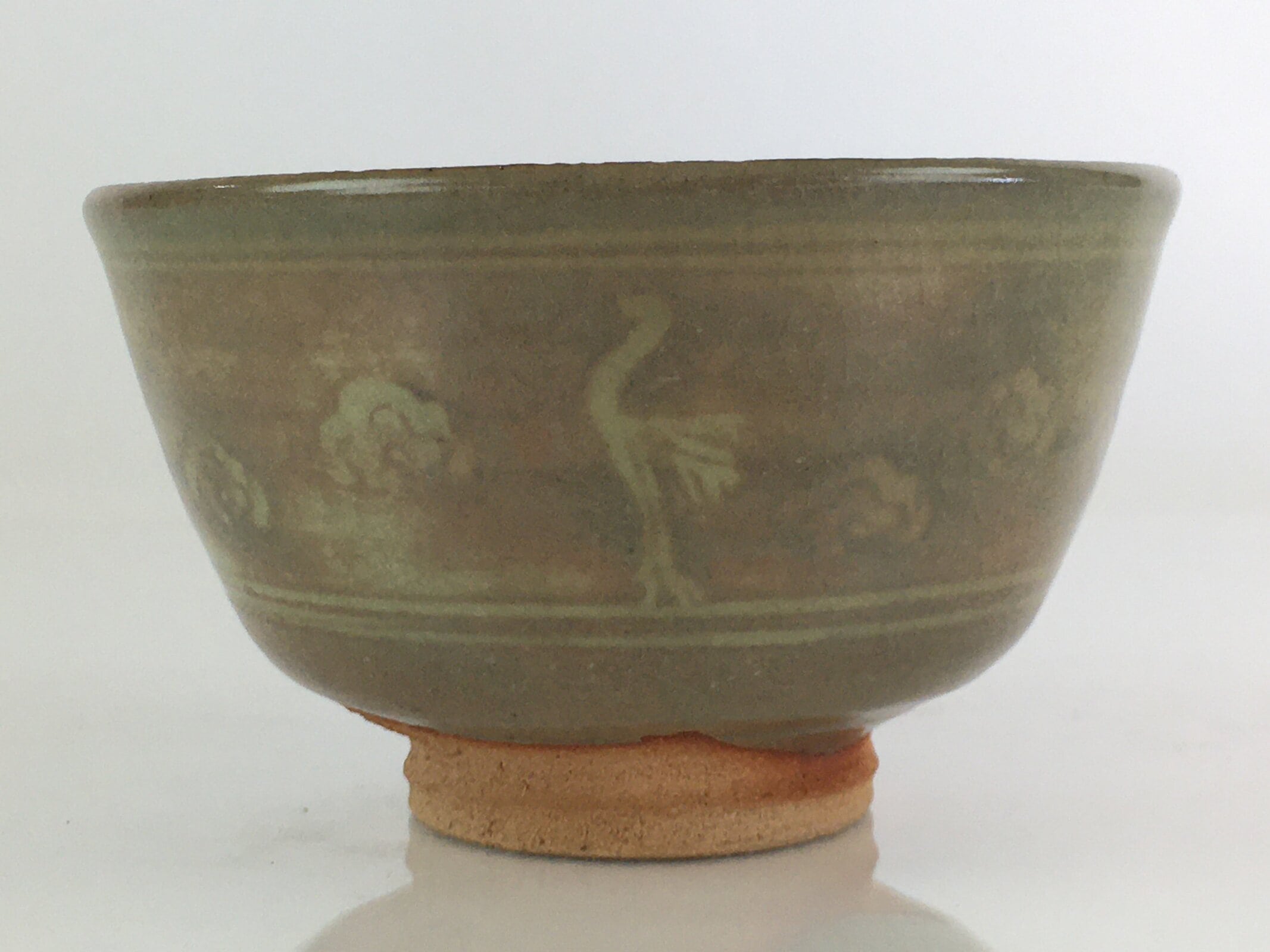 Japanese Ceramic Green Tea Ceremony Bowl Vtg Matcha Chawan Crane Pottery GTB942