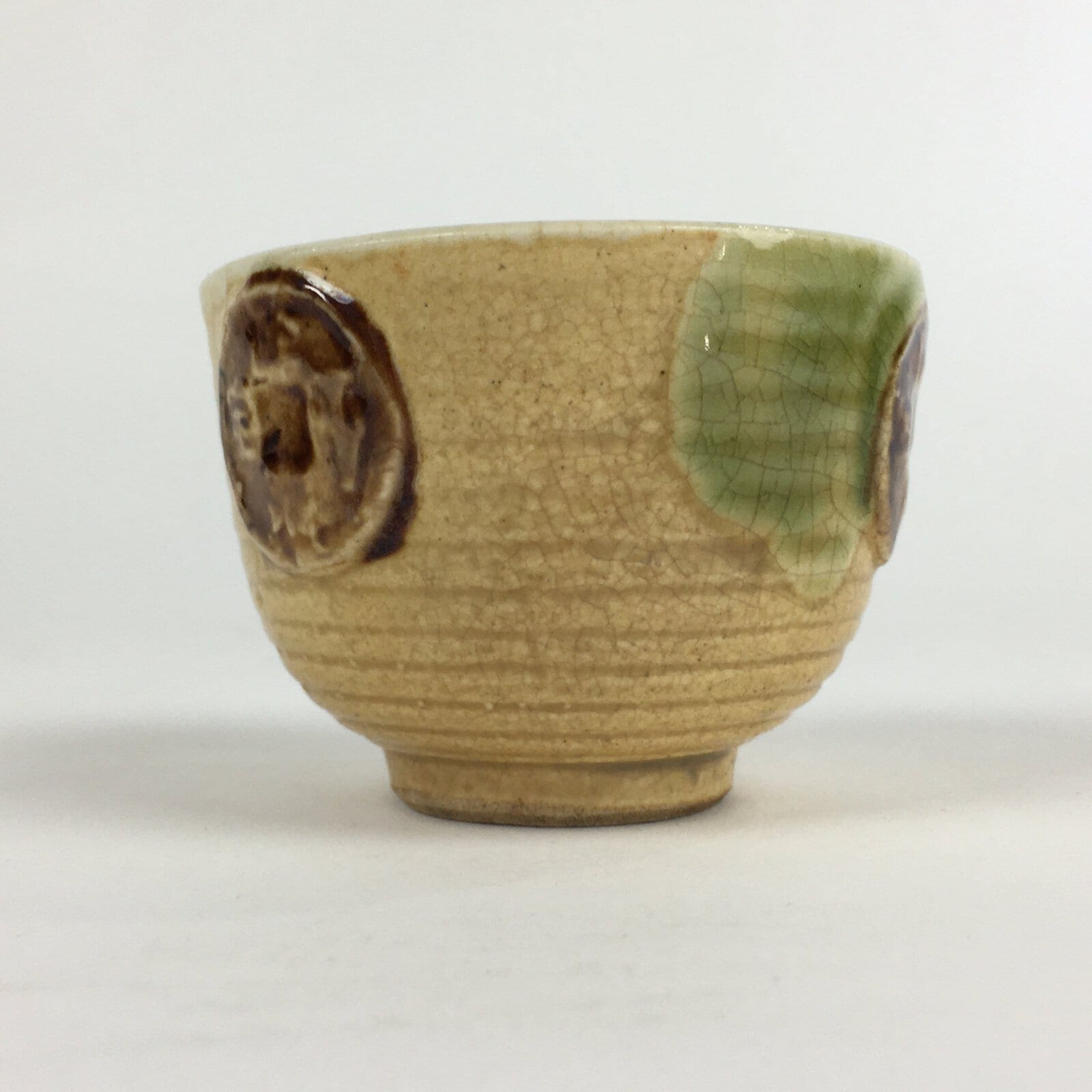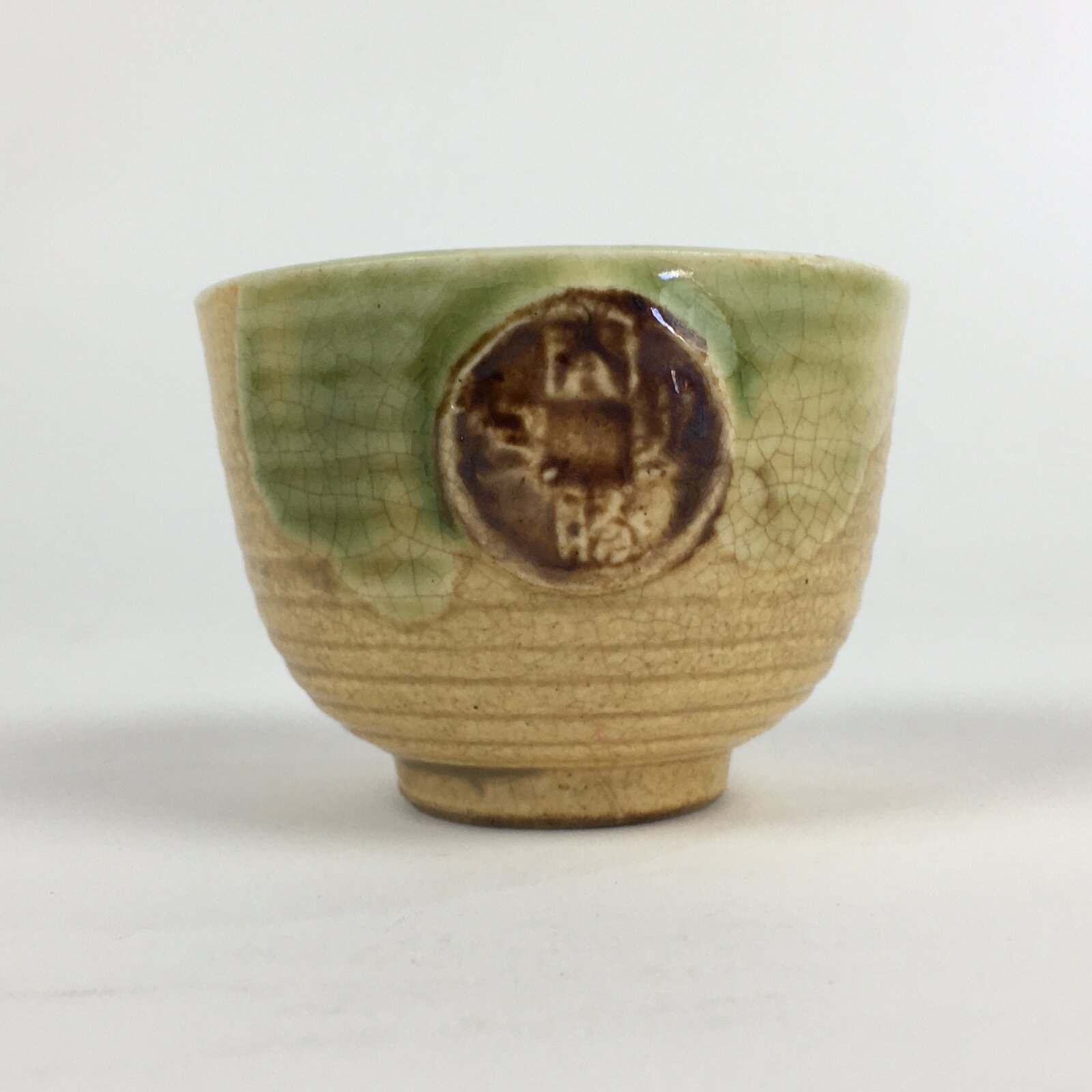 Japanese Ceramic Kiseto Teacup Yunomi Vtg Pottery Yellow Green Sencha TC295