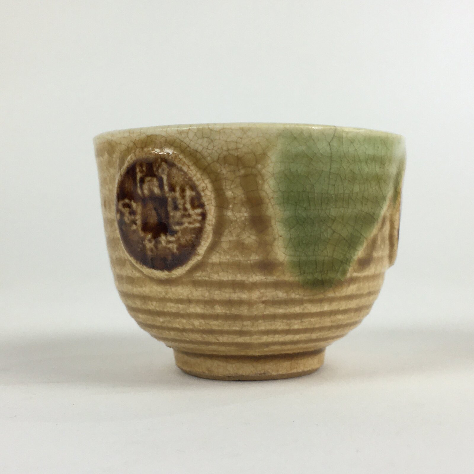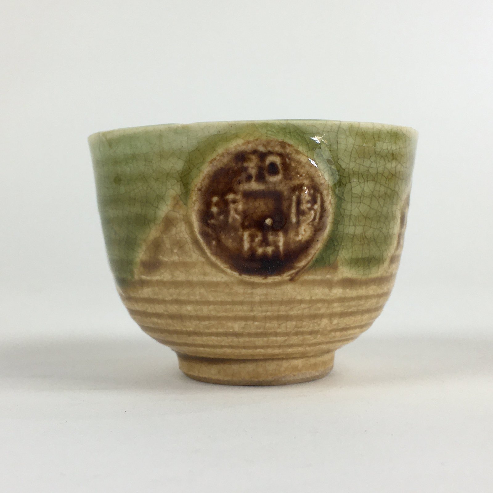 Japanese Ceramic Kiseto Teacup Yunomi Vtg Pottery Yellow Green Sencha TC294