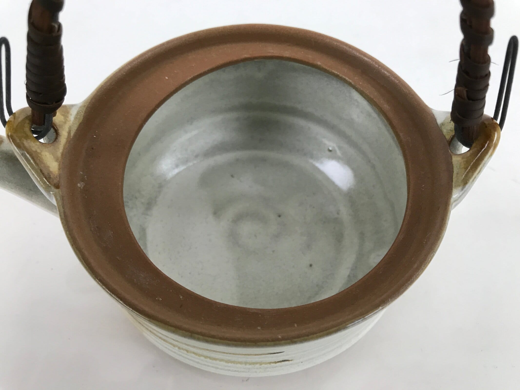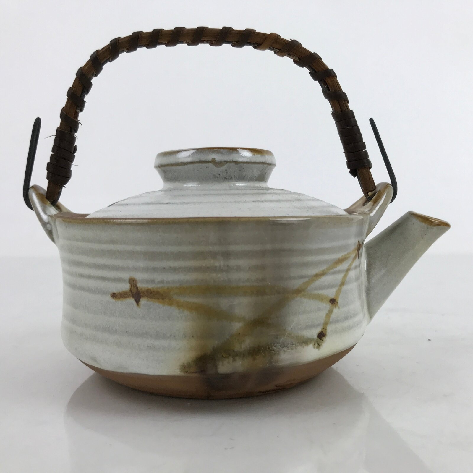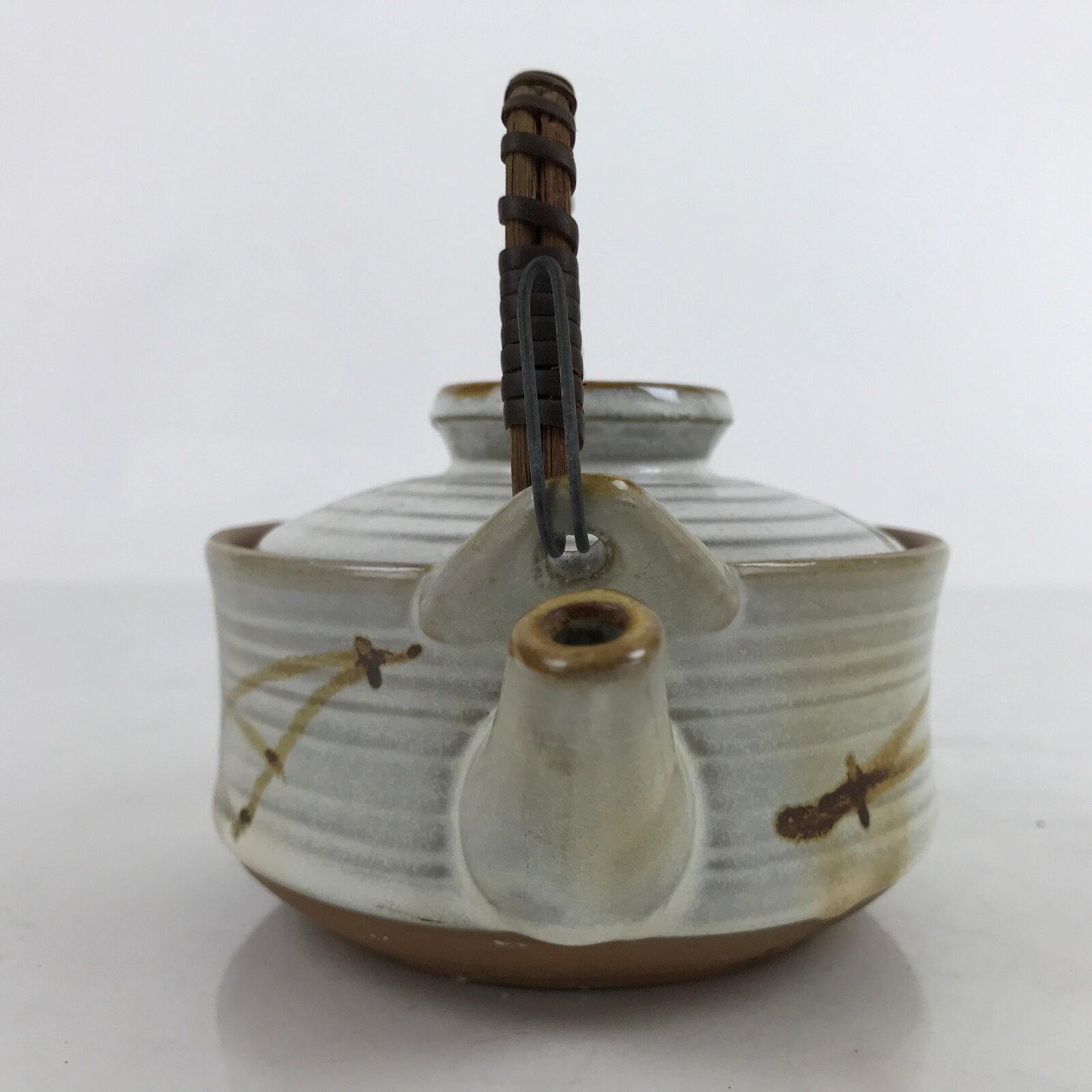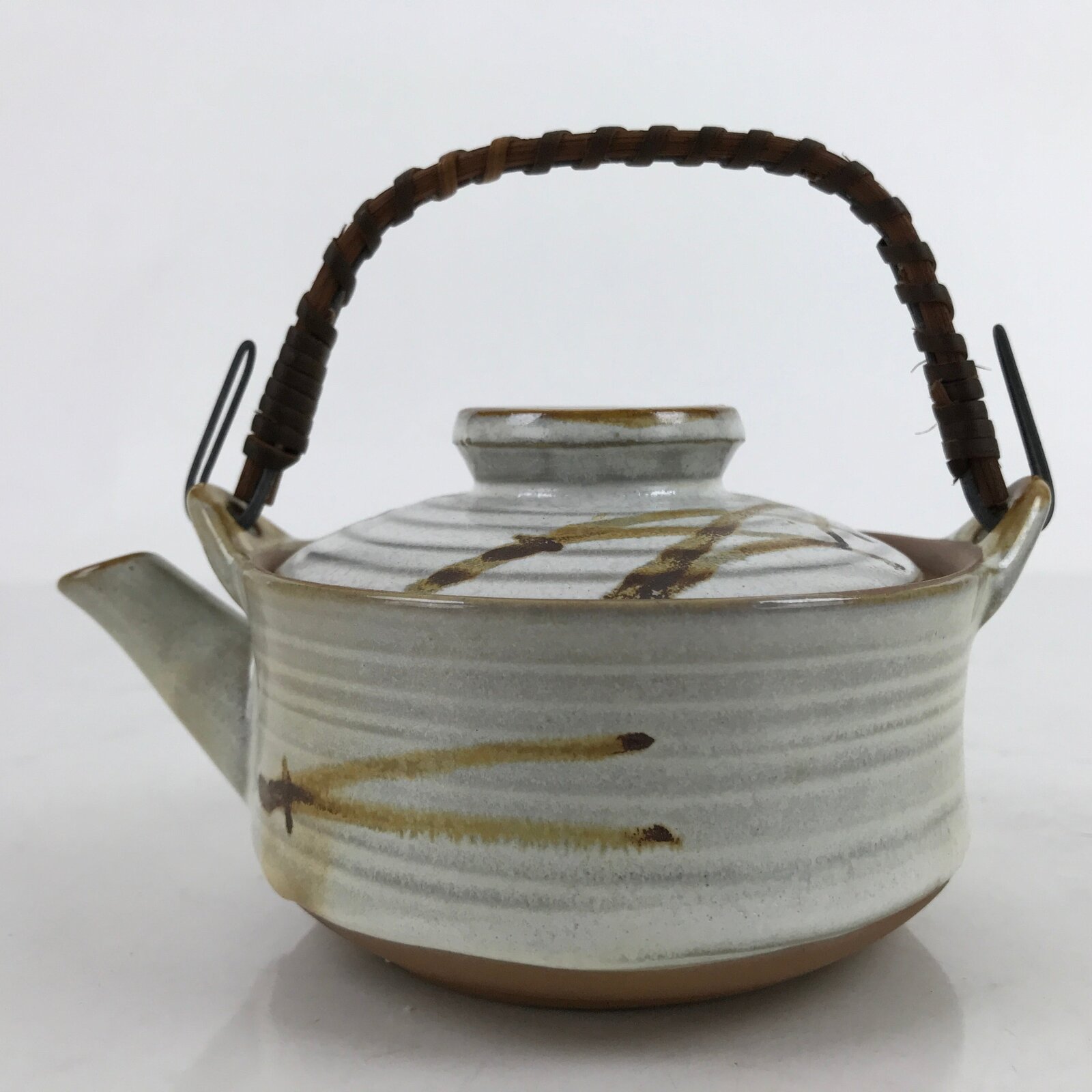 Japanese Ceramic Teapot Kyusu Reed Handle White Brown Pine Needle Design Y109