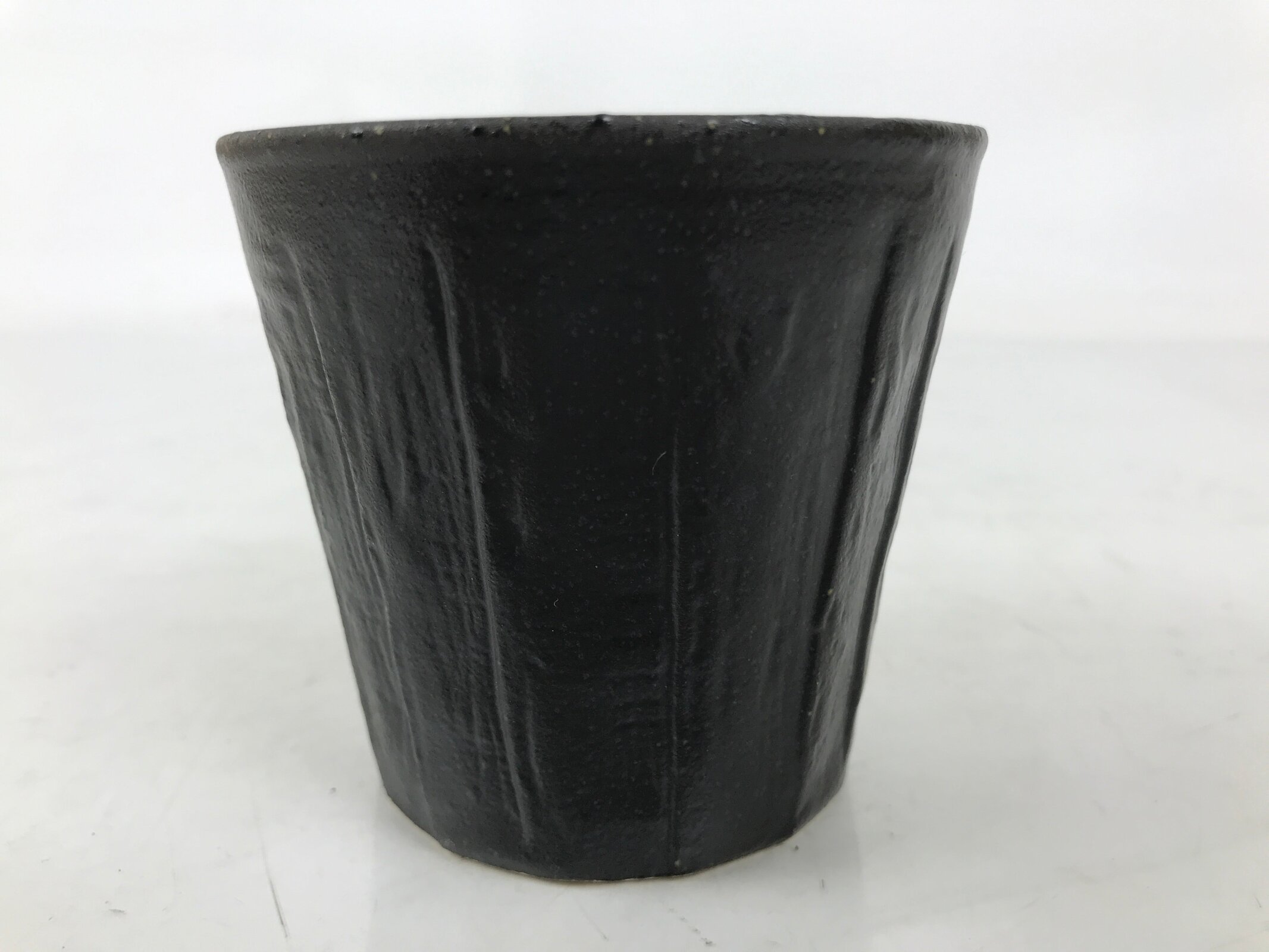 Japanese Ceramic Yunomi Teacup Simple Pottery Vtg Black Sencha Yakimono TC586