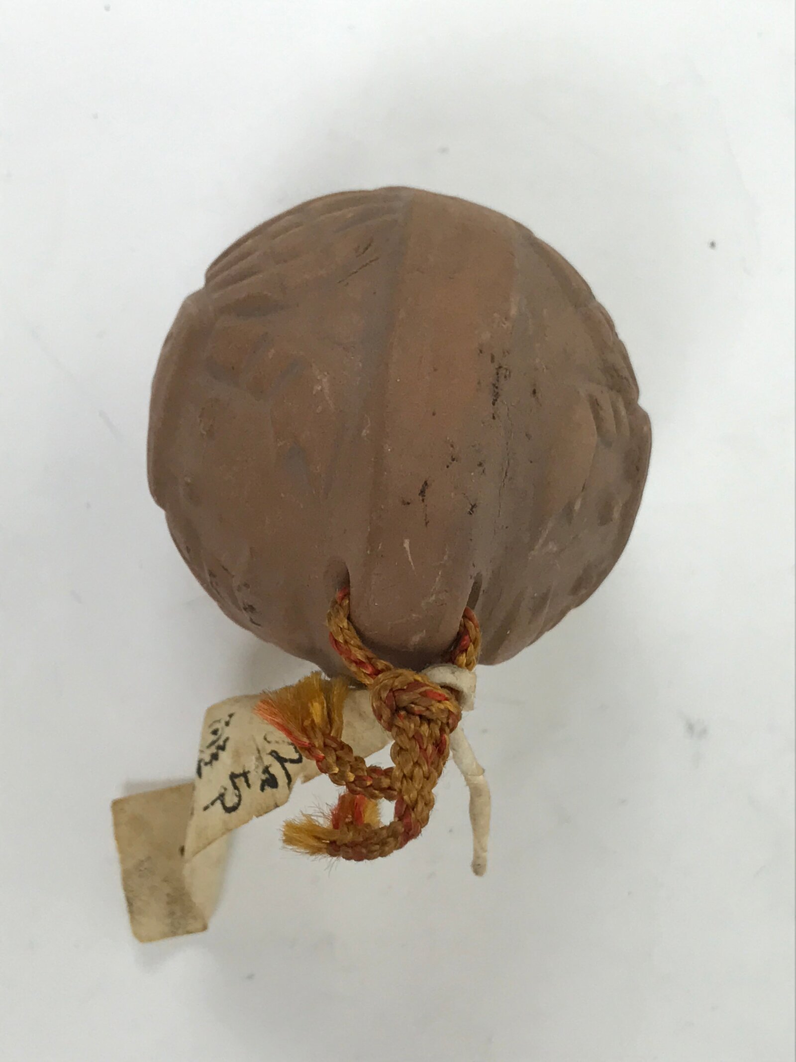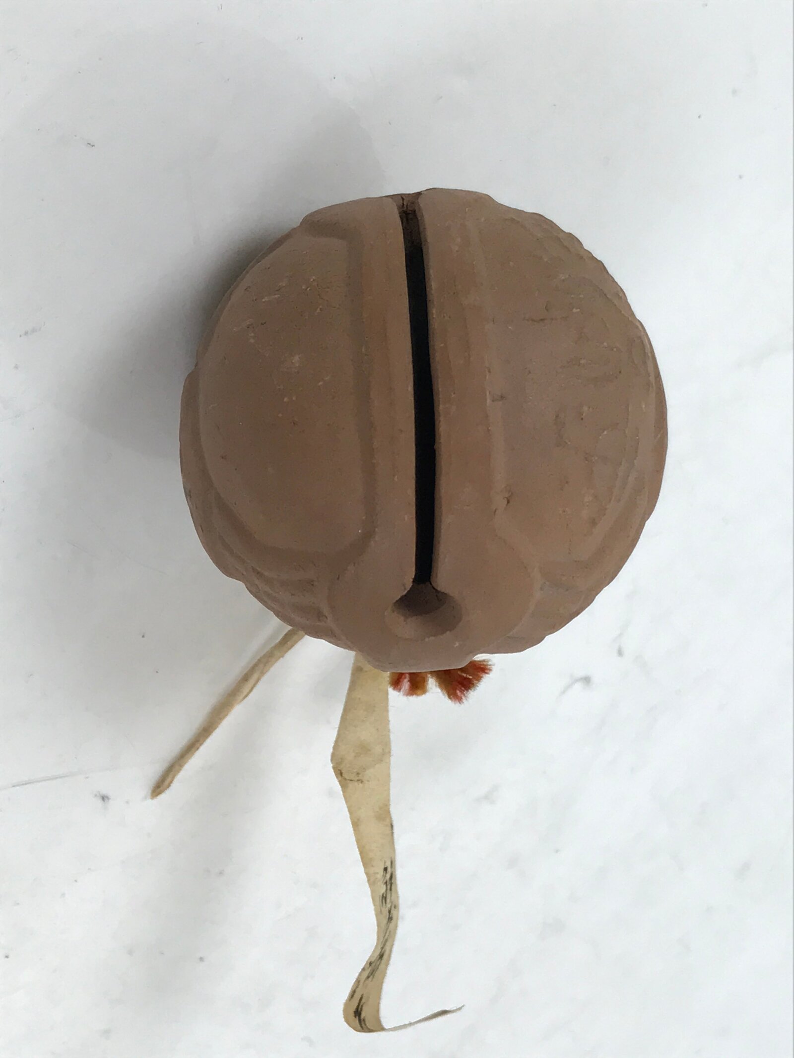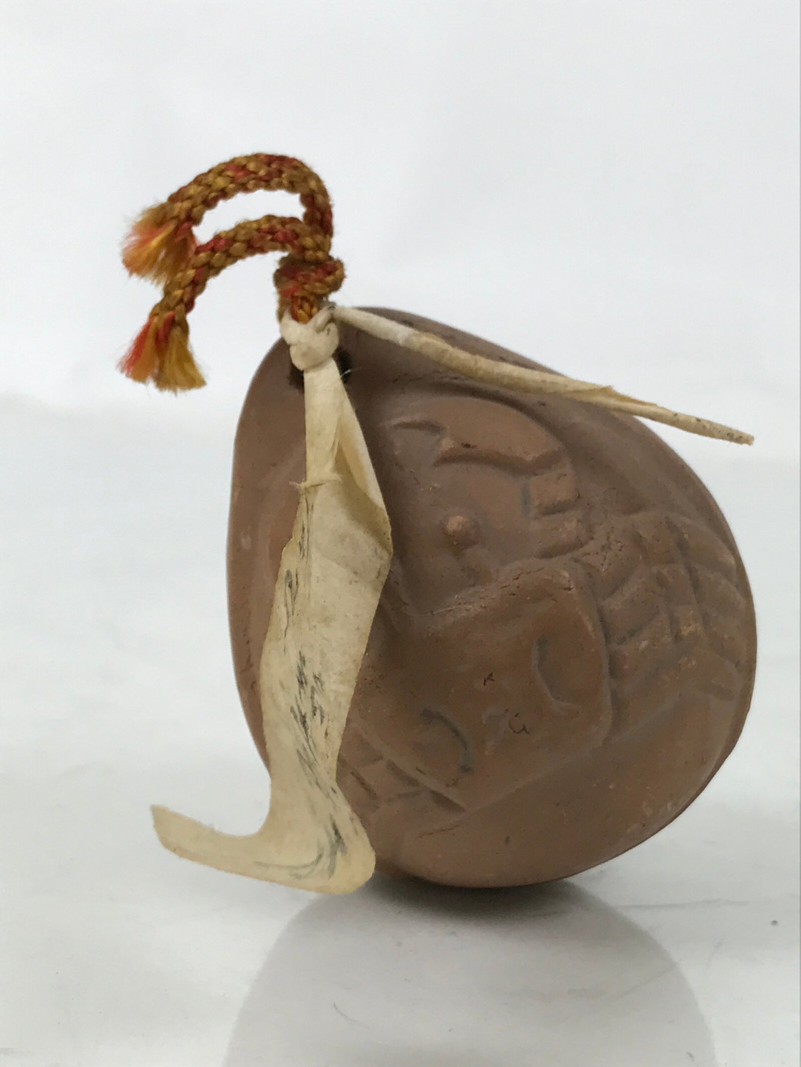 Japanese Clay Bell Dorei Vtg Tsuchi-Suzu Namahage Demon Oni Akita Orange DR592