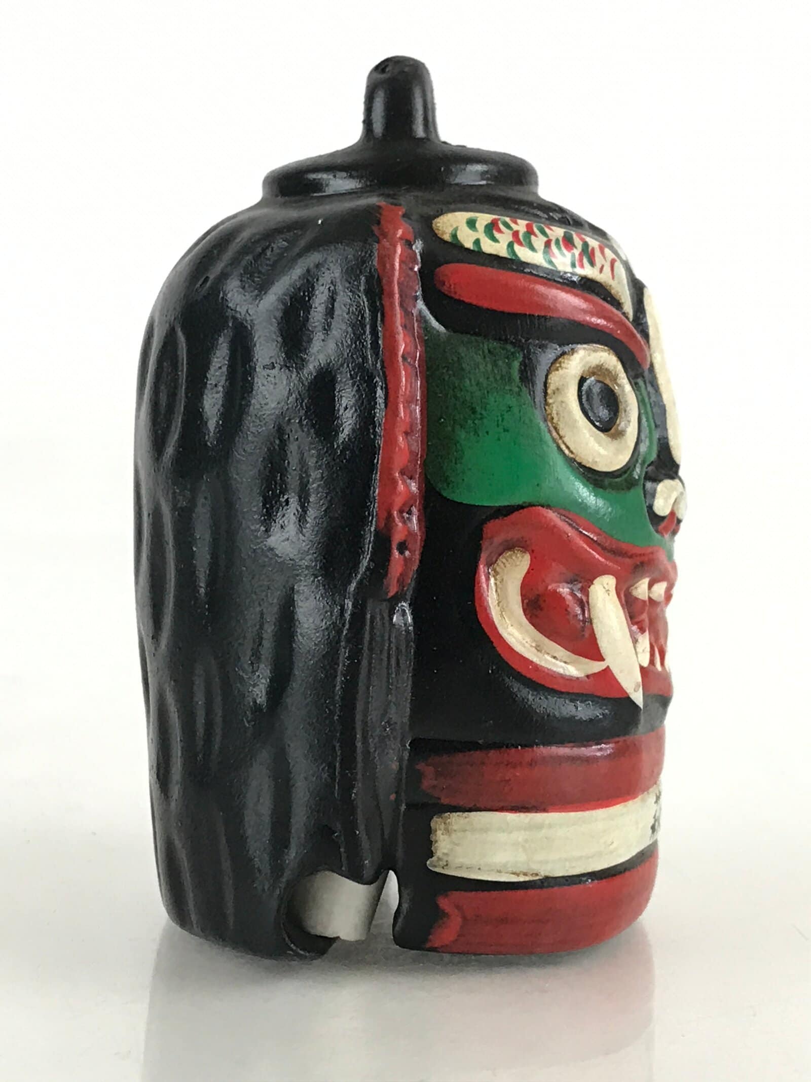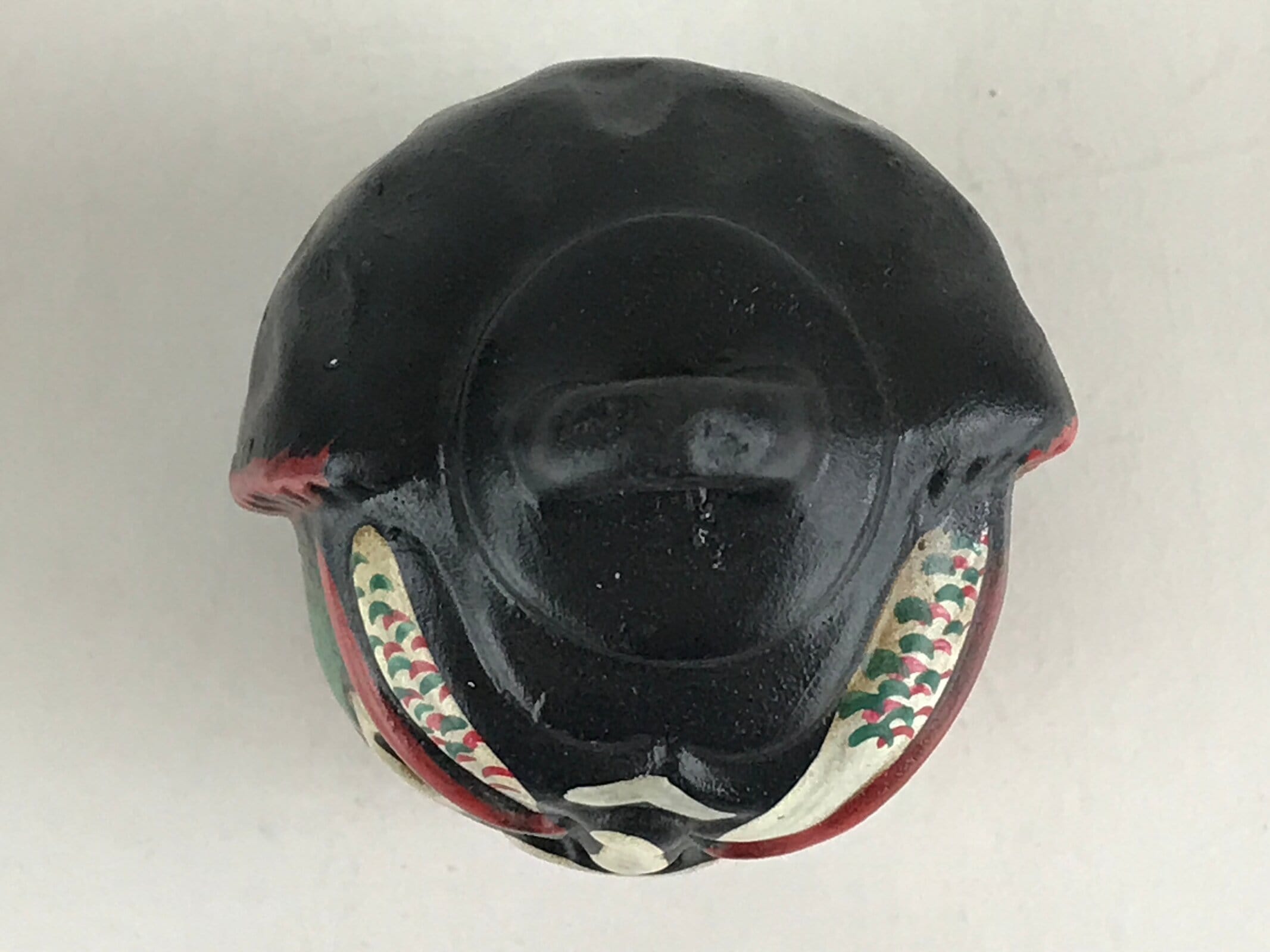 This is a vintage Japanese clay bell, Dorei or Tsuchi-Suzu. This bell is an Oni Yozu character. In the Hagi region, square-shaped kites are called Yozu. Kites with the faces of demons are generally called Oni Yozu. Dorei bells have a long history and have been used in festivals and ceremonies since the Jomon period (about 13000 to 2300 years ago) when they were said to have the power to ward off evil spirits.