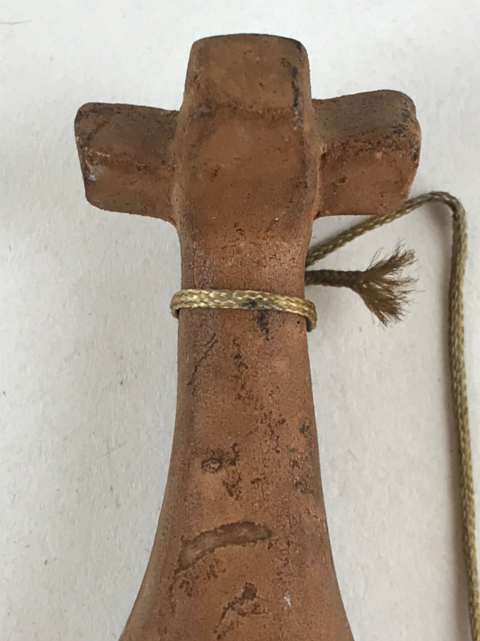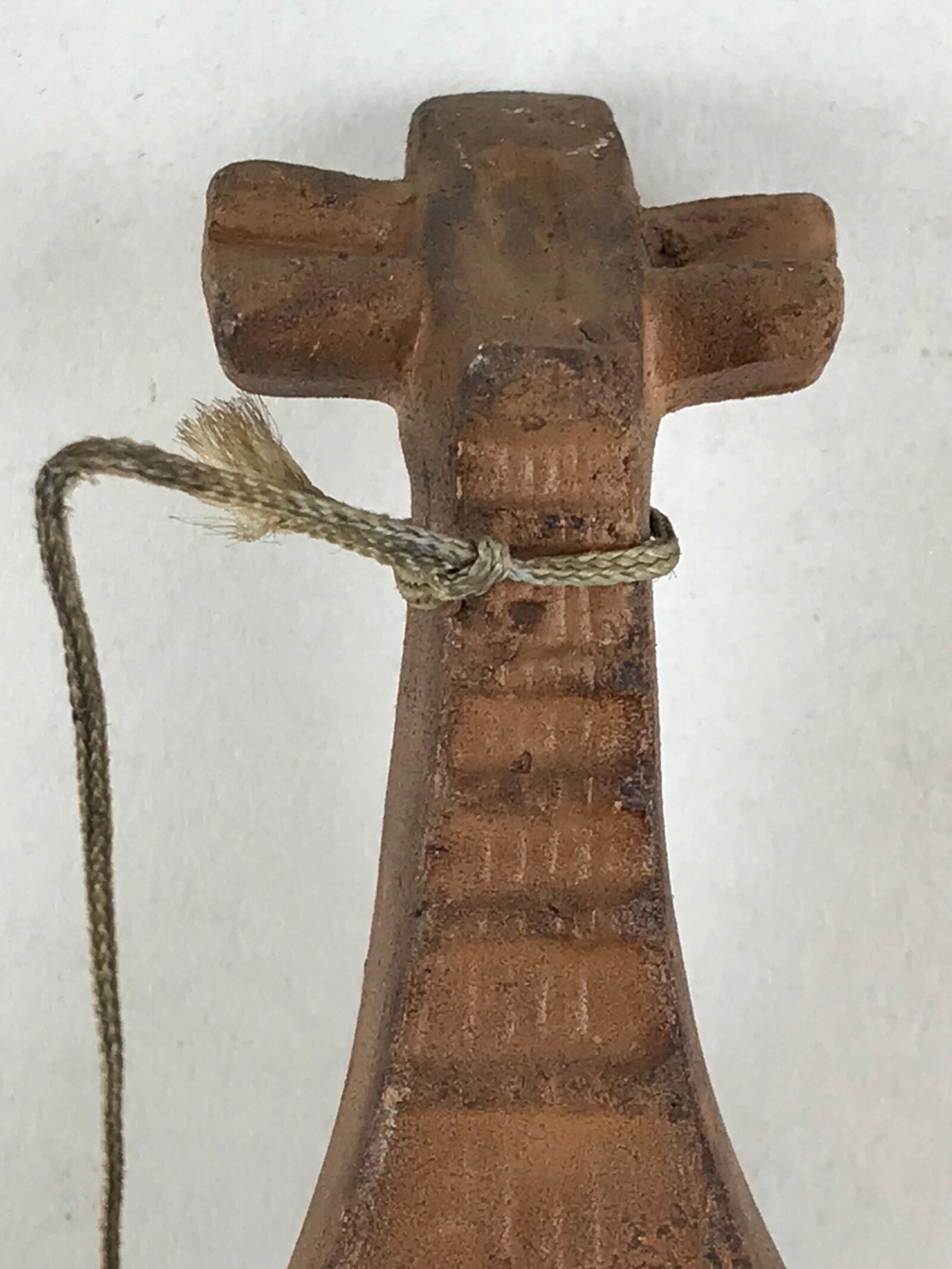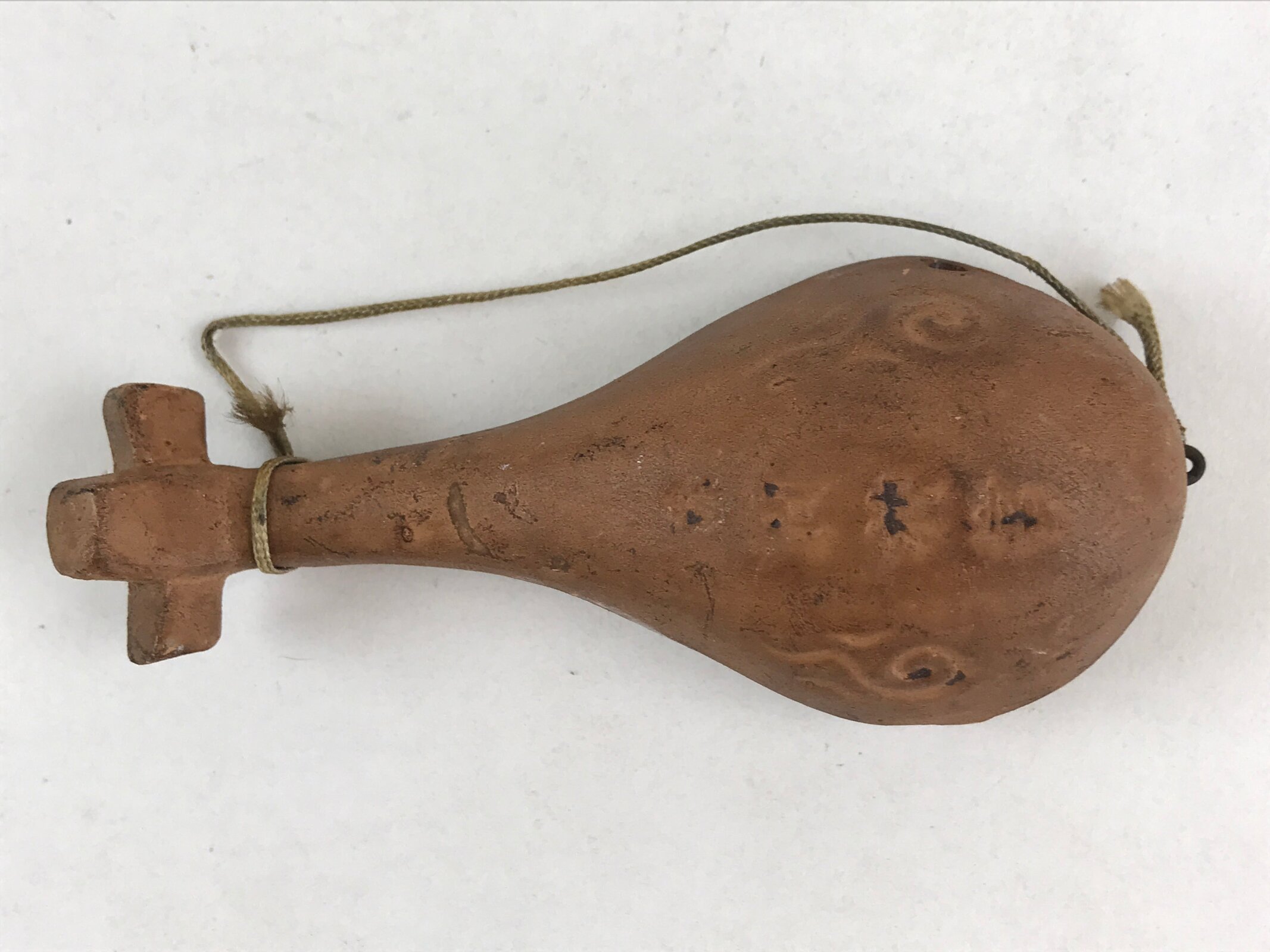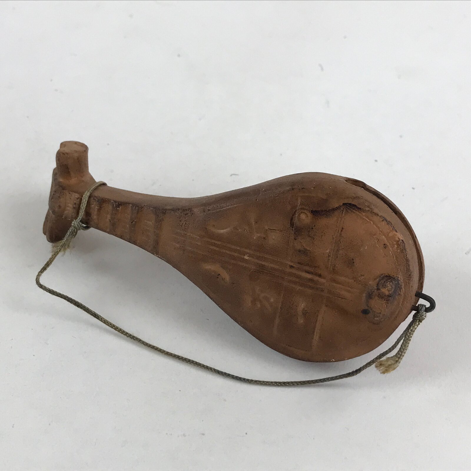 January 21, 2026Japanese Clay Bell Dorei Tsuchi-Suzu Biwa Lute Vtg Kanji Brown Amulet DR481