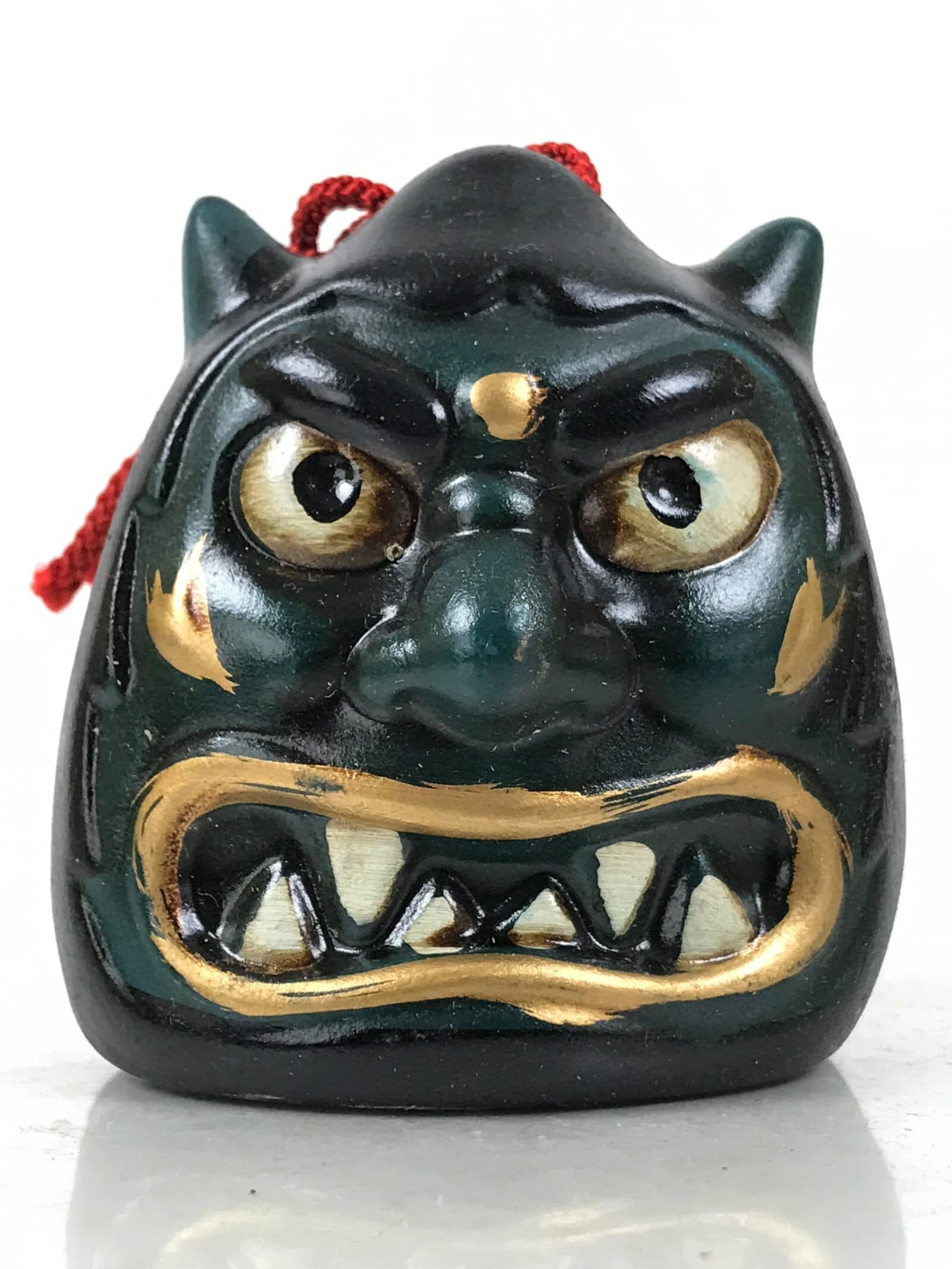 January 24, 2026Japanese Clay Bell Dorei Vtg Tsuchi-Suzu Green Oni Demon Face Black Gold DR593