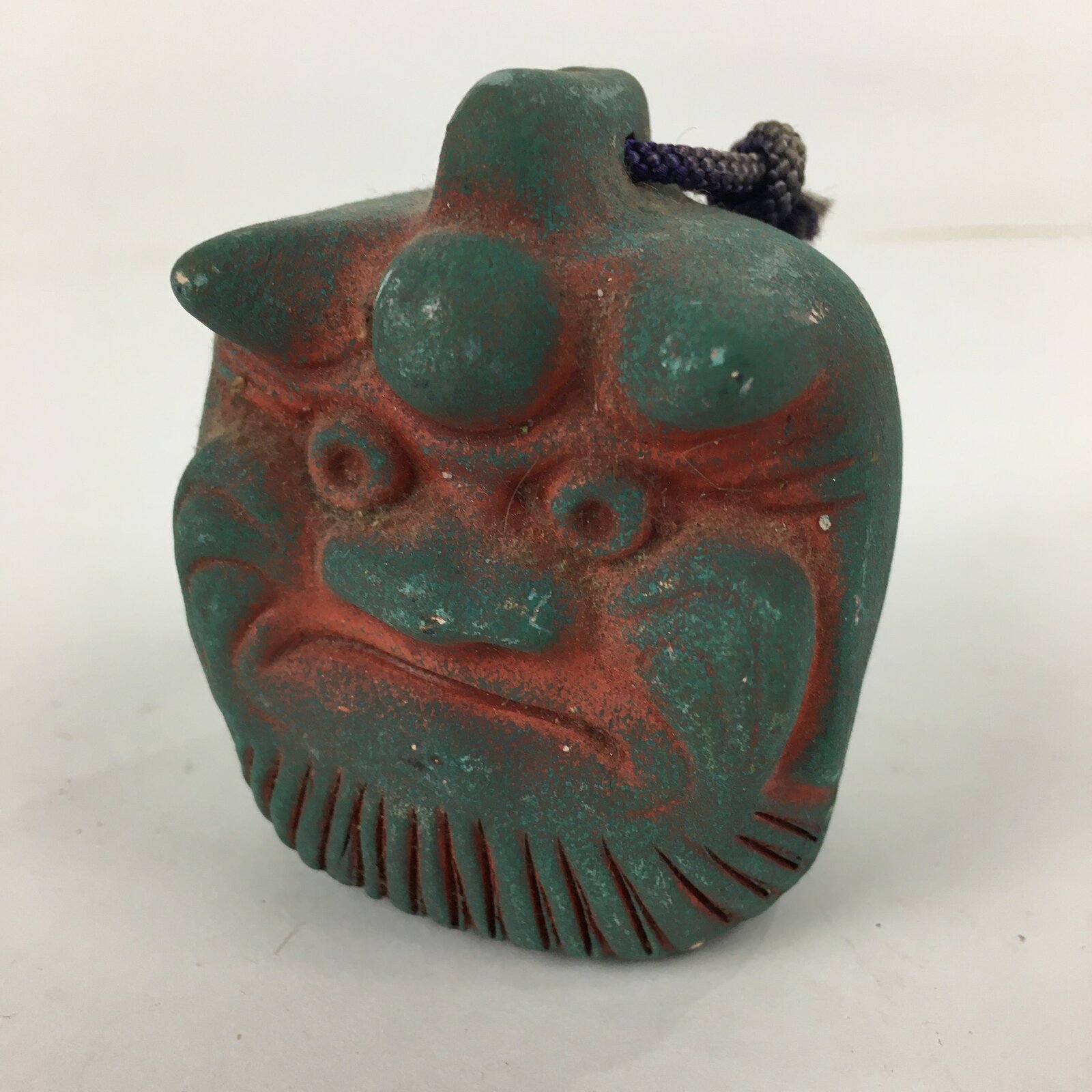 January 18, 2026Japanese Clay Bell Vtg Dorei Ceramic Doll Amulet Demon Temple Red Green DR347