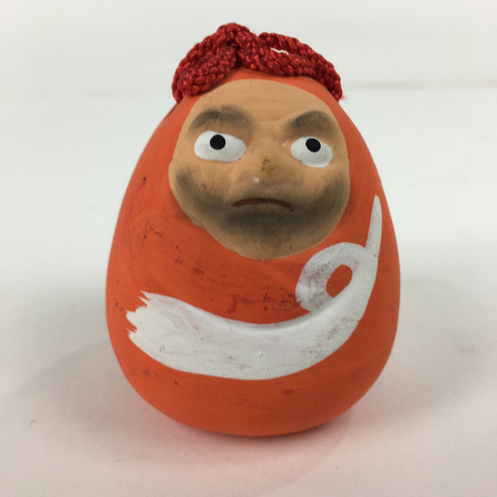 January 18, 2026Japanese Clay Bell Dorei Vtg Ceramic Doll Amulet Red Daruma Kanji DR337
