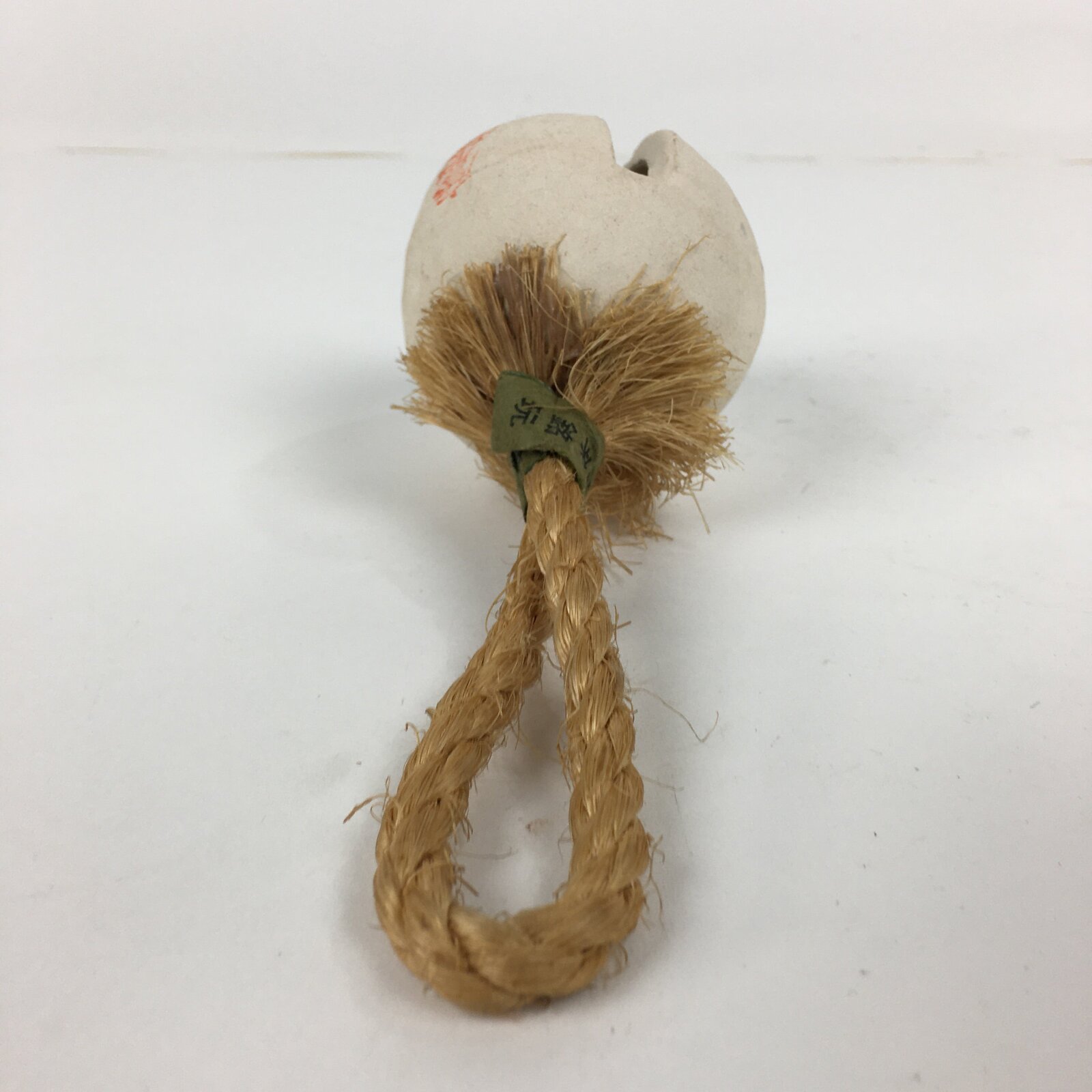 Japanese Clay Bell Vtg Dorei Ceramic Doll Amulet Red Bamboo White DR349