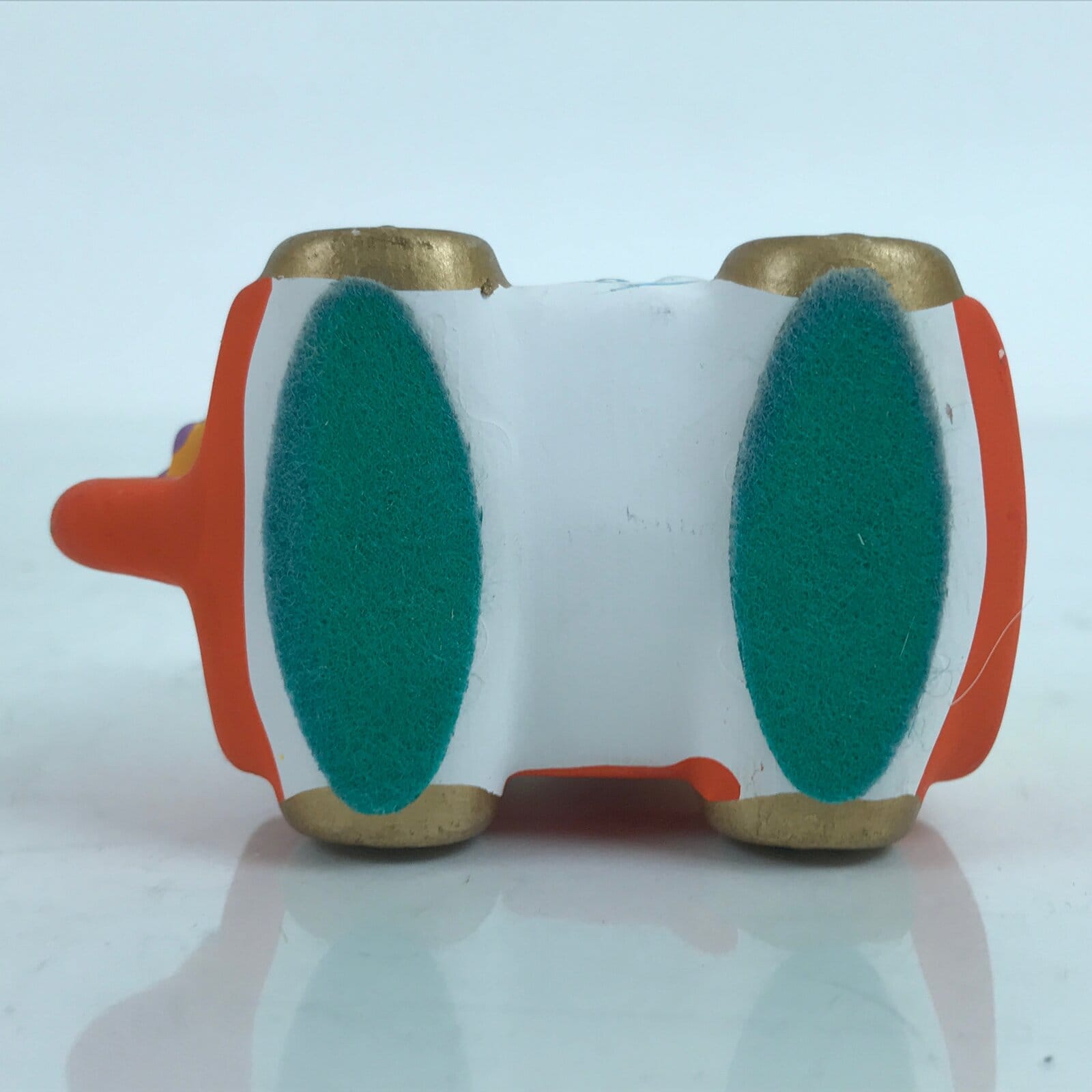 This is a vintage Japanese clay figurine of a cart full of symbols of Daikokuten. Daikokuten is one of the Seven Lucky Gods (shichifukujin). The cart contains rice barrels as well as the famous lucky hammer that makes wishes come true. Daikokuten is the god of happiness and wealth. There are green felt pads on the bottom to protect surfaces from scratching.