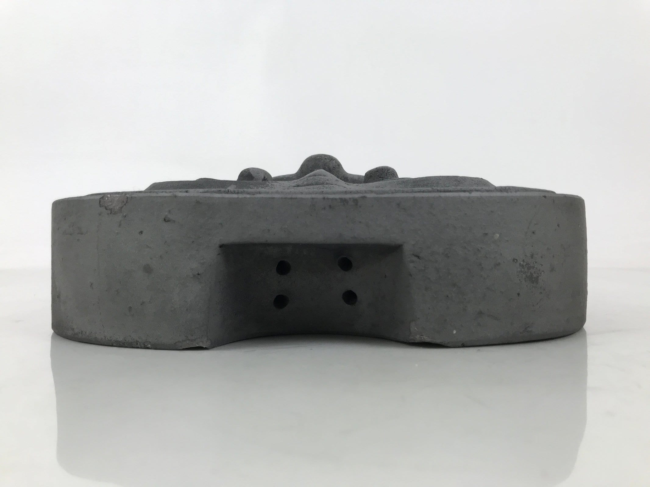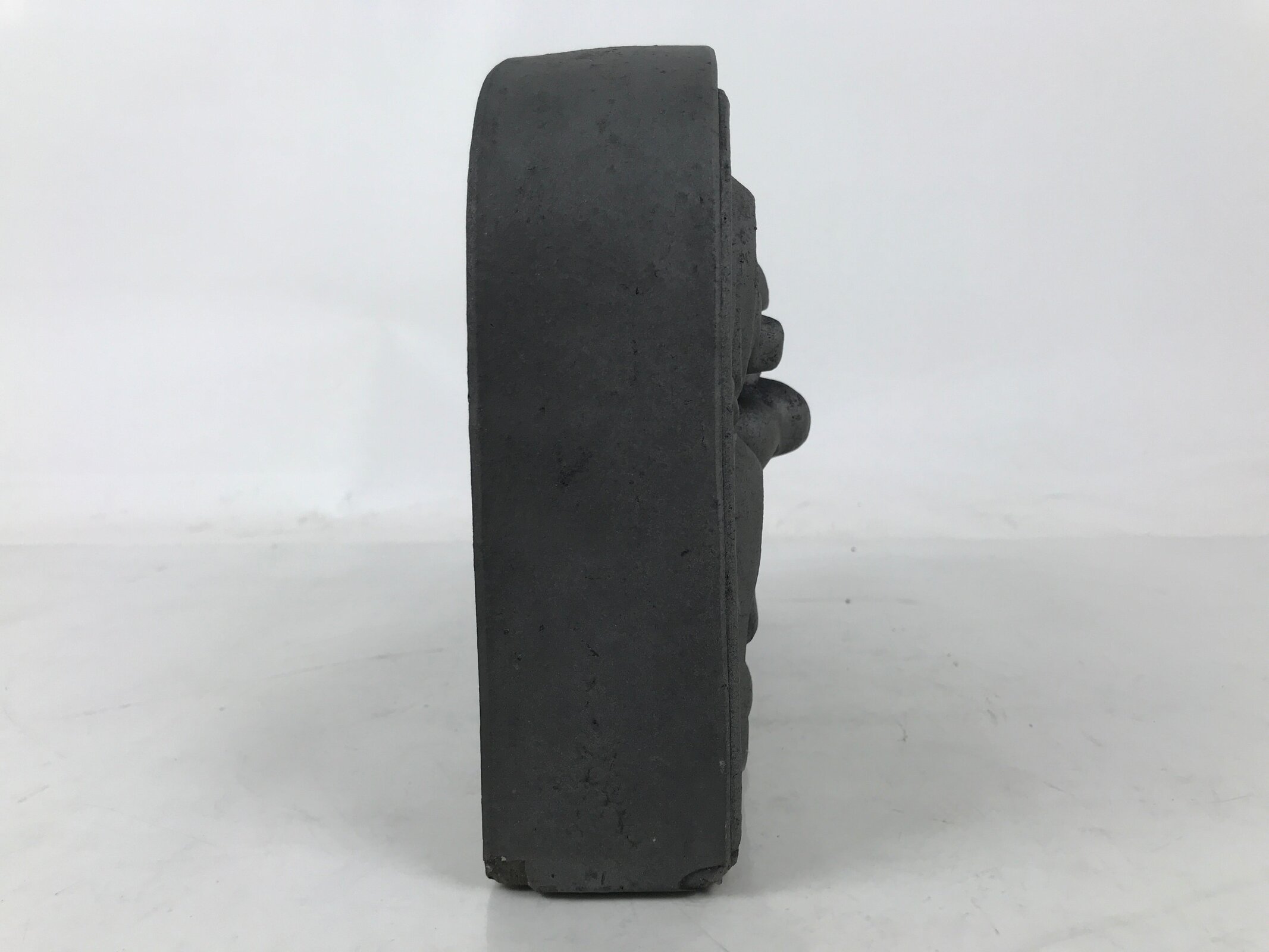 This is a Japanese sculpted clay oni demon roof tile (kawara) decoration often found on temples and sometimes private residences. Also called onigawara, this ridge-end tile acts as an amulet to frighten off evil spirits and ward off misfortune and disaster. It can be installed on a building but is also perfect for general eye-catching decor.