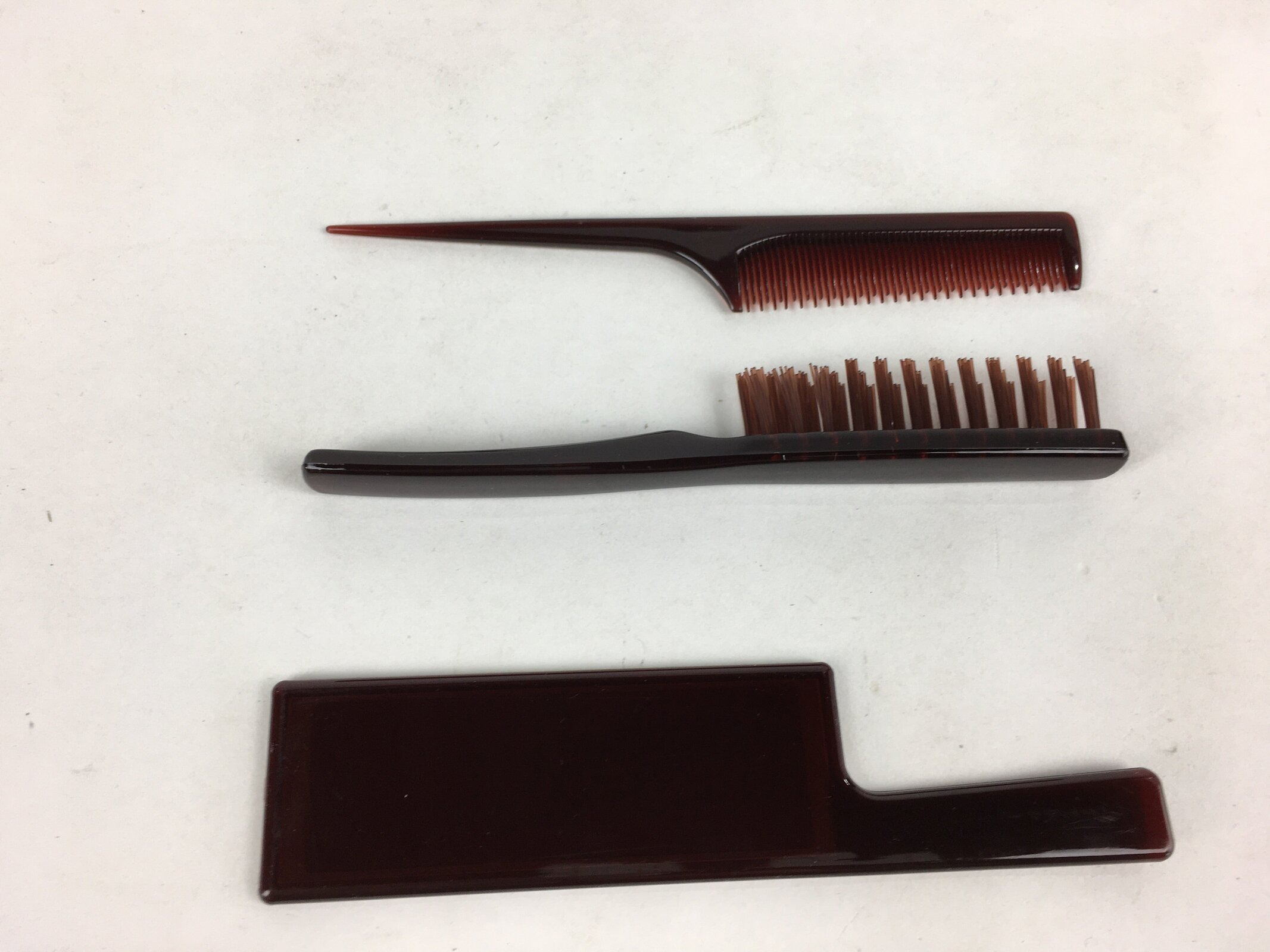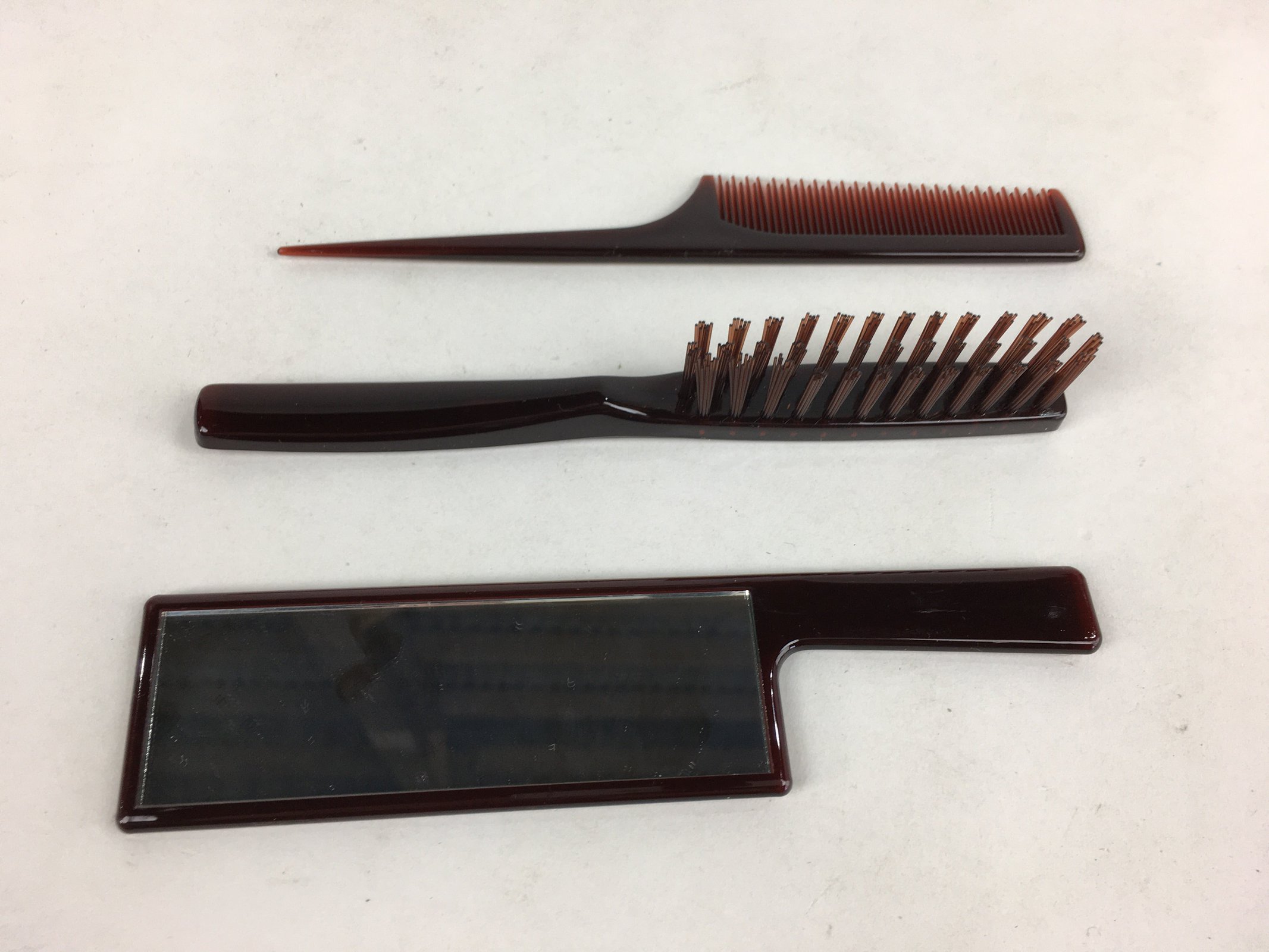 - Approx. bag 18.7 long x 6.5 cm wide, comb 17 cm x 2.2 cm, brush 16.5 cm x 2.5 cm, mirror 16.5 cm x 4 cm