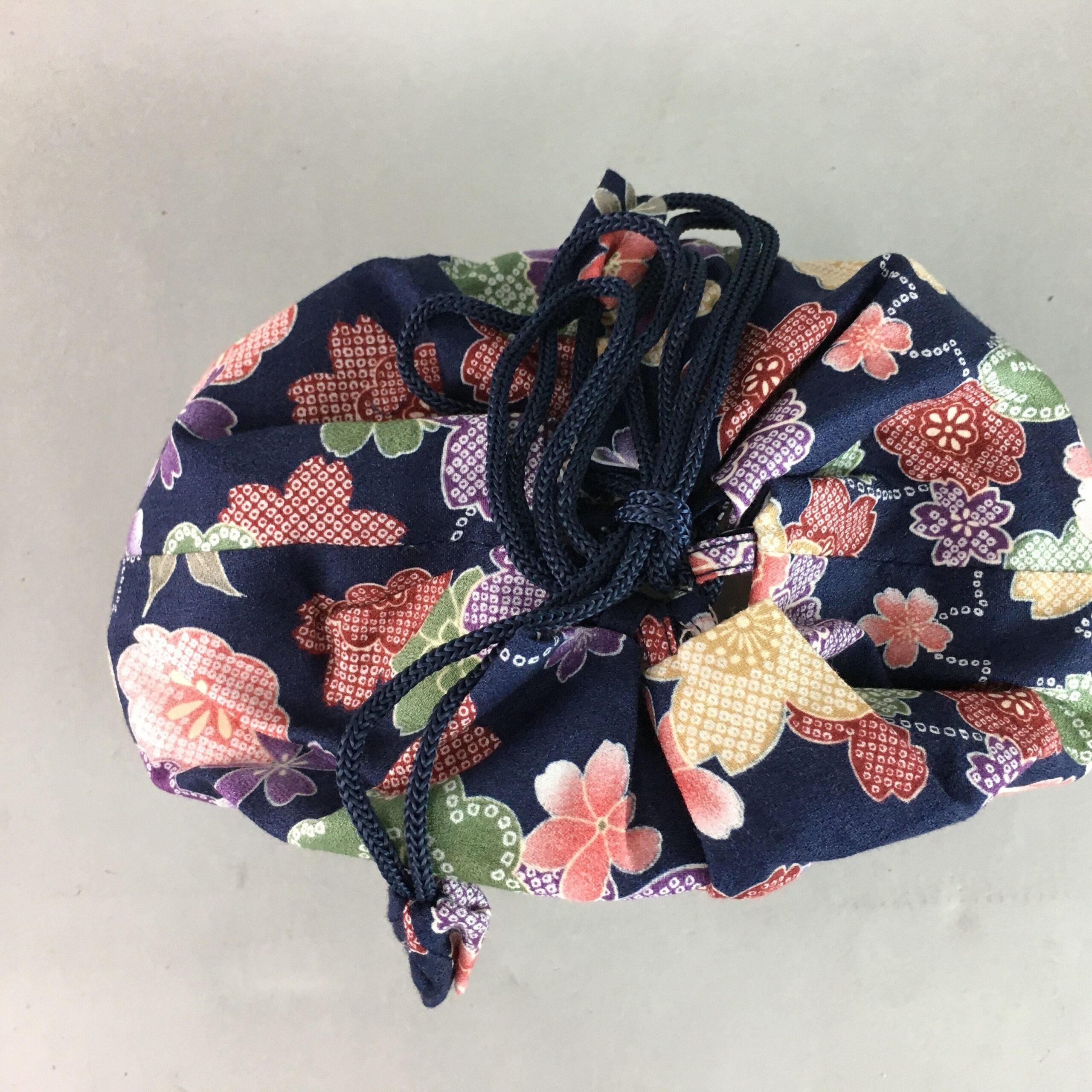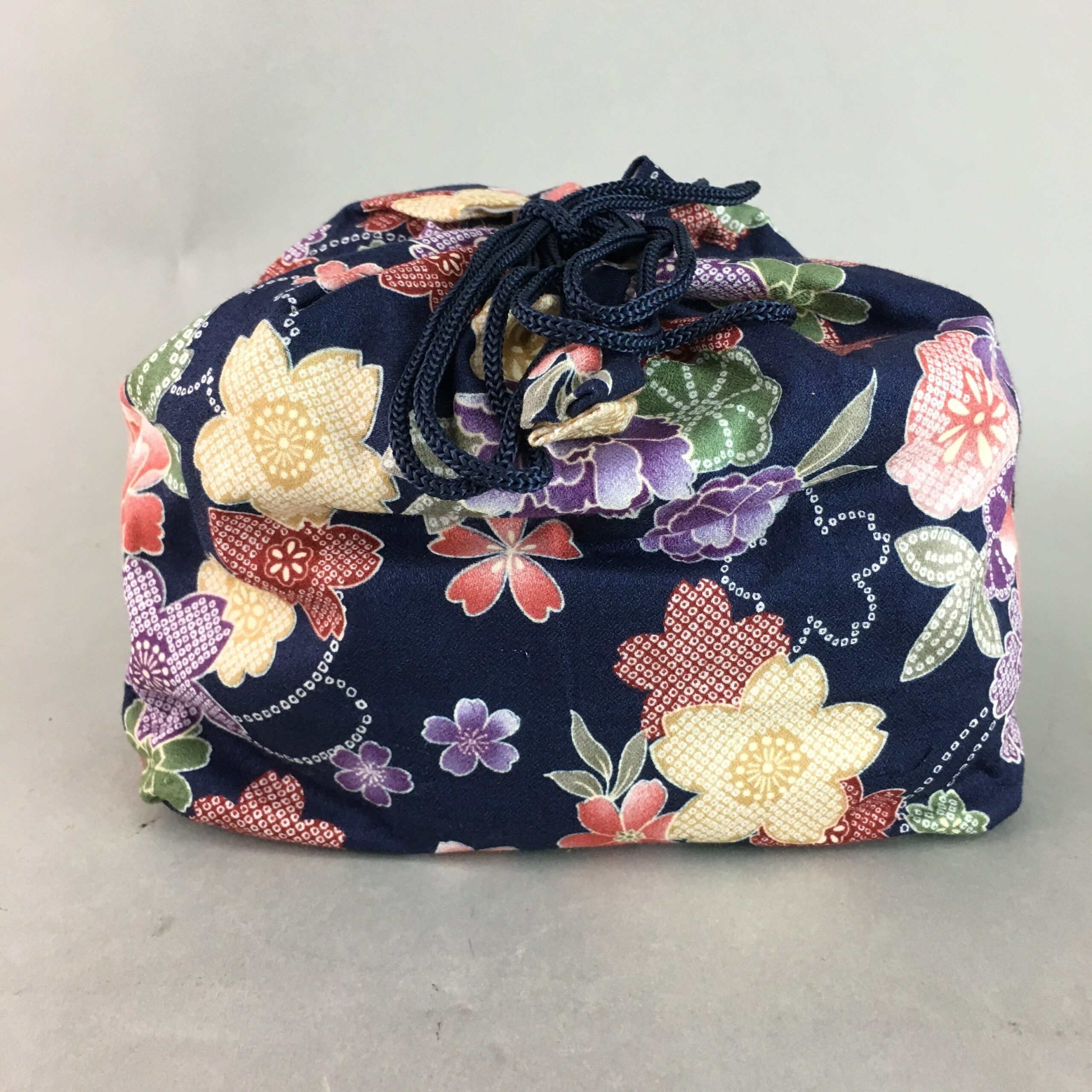 January 17, 2026Japanese Cloth Drawstring Bag Vtg Fabric Kimono Pouch Floral Dark Blue KB10