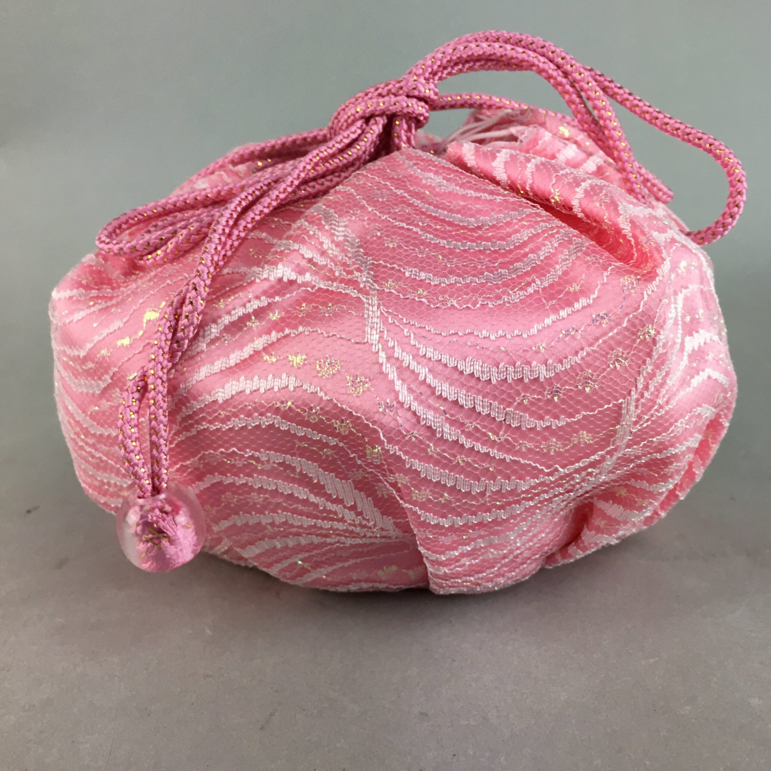 January 17, 2026Japanese Cloth Drawstring Bag Vtg Fabric Kimono Pouch Pink Satin Lace KB16
