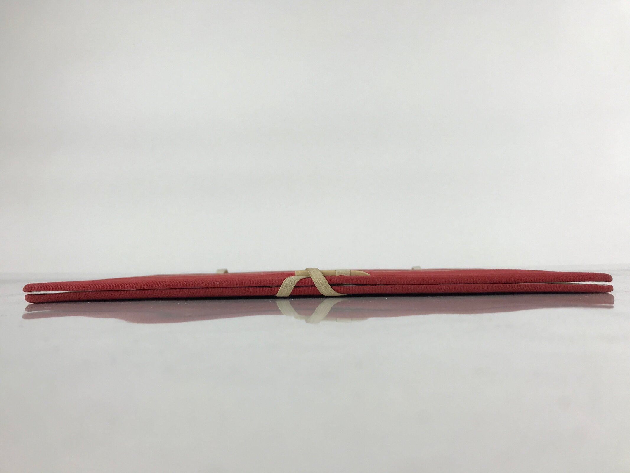This is a vintage Japanese folder made for holding sheet music books, or fuhonbasami. Made with thick paper and covered in a soft, red and white striped cotton fabric, this file folder is easily opened via a plastic toggle on the side. It can fit a large amount of small books and papers inside due to the elastic binding. This type of folder is typically used for koto music, but can be repurposed for other B5-sized music, arts, writing, etc.