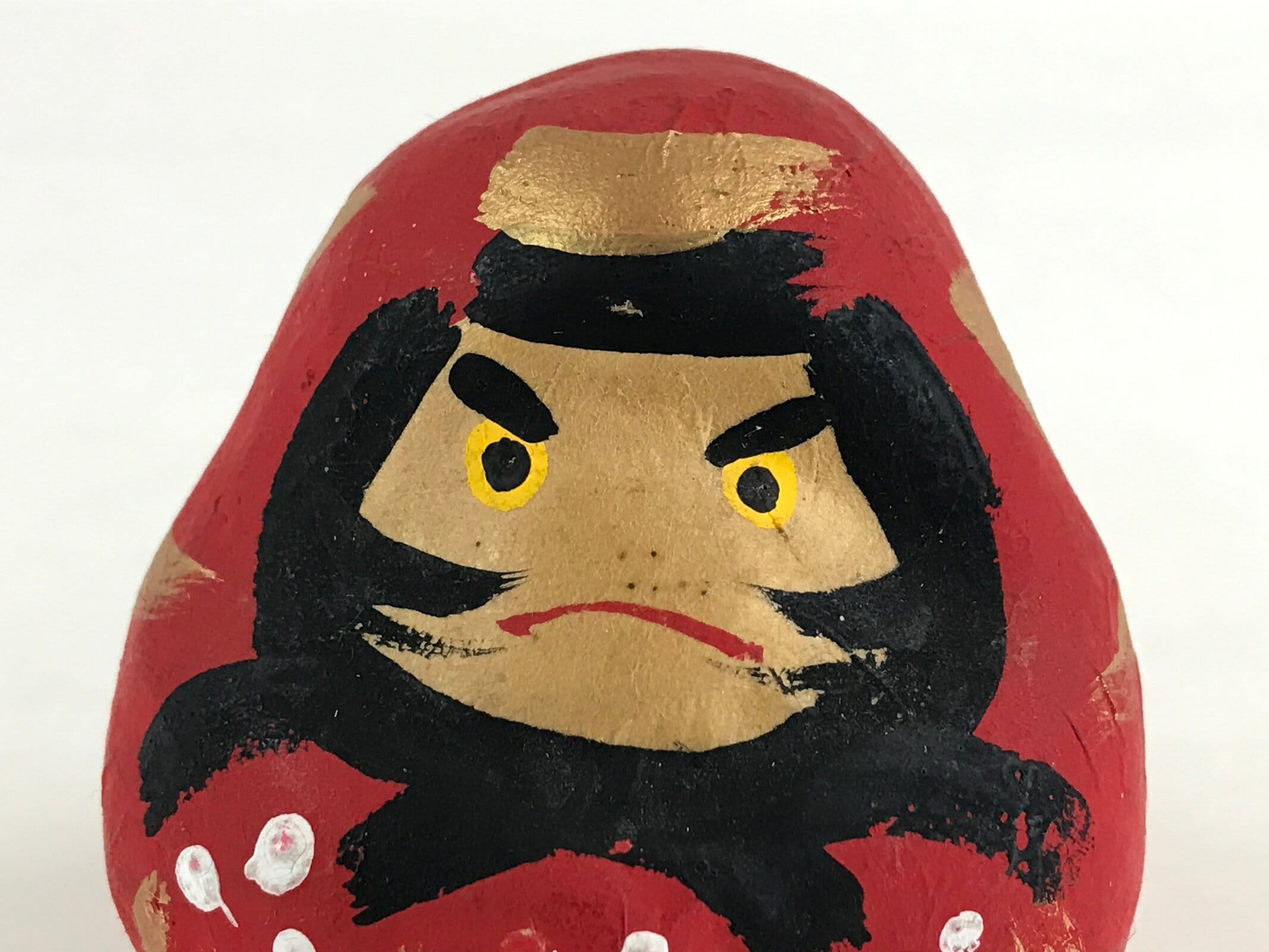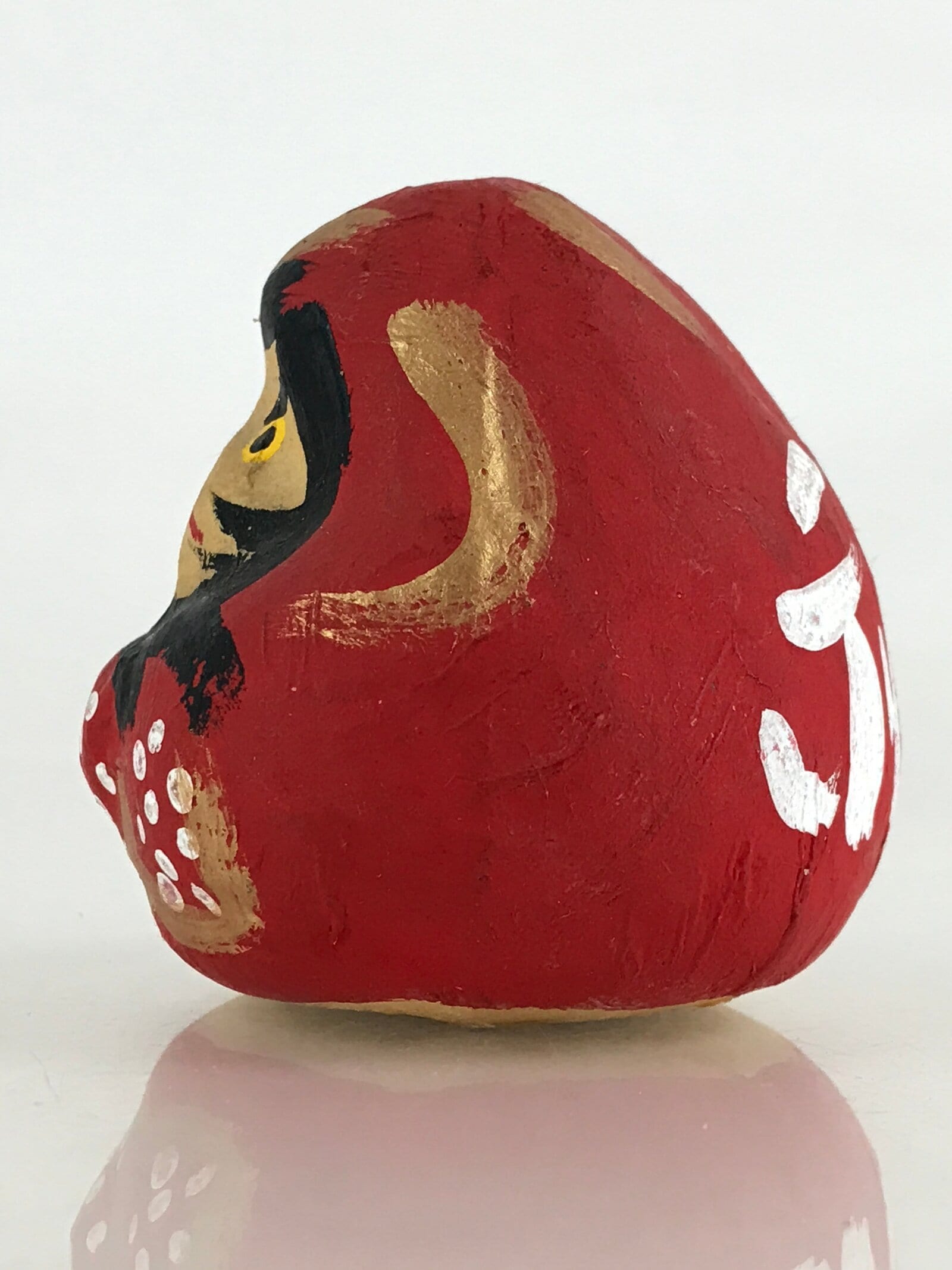This is a vintage Japanese Daruma doll, figurine. Japanese traditional doll modeled after Bodhidharma, the founder of the Zen tradition of Buddhism. Daruma dolls are placed in a visible place at home or at work to wish for a specific wish or goal.