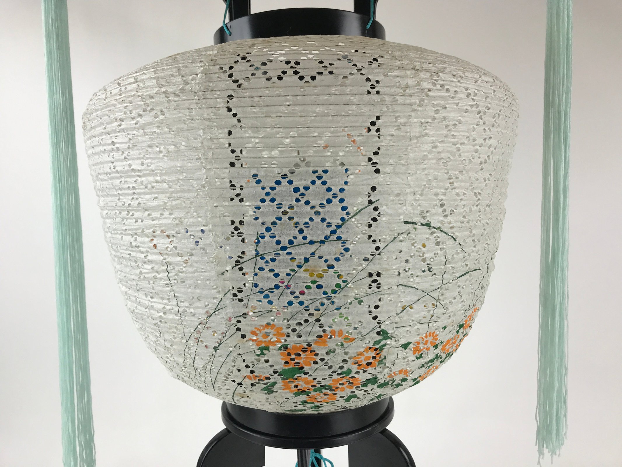 Japanese Hanging Paper Lantern Vtg Chochin Festival Washi Wood Frame Floral LT58