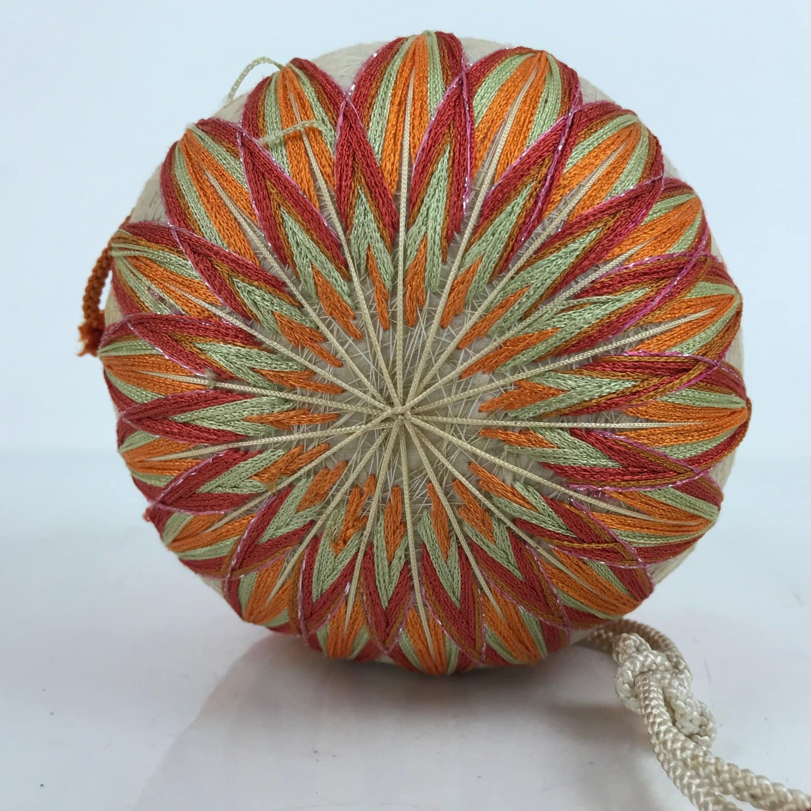January 23, 2026Japanese Embroidered Thread Fabric Hanging Mari Ball Decoration Vtg Temari ID591