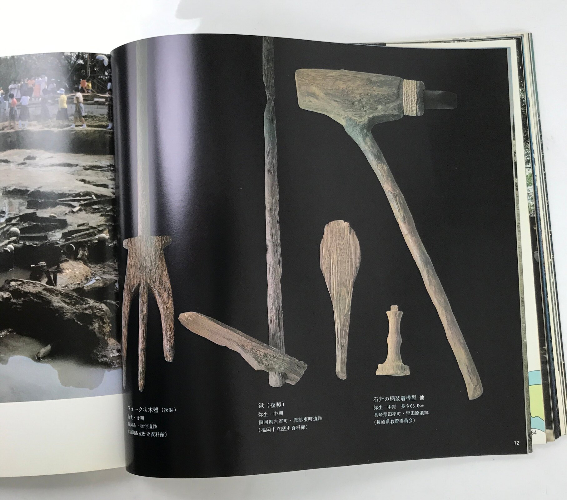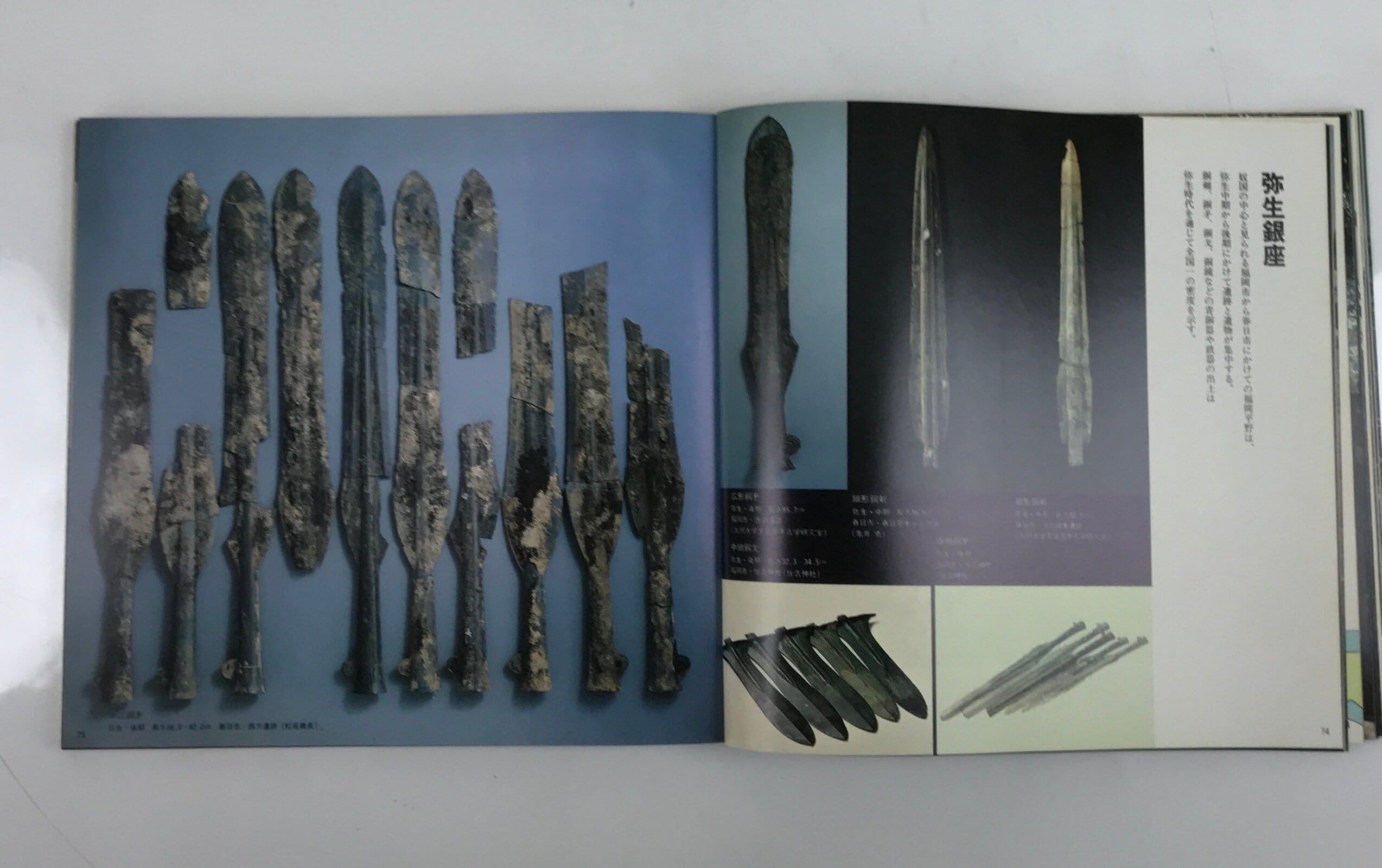 This vintage Japanese exhibition catalogue is about Yamatai, also called Yamatai-koku, an ancient kingdom in Japan during the Yayoi period (Neolithic). The book also mentions the mysterious Queen Himiko, queen of Yamatai. This book features mostly full-color pictures of current locations, old sites, old pottery and old weapons from the Yayoi period as presented at an exhibition at the Kyushu Historical Museum.