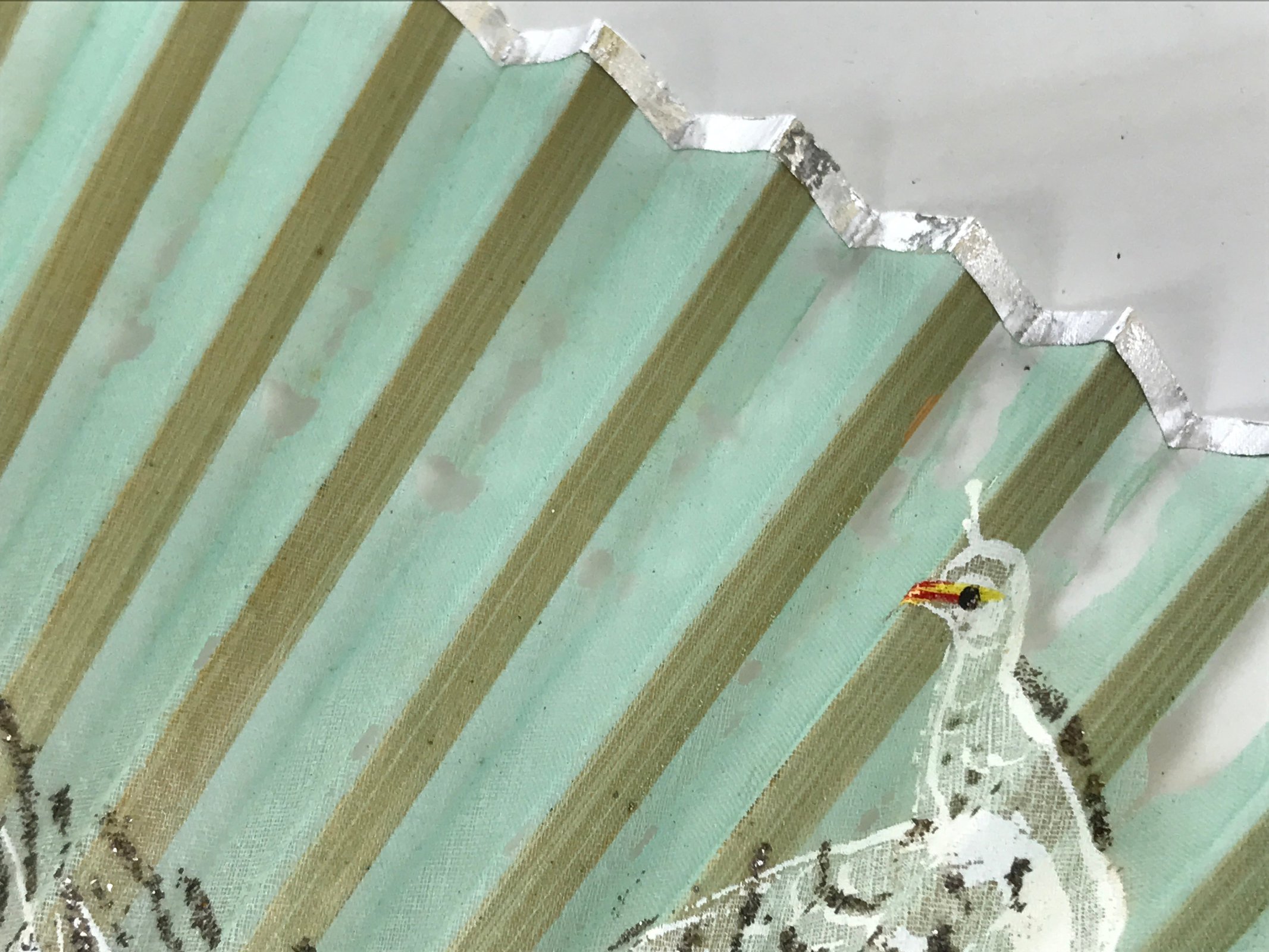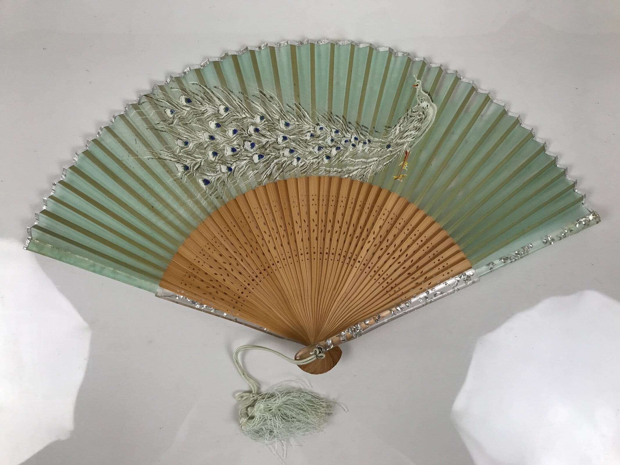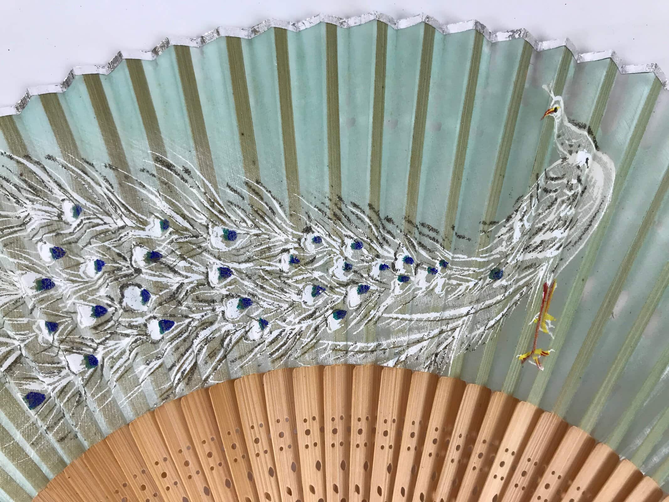 January 24, 2026Japanese Fabric Folding Fan Sensu Bamboo Frame White Peacock Bird Green 4D918