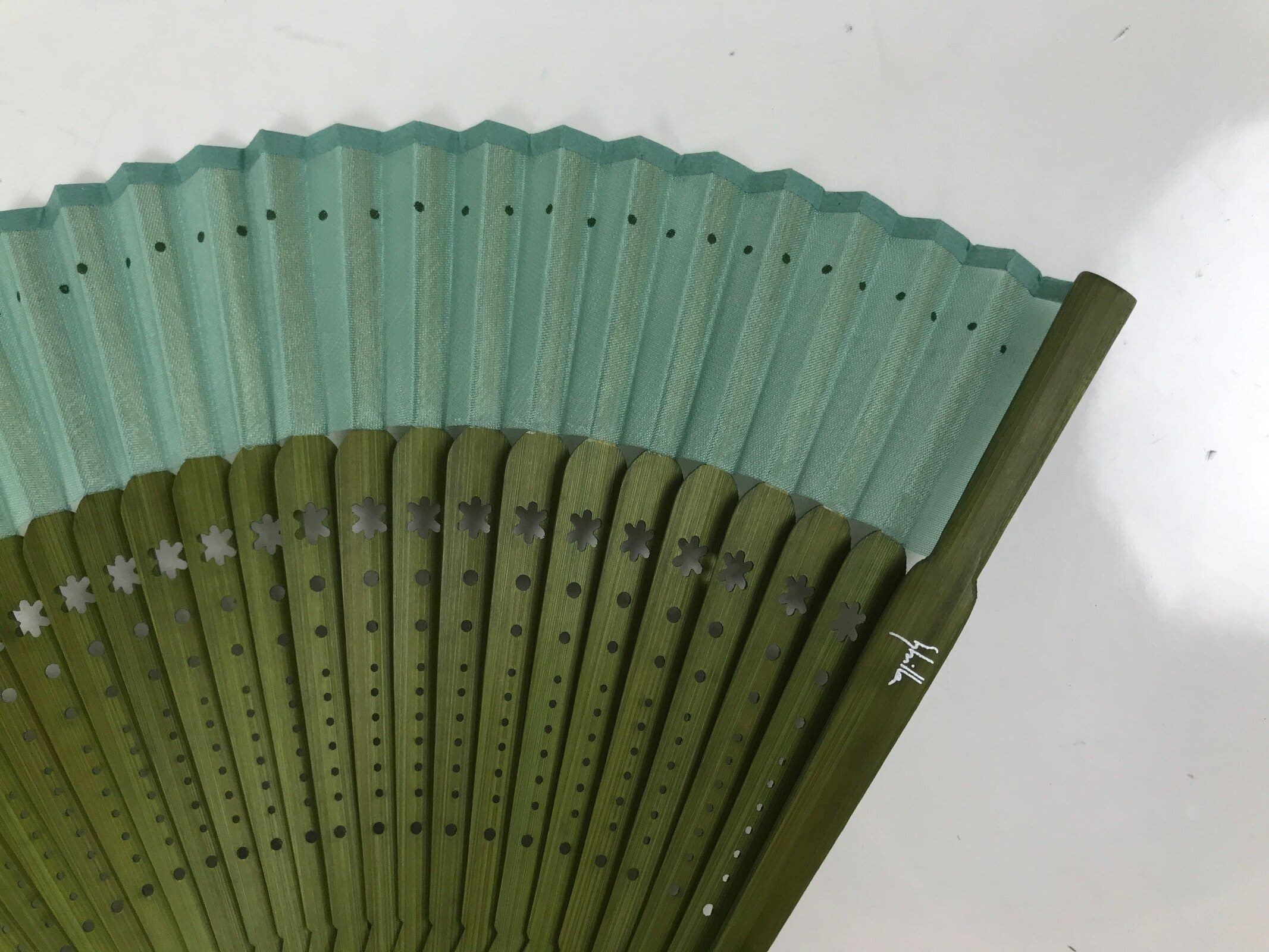 January 24, 2026Japanese Fabric Folding Fan Sensu Bamboo Frame Vtg Green Blue w/Case 4D882