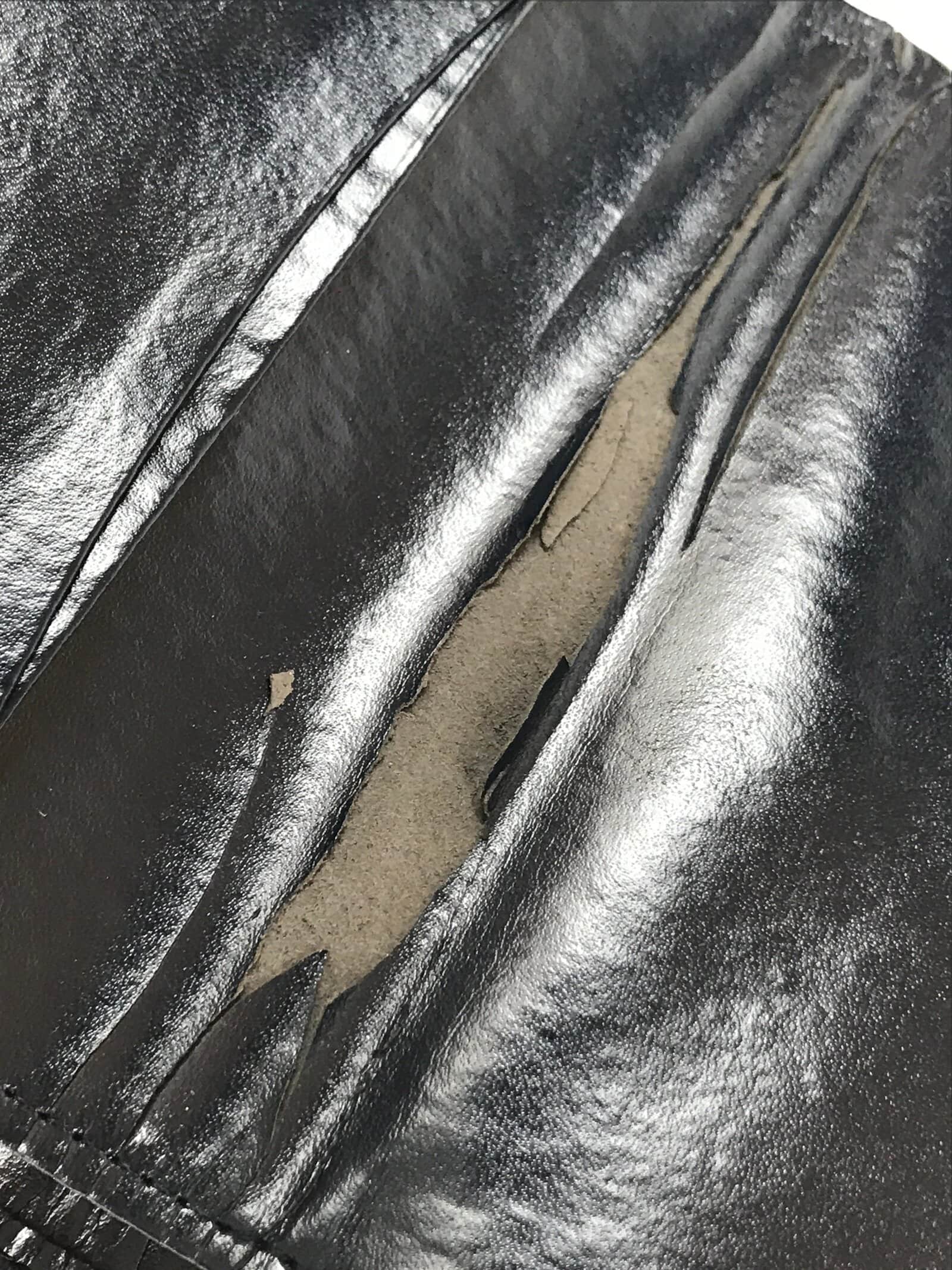 - Good condition considering age. Pleather is flaking on edges, on front clasp, and inside folded front piece. Wear and tear due to age. Please see the photos.