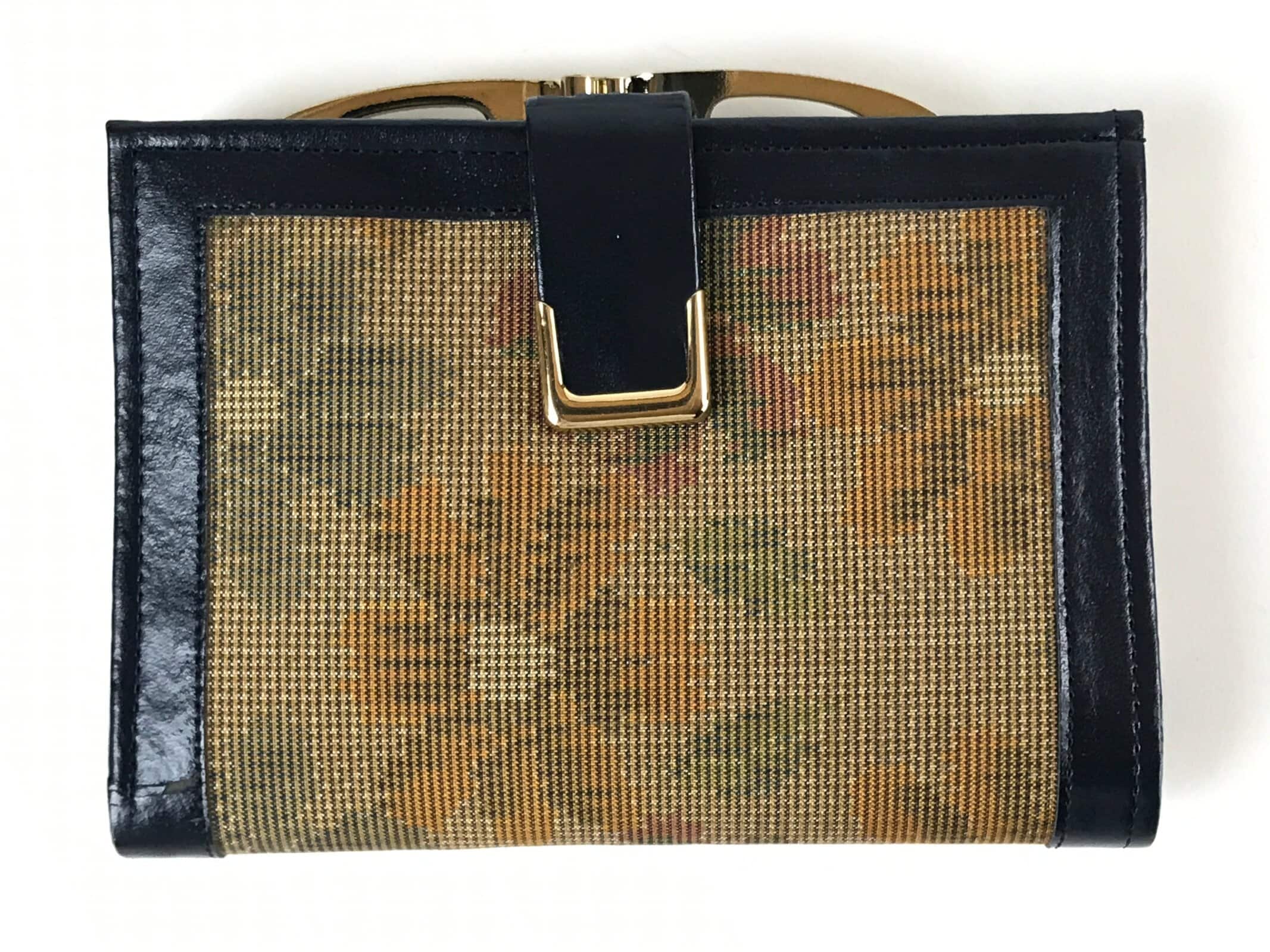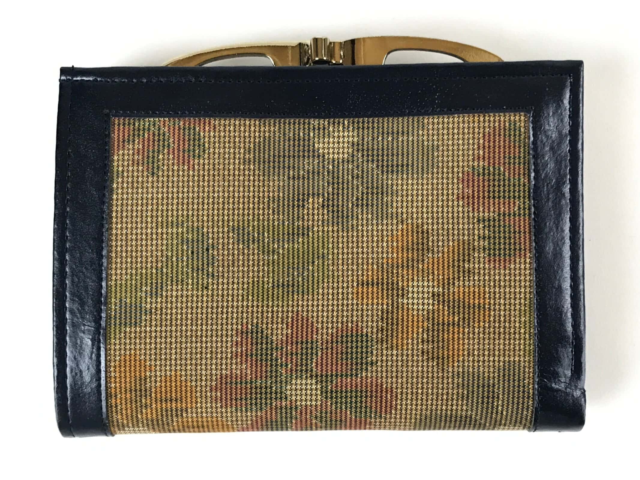 Japanese Woven Silk Fabric Wallet Vtg Gamaguchi Clasp Pleather Floral Brown KB85
